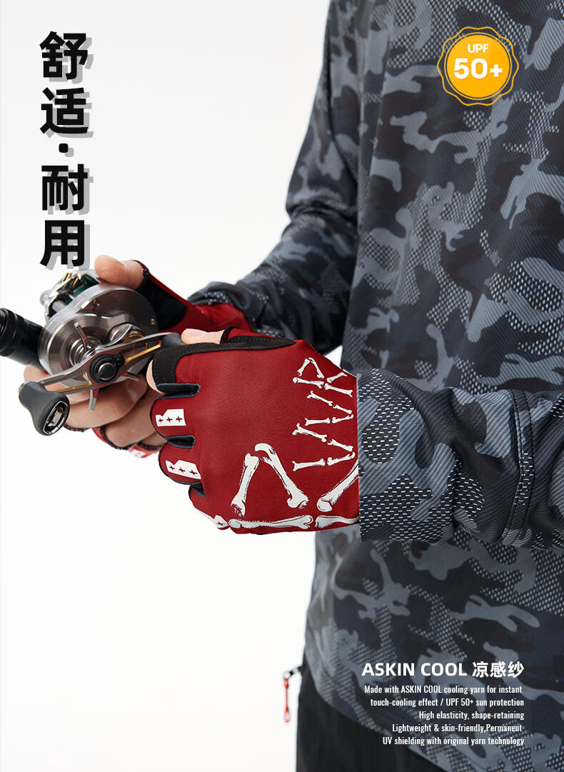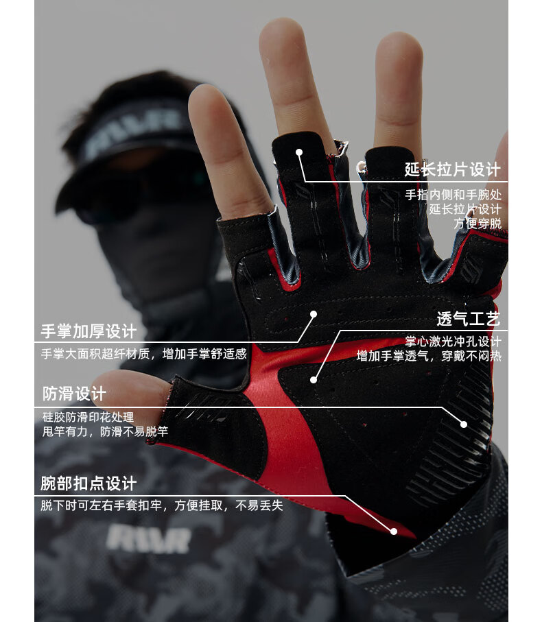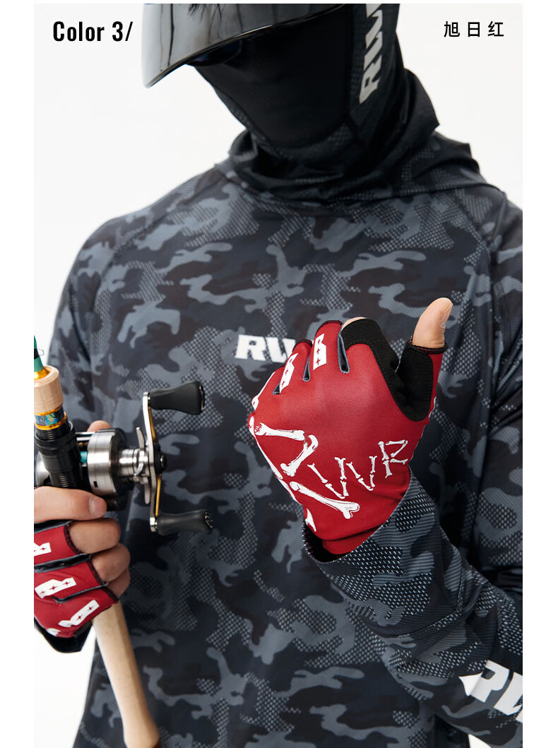 RVVRRVVR New Ice Silk Gloves Outdoor Sunscreen Breathable Luya Fishing Gloves Men's Exposed Five-Finger Anti-wear and Anti-thorn Fish Catch Rising Sun Red M