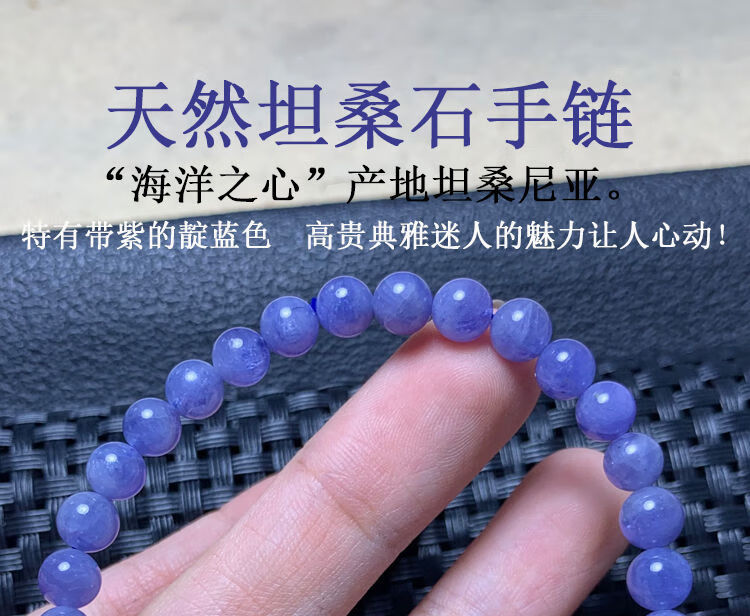 Iosn Natural Tanzania Ocean Heart Tanzanite Single Circle Bracelet Gemstone Jewelry Purple Sapphire Crystal Bracelet Gift for Women (S160) About 5.4-5.9mm