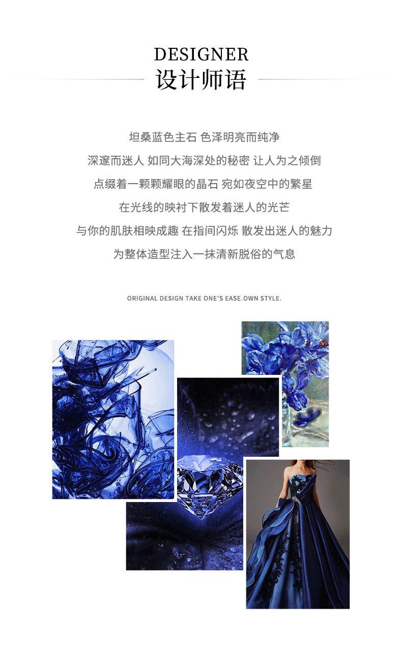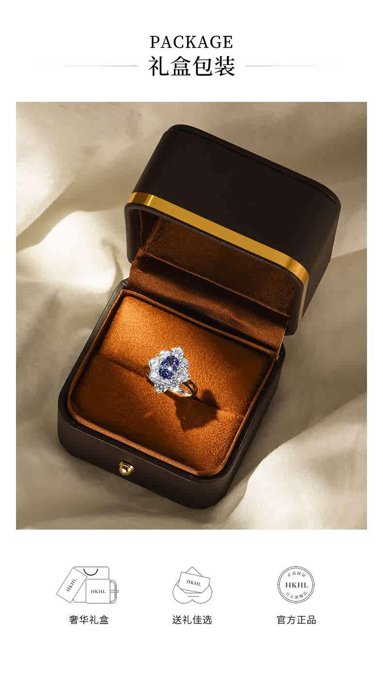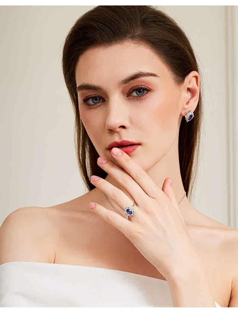 IosnHKHL Star Language sterling silver tanzanite sapphire ring for women light luxury temperament high-end celebrity ring accessories gift Star Language ring ring number 10-11# brand gift box Star Language series