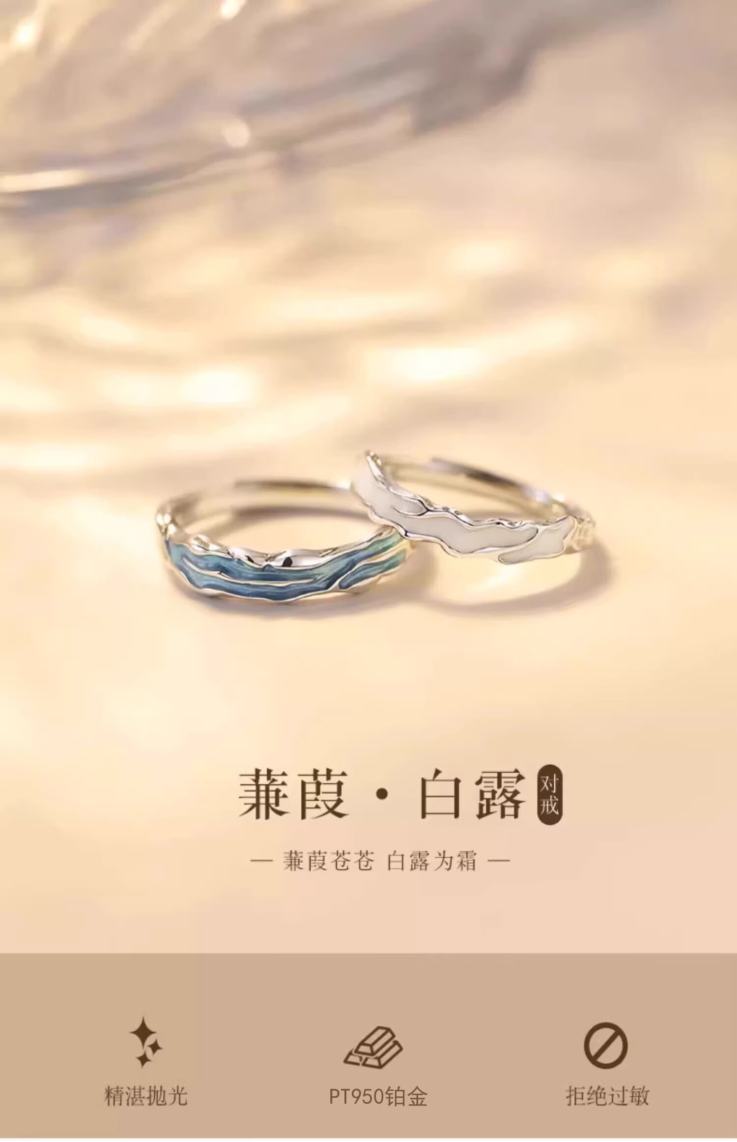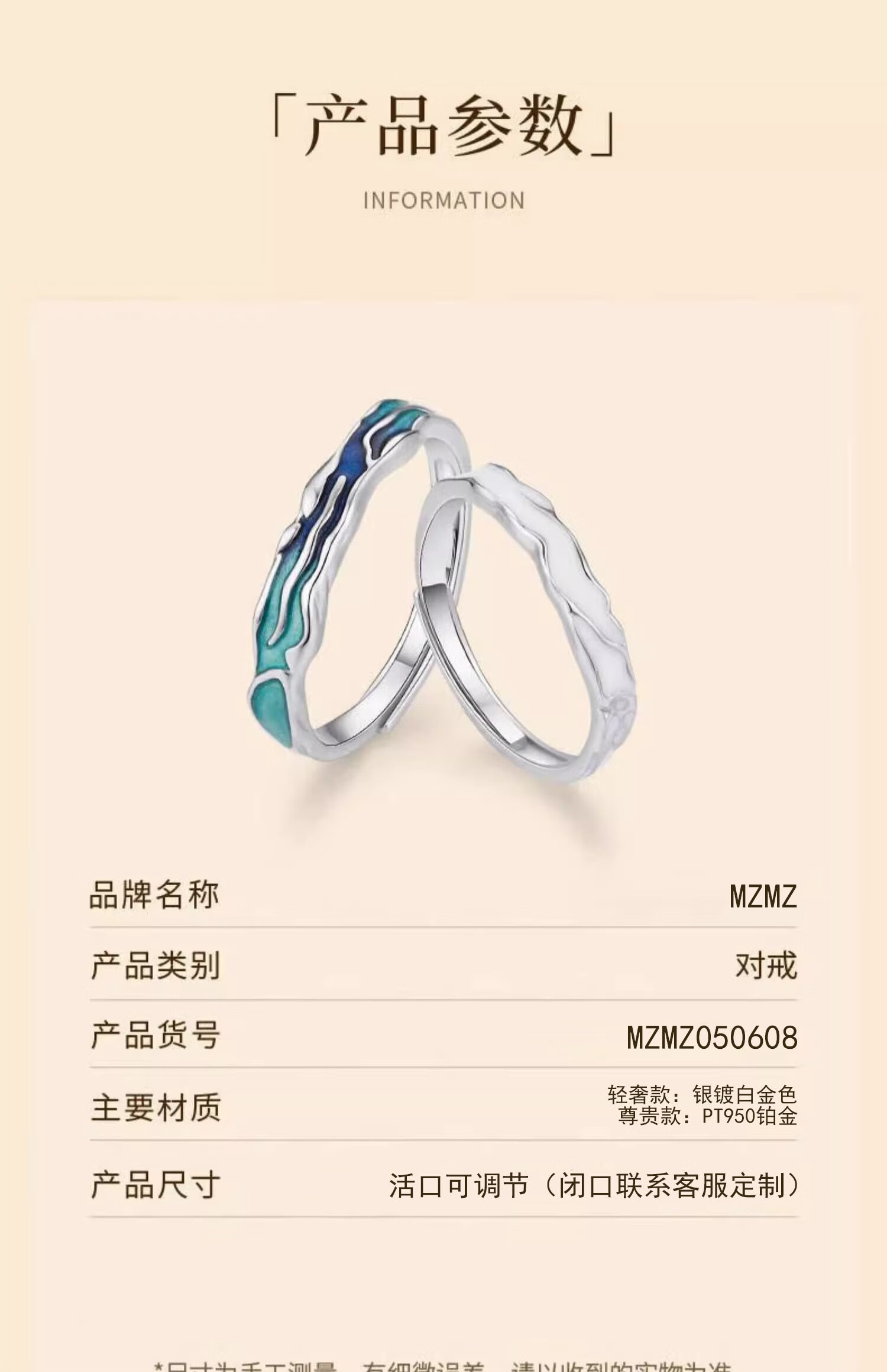 MZMZ Jianjia Bailu platinum couple ring PT950 platinum matching ring wedding Valentine's Day birthday gift for girlfriend and wife light luxury model-live ring local warehouse/next day delivery