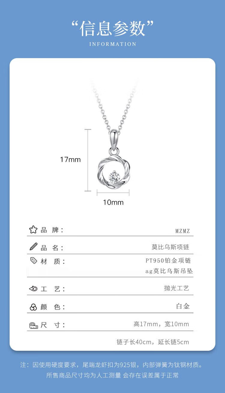 MZMZ Mobius platinum necklace for women pt950 platinum fashion pendant Valentine's Day birthday gift for girlfriend and wife PT950 platinum necklace + Mobius pendant