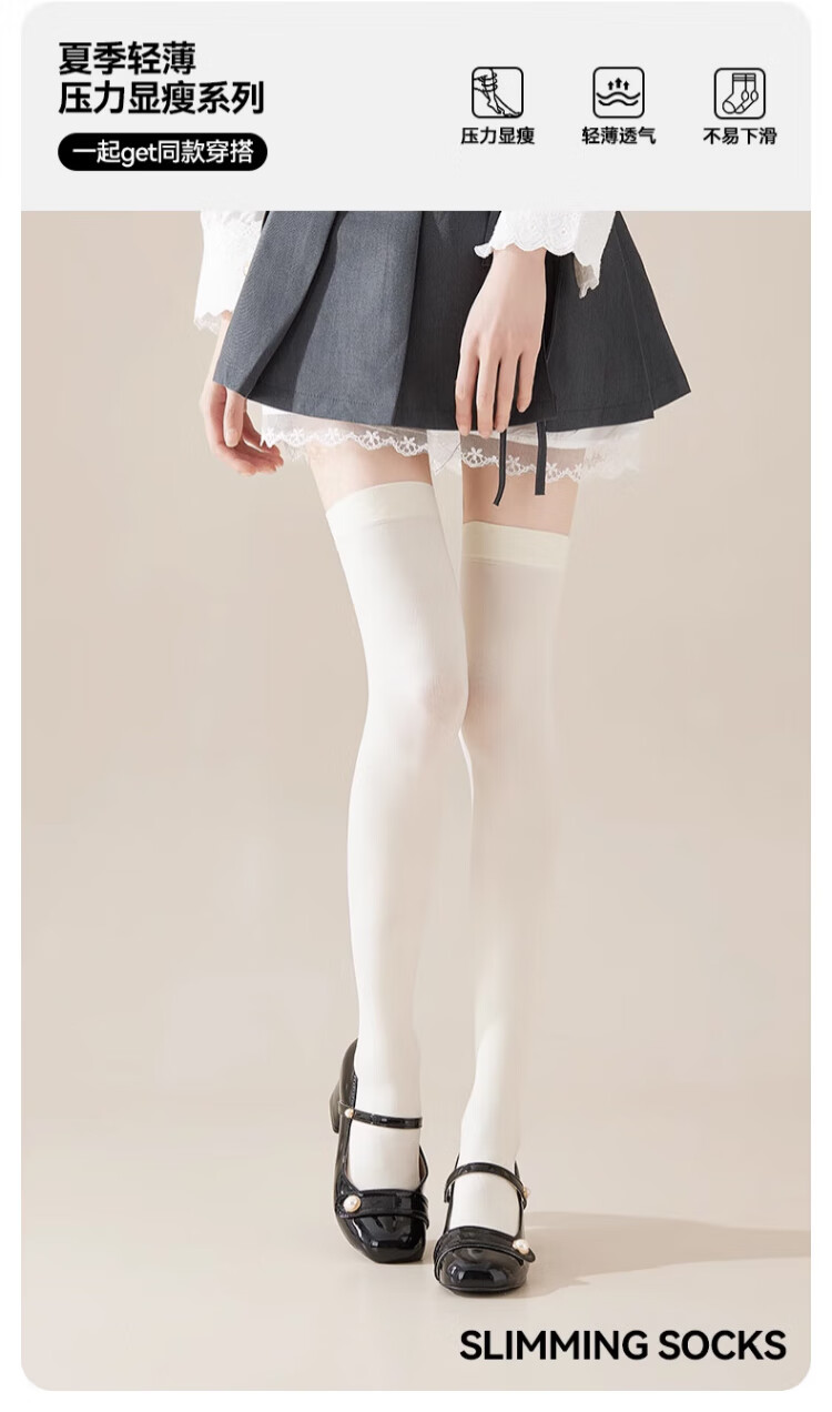 Catman white over-the-knee socks for women, thin, strong pressure, slimming jk socks, cool sun protection, black thigh stockings, spring and summer, over-the-knee socks, white 1 pair, one size fits all