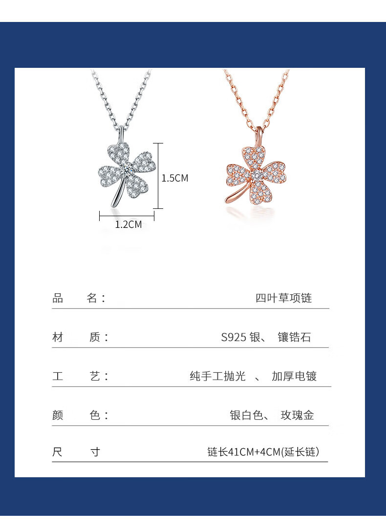 La Martina four-leaf clover sterling silver necklace for women 2025 new light luxury niche design pendant 520 Valentine's Day gift four-leaf clover necklace-silver white light luxury gift box