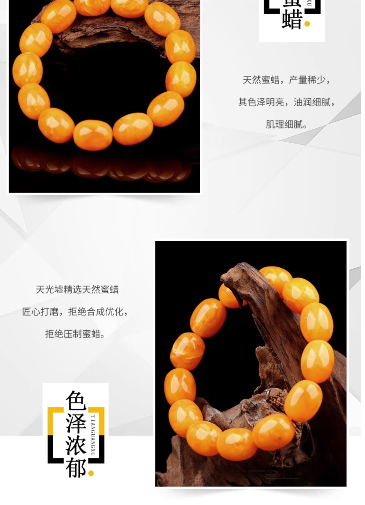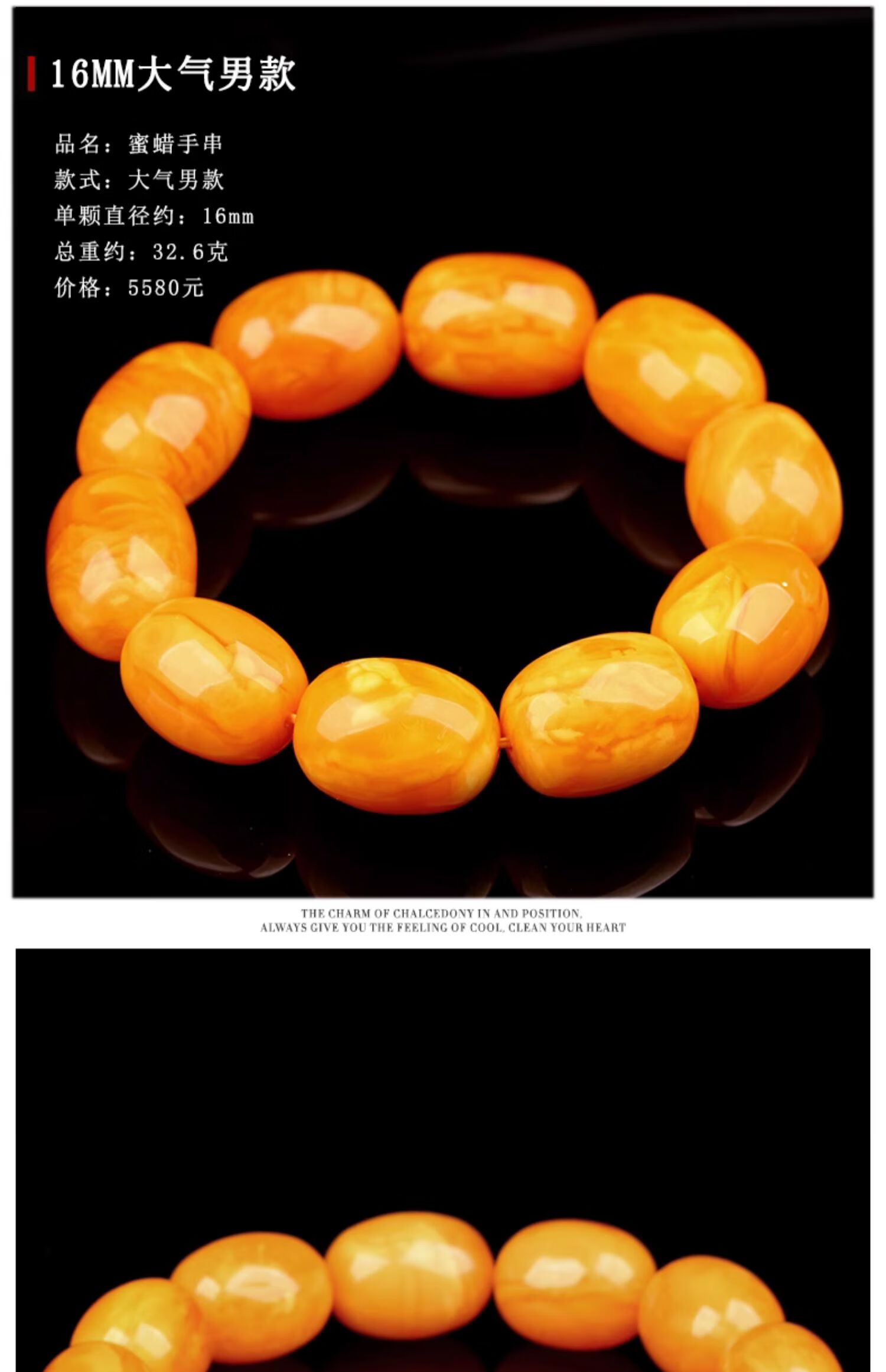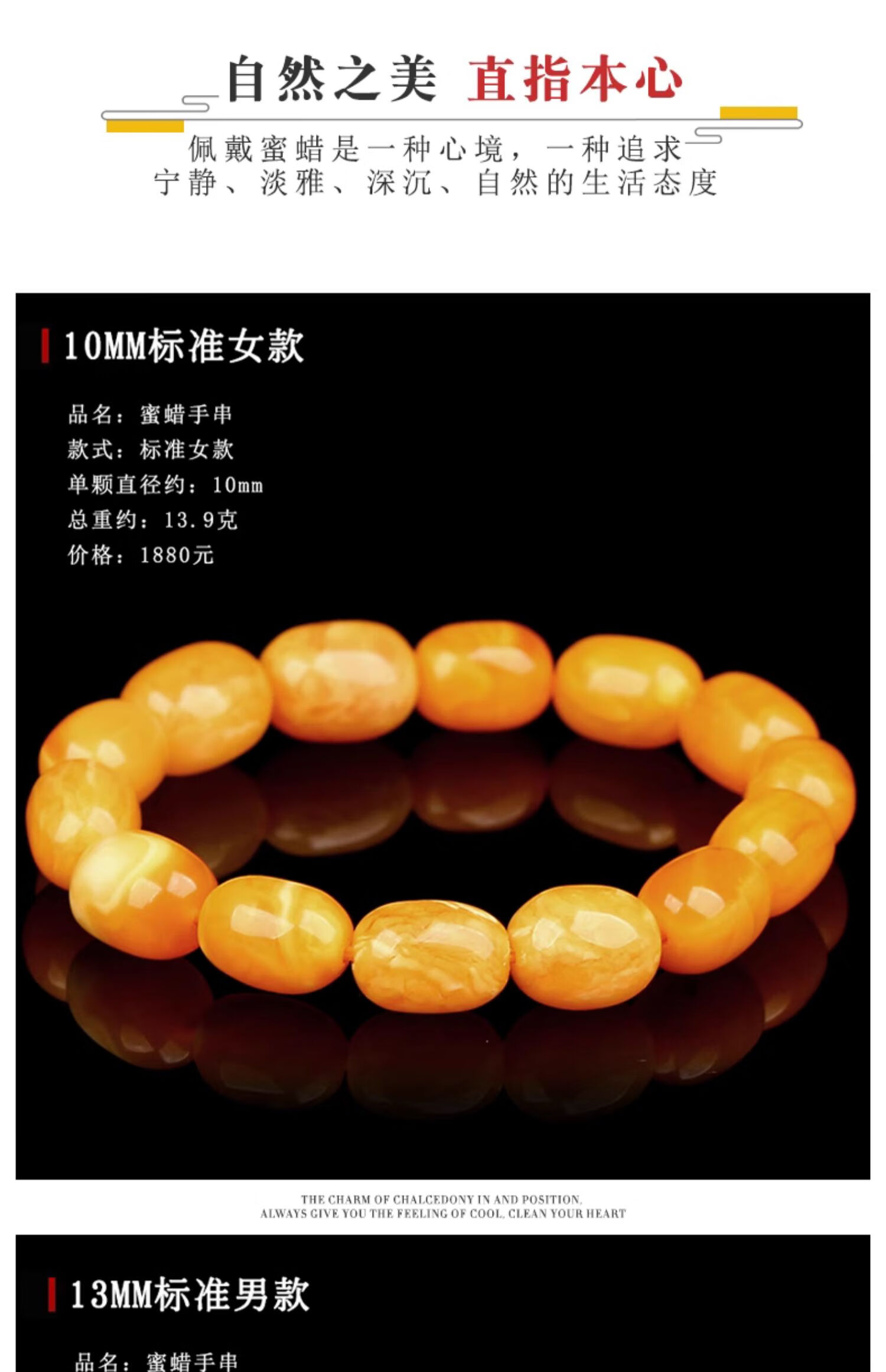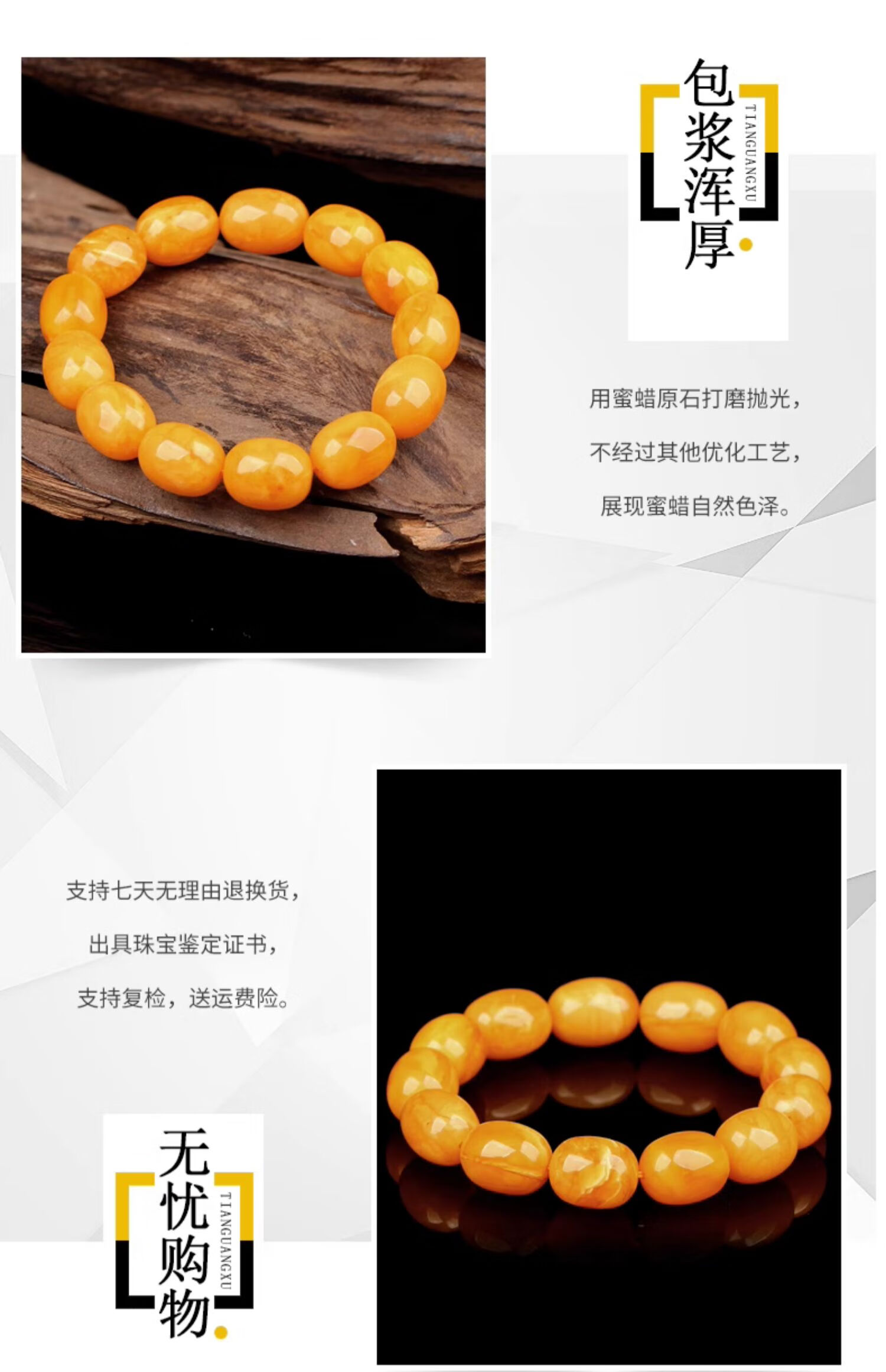 QIWN Natural Old Beeswax Bracelet Presbyopic Wax Amber Bracelet Date Bead Single Circle Men's and Women's Close Wax Buddha Bead Bracelet 20MM+, ZY5370, about 53.7 grams