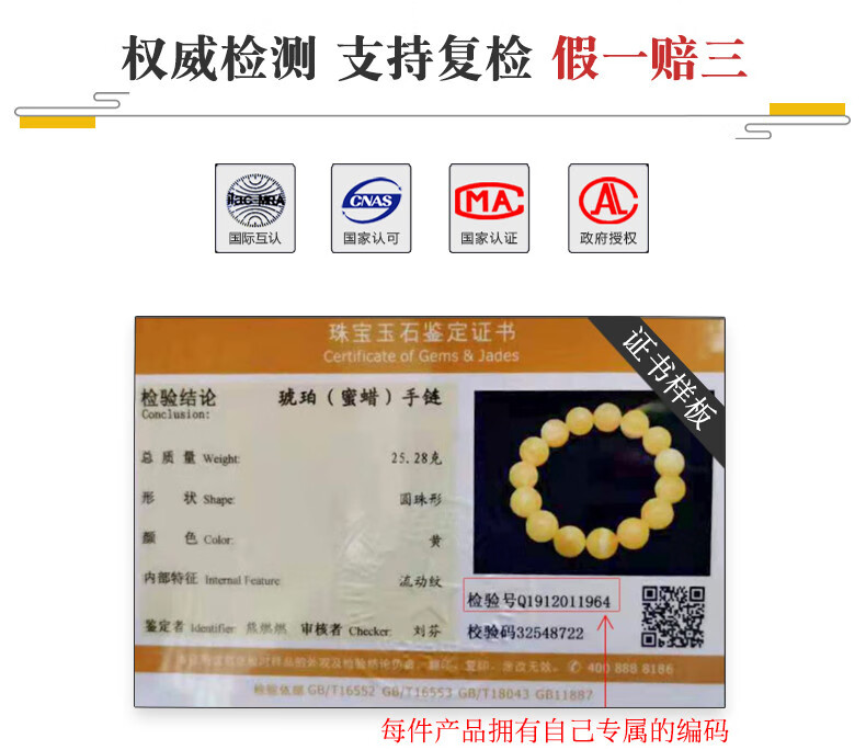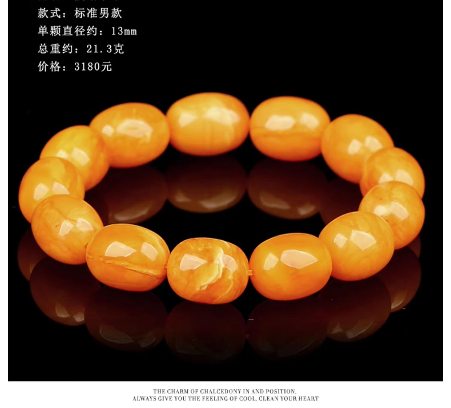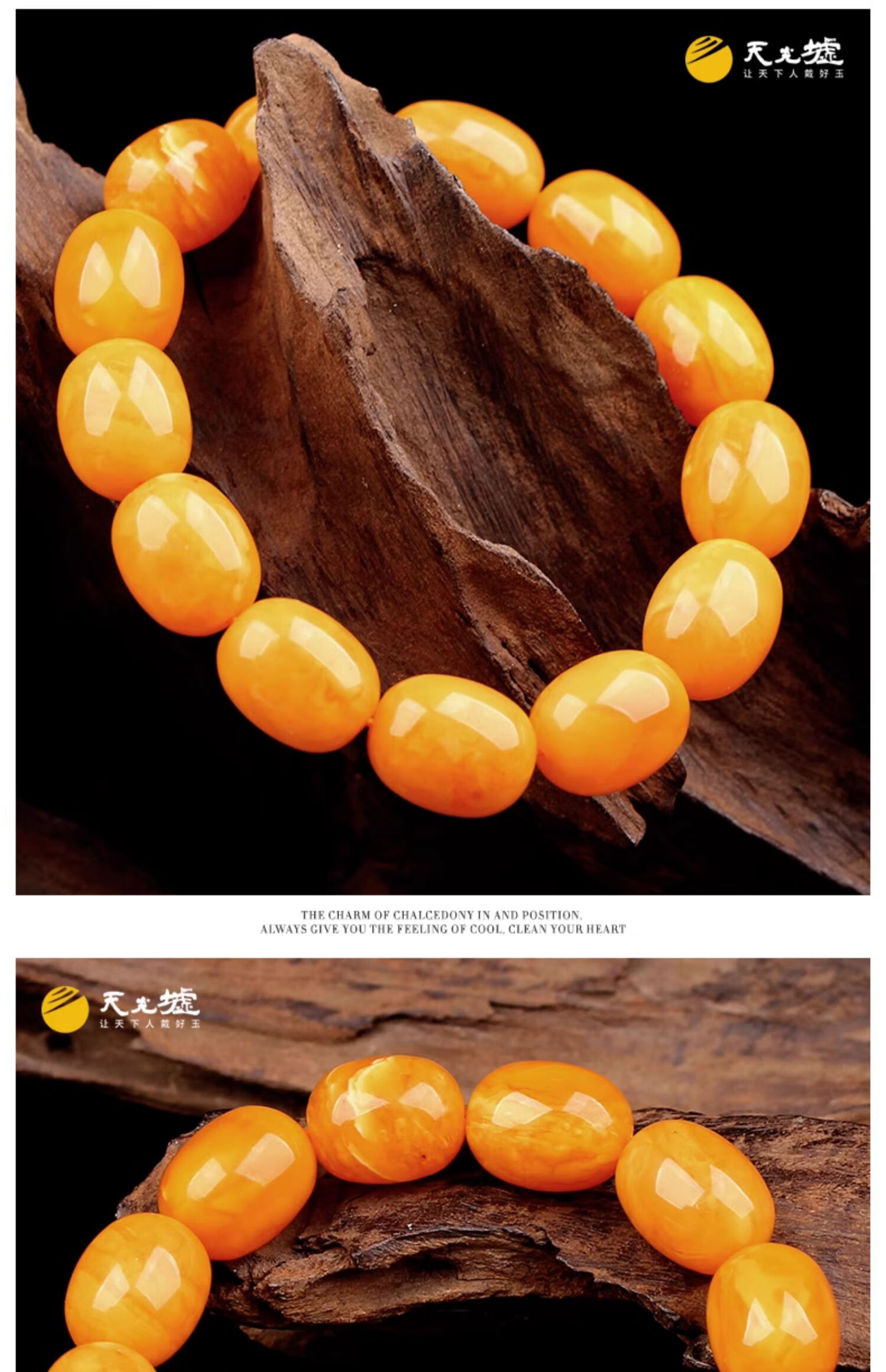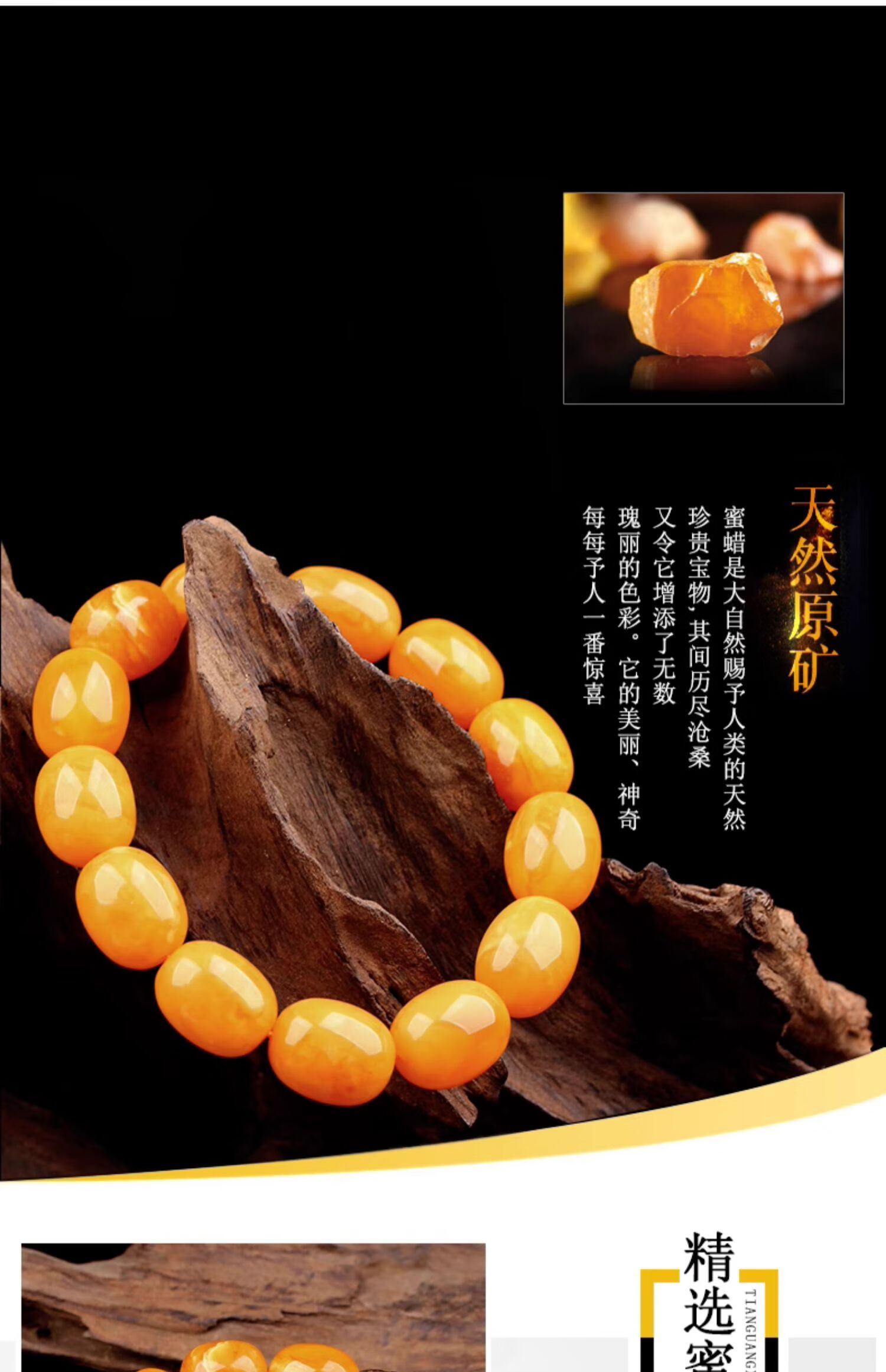 QIWN Natural Old Beeswax Bracelet Presbyopic Wax Amber Bracelet Date Bead Single Circle Men's and Women's Close Wax Buddha Bead Bracelet 20MM+, ZY5370, about 53.7 grams