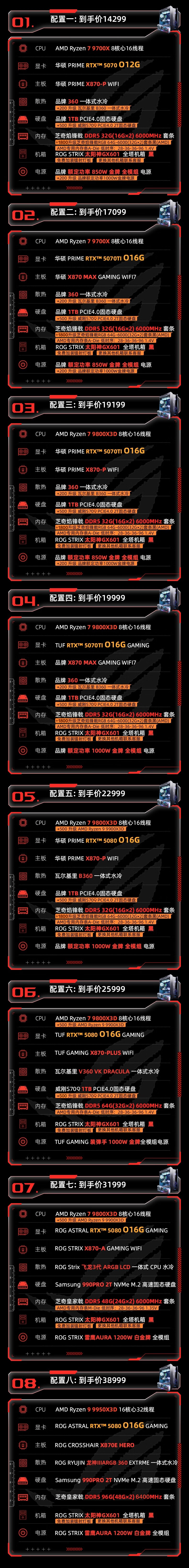 ASUS ROG assembled computer 9800X3D/9900X3D/9950X3D AMD R7 RTX5080 5090D graphics card diy host Sun God gaming e-sports computer configuration six R7-9800X3D/TUF5080/64G host package
