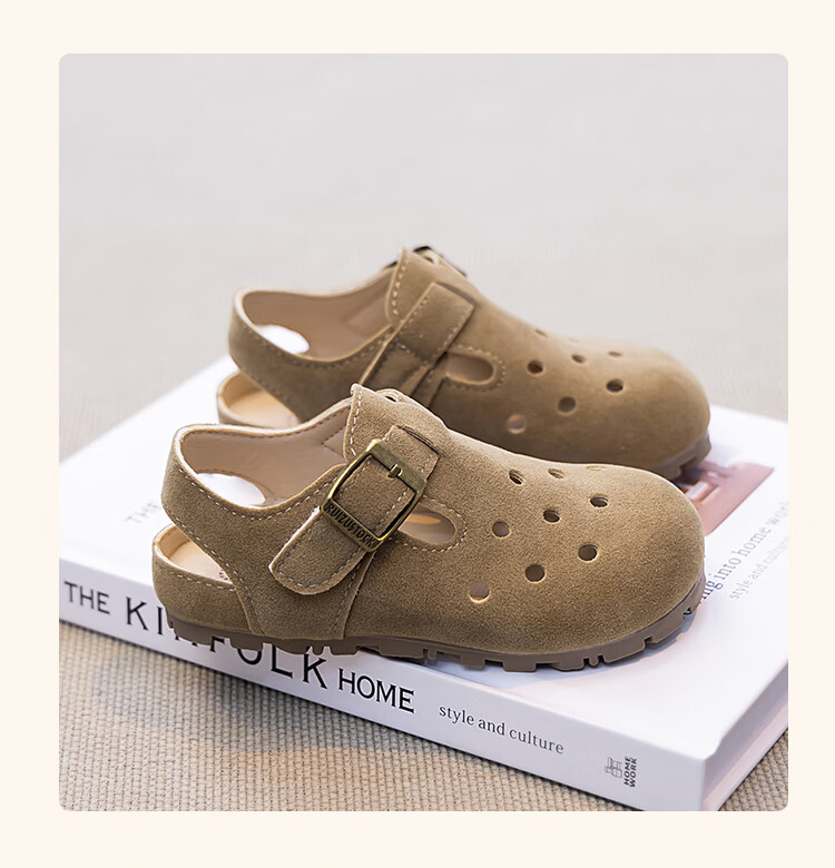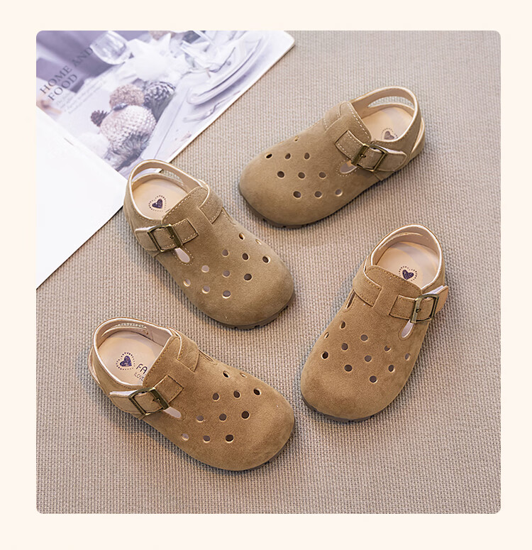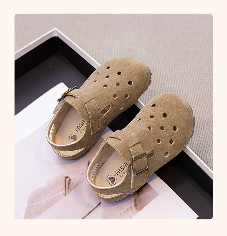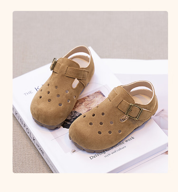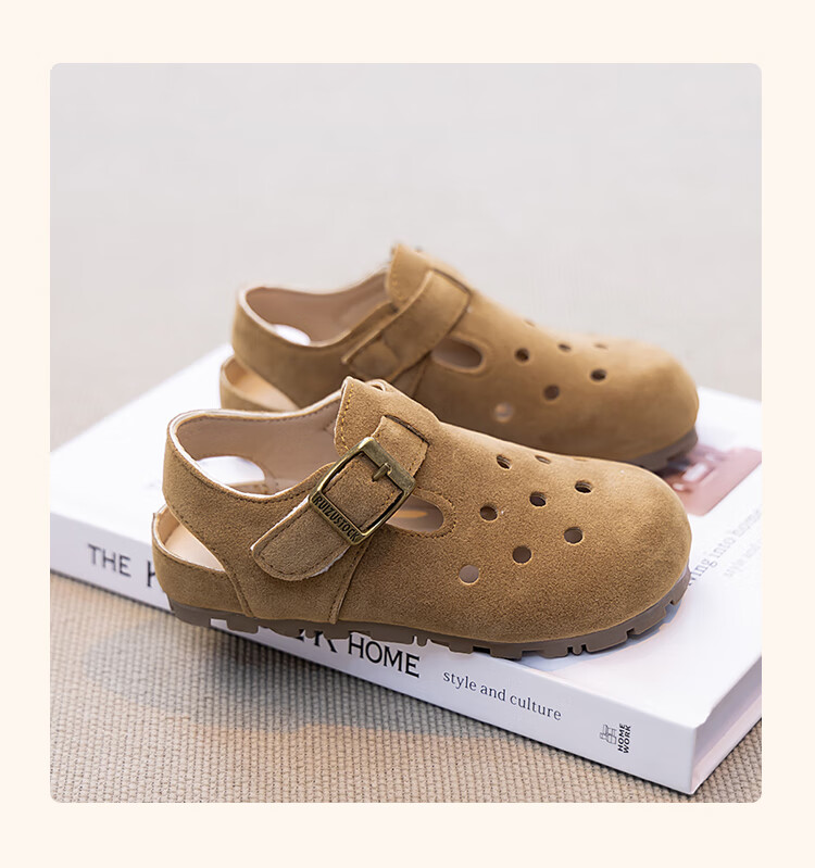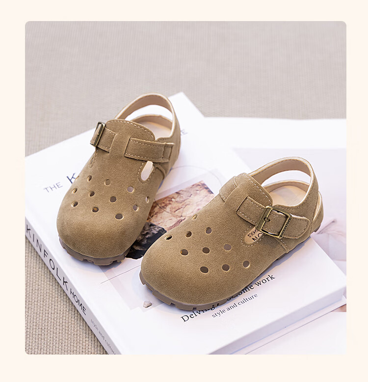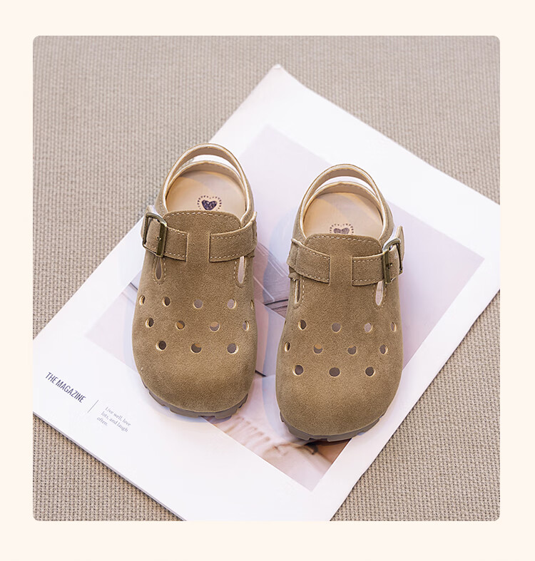 Dongdong Boken Shoes 2025 Spring New Dongdong Boken Shoes Versatile Temperament Soft Soles Soft Elastic Sandals for Boys and Girls Khaki Color 31 Inner Length 18.5cm