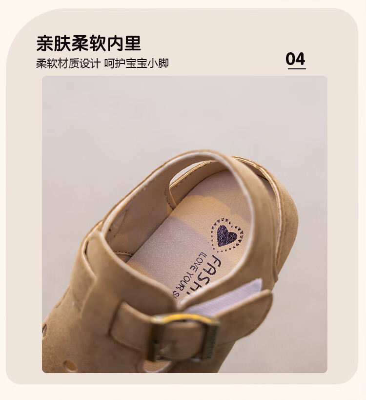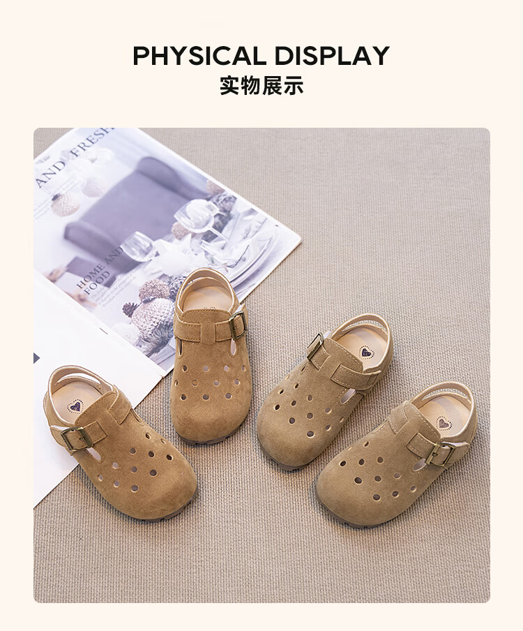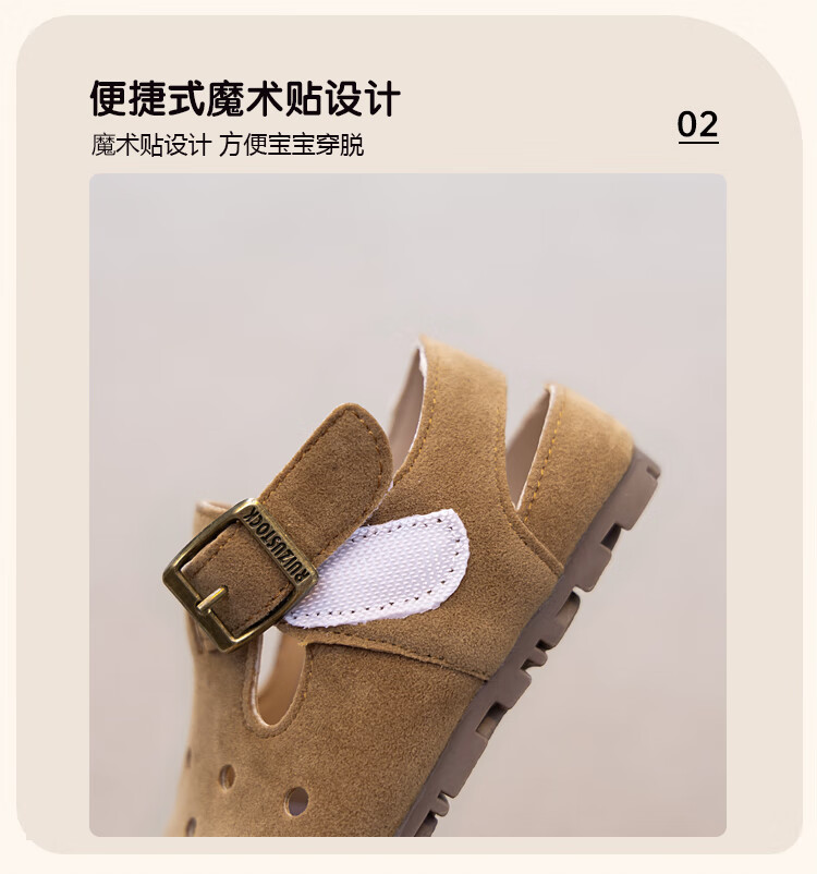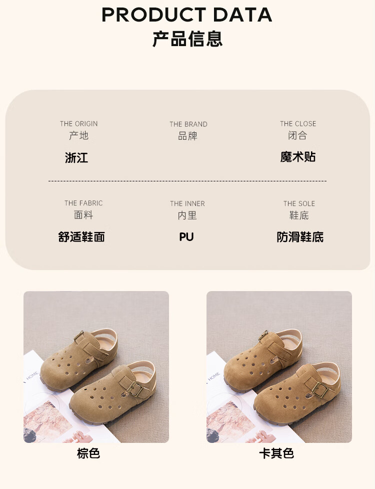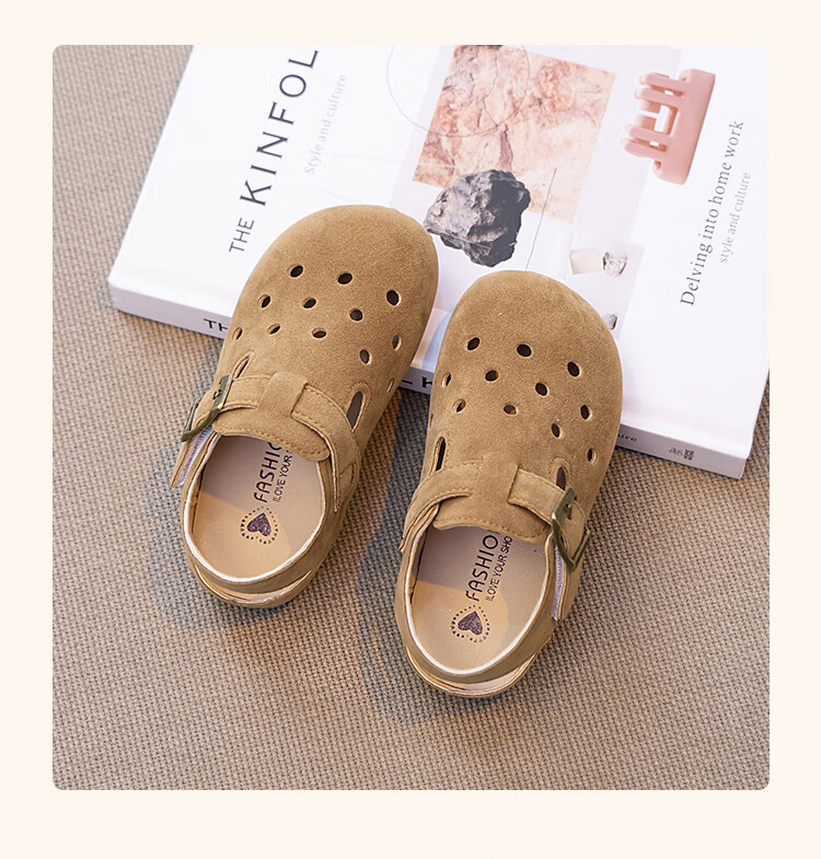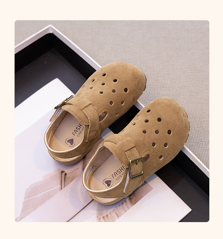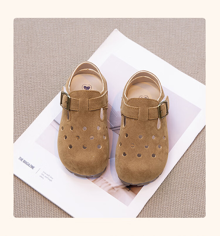 Dongdong Boken Shoes 2025 Spring New Dongdong Boken Shoes Versatile Temperament Soft Soles Soft Elastic Sandals for Boys and Girls Khaki Color 31 Inner Length 18.5cm