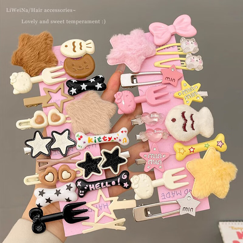 Welfare grab 20-piece set, cute girl kitty hairpin, fish side clip, sweet and cool PU star BB hair accessories, main picture, 20-piece set, can’t be used up in three years