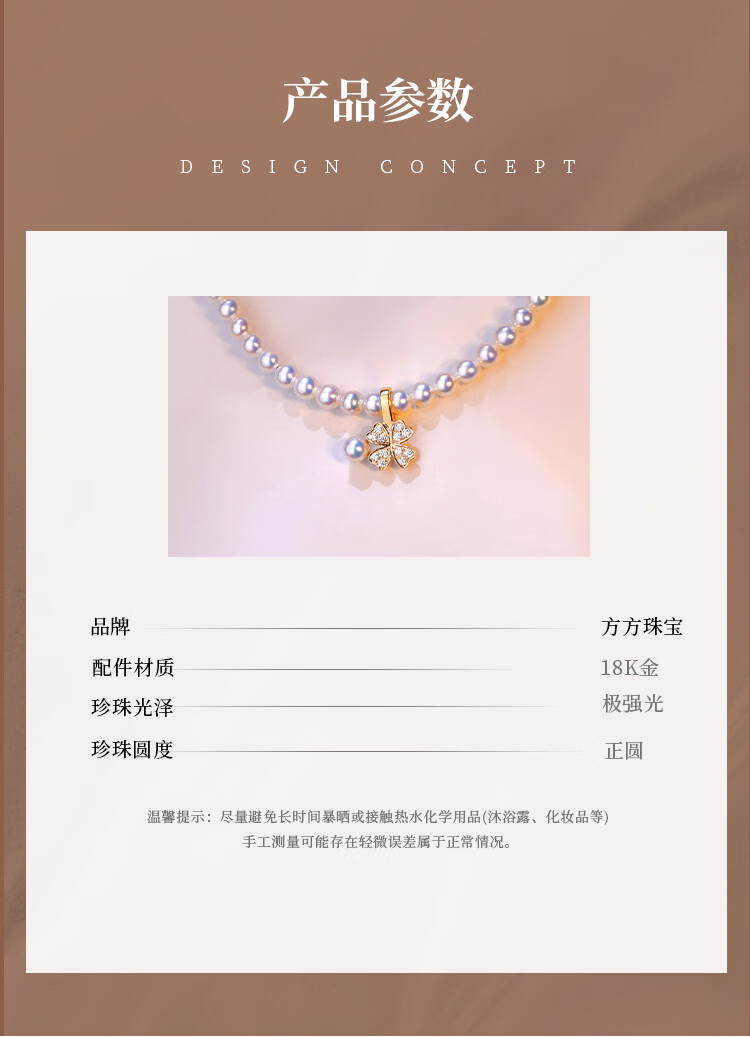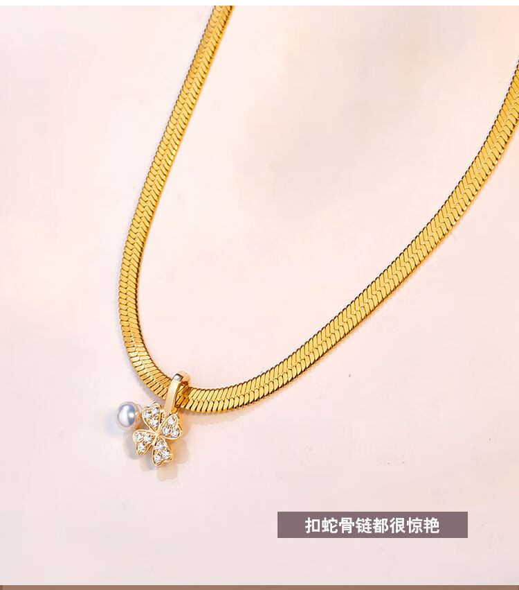 Kawamori natural Japanese akoya mini seawater pearl necklace pendant 18K gold buckle lucky four-leaf clover single 18K pendant