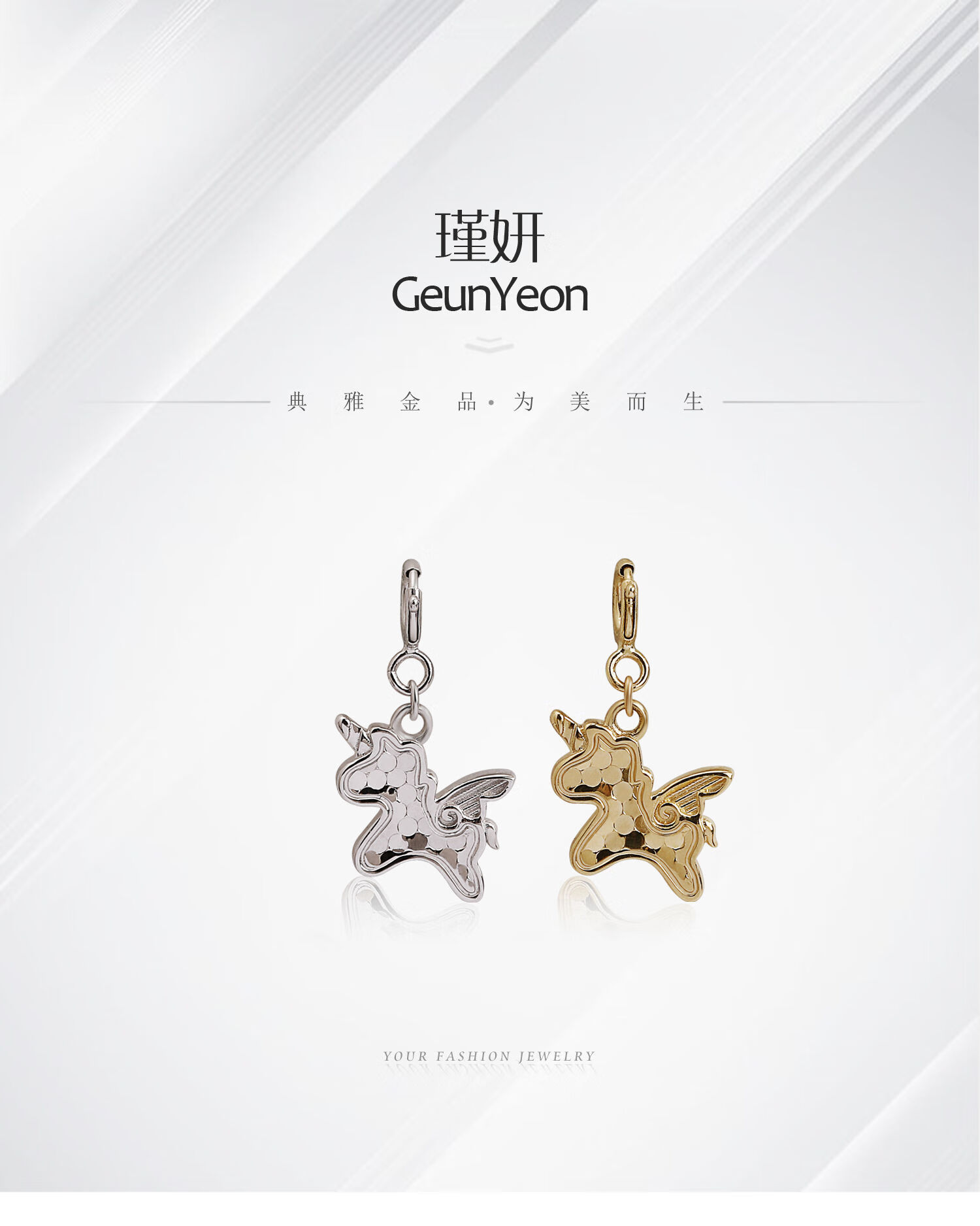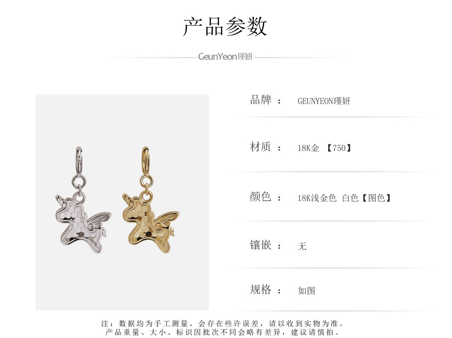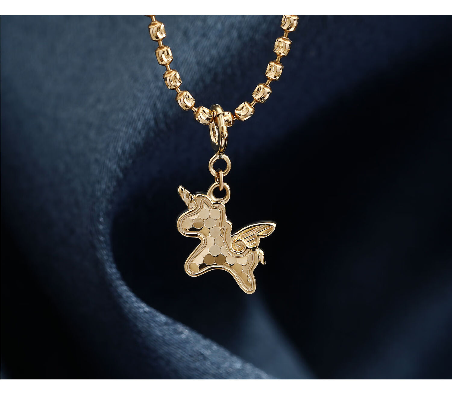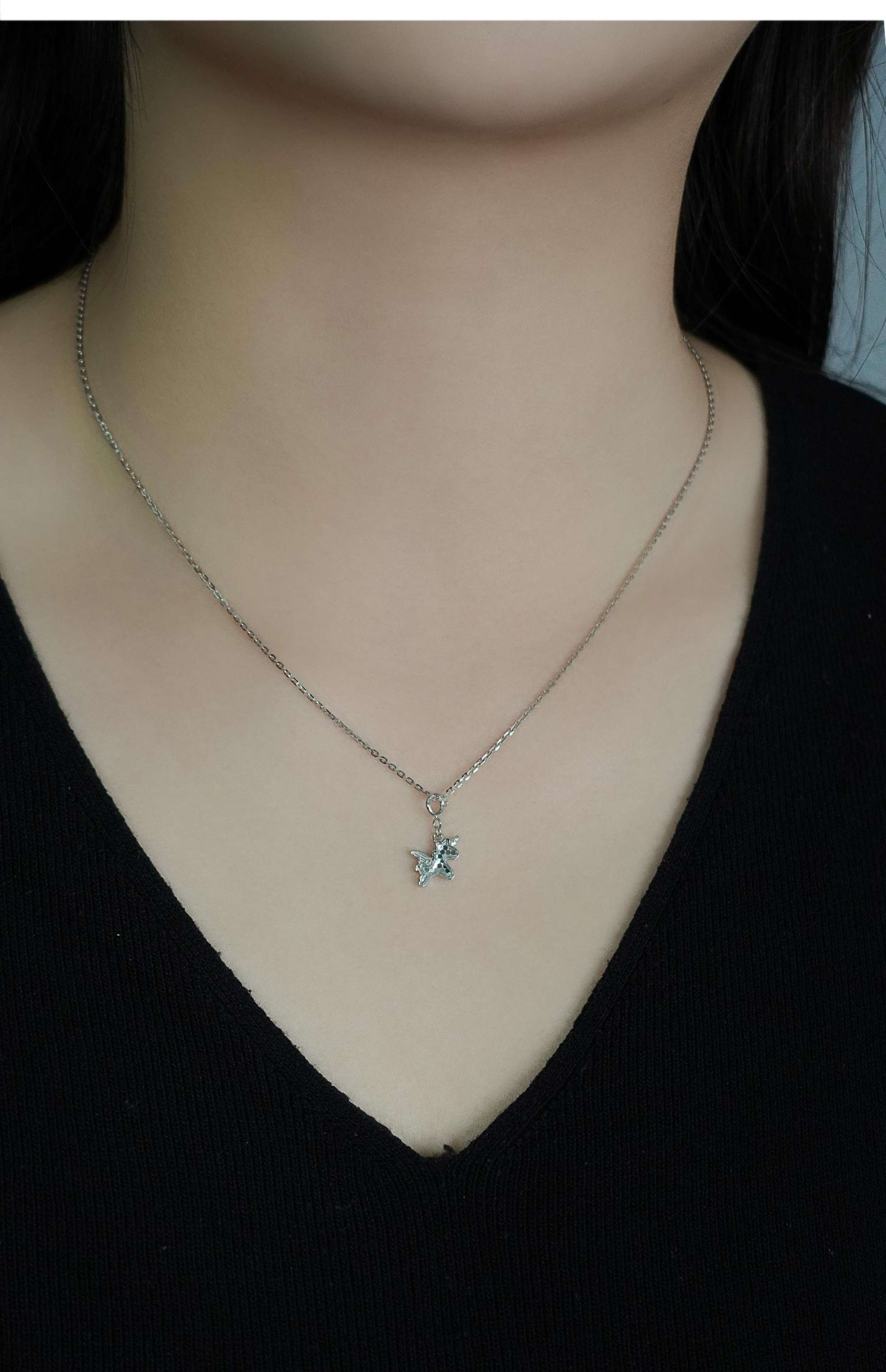 Chuansen Jewelry Pure 18K Gold Exquisite Laser Pony Unicorn Pendant Small Tail Necklace Pendant Clavicle Pendant Light Gold Customized