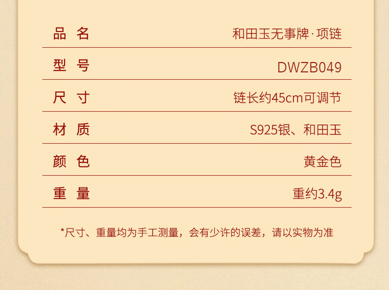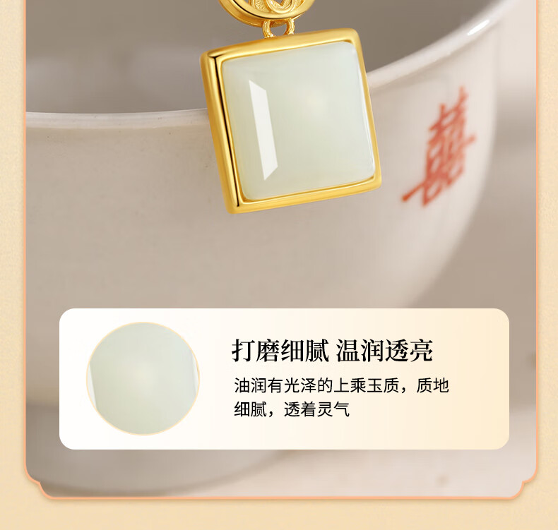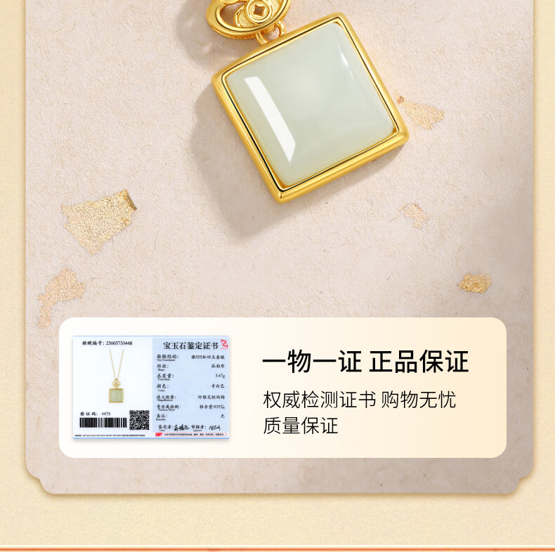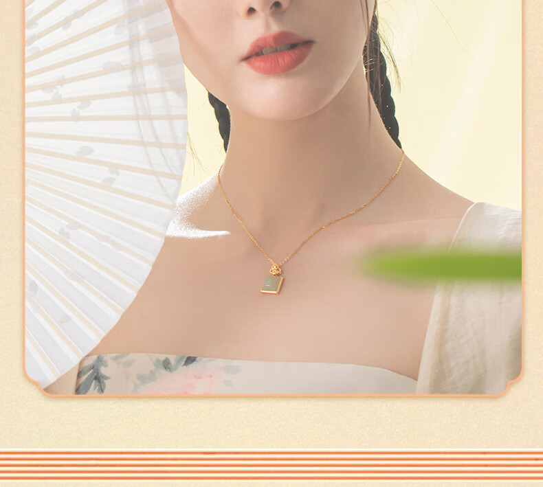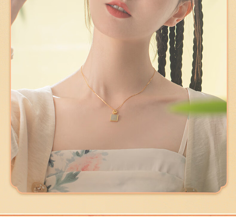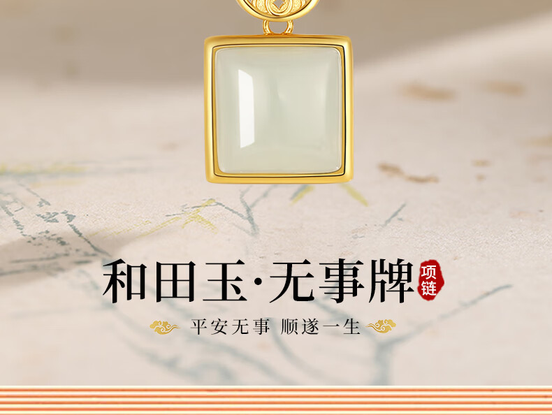 La Martina Ping An Buckle Wu Shi Brand Necklace Women's Sterling Silver Hetian Jade Pendant Birthday Mid-Autumn Festival Gift for Mom Hetian Jade Wu Shi Brand Necklace Light Luxury Gift Box