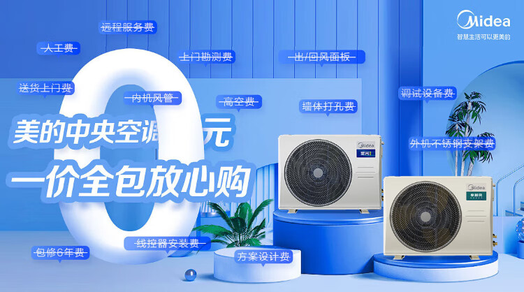 Midea central air conditioning duct machine large 3 HP one-to-one inverter air conditioner household embedded living room heating and cooling household commercial DC inverter air conditioner large 3 HP first class energy efficiency new style cool power saving all inclusive