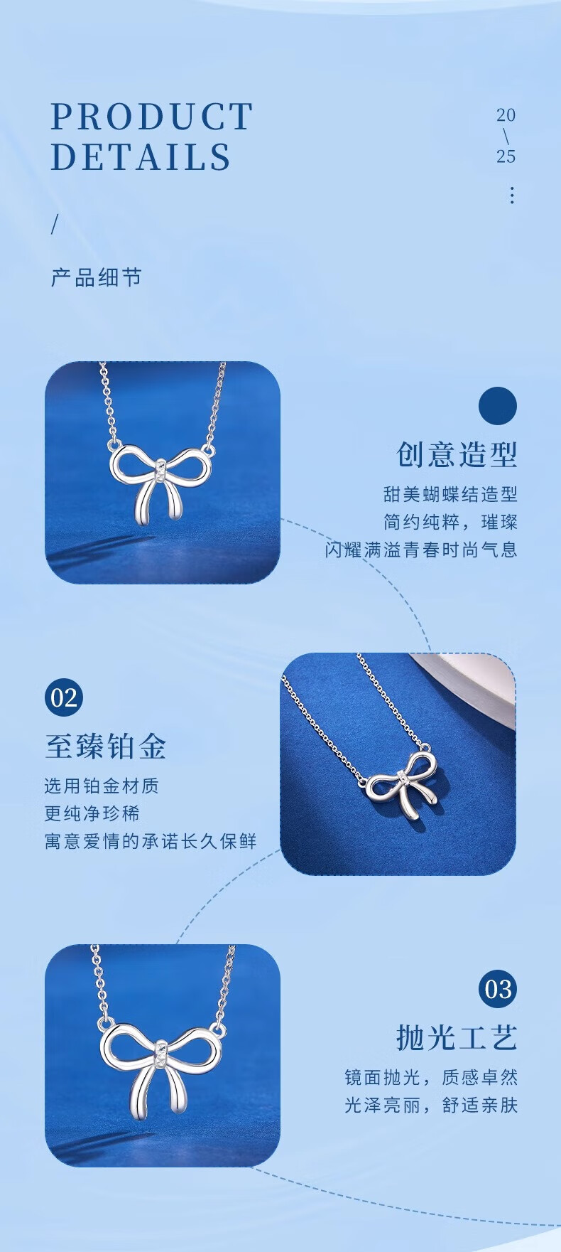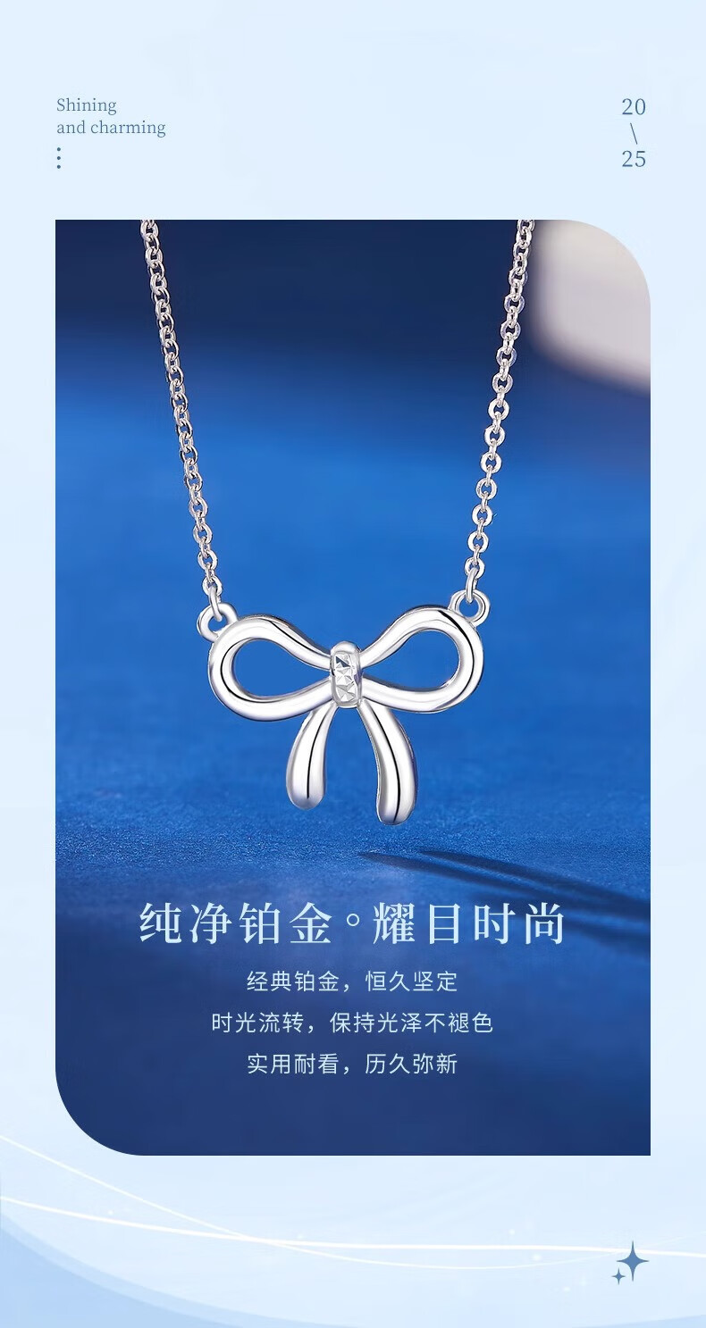 Lao Fengxiang PT950 platinum fugitive princess pendant for women platinum butterfly wife birthday gift Mid-Autumn Festival gift for girlfriend PT950 platinum fugitive princess necklace about 5.2g