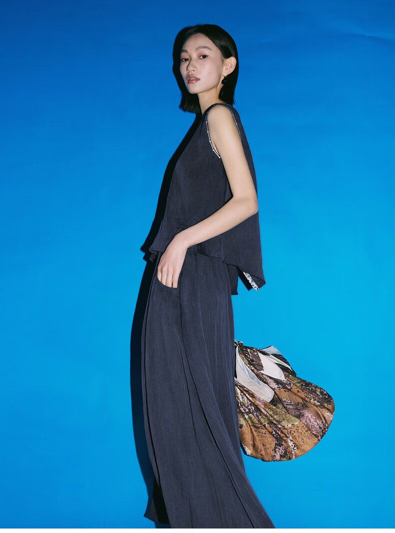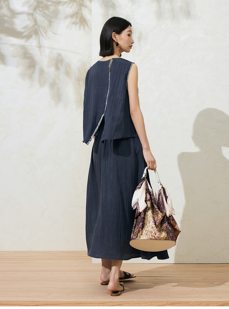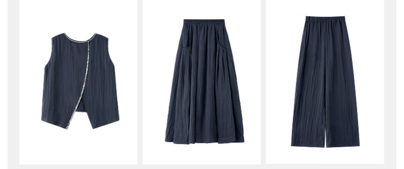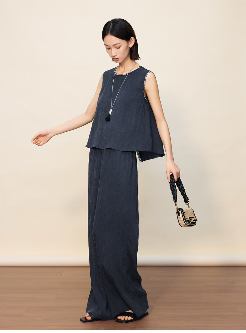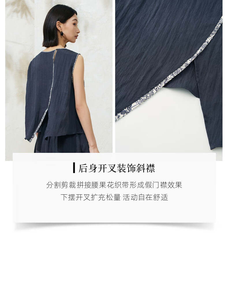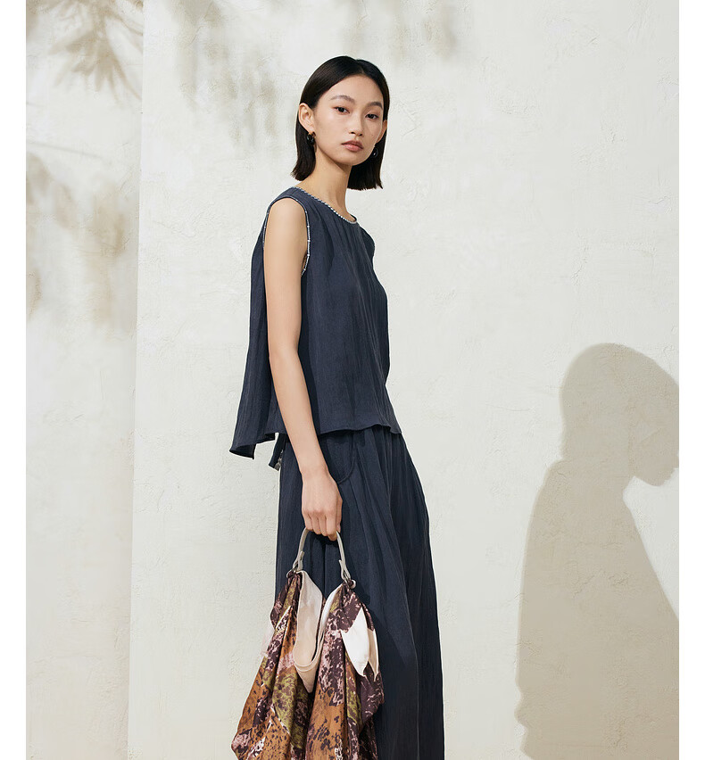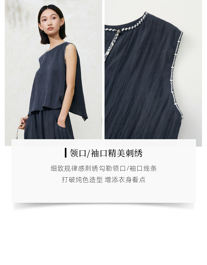 SUSHE Lingjian ethnic style embroidered sleeveless top drape skirt loose straight pants suit women summer Cenlan-top M