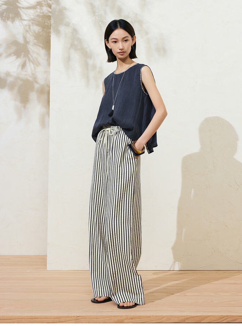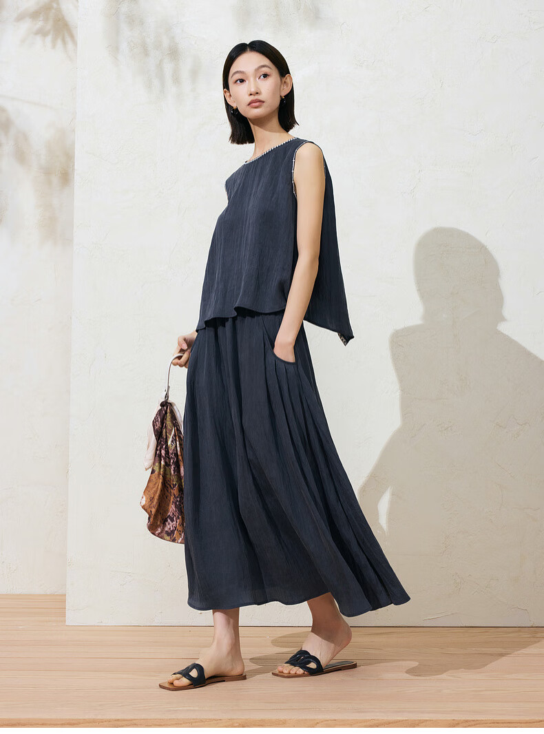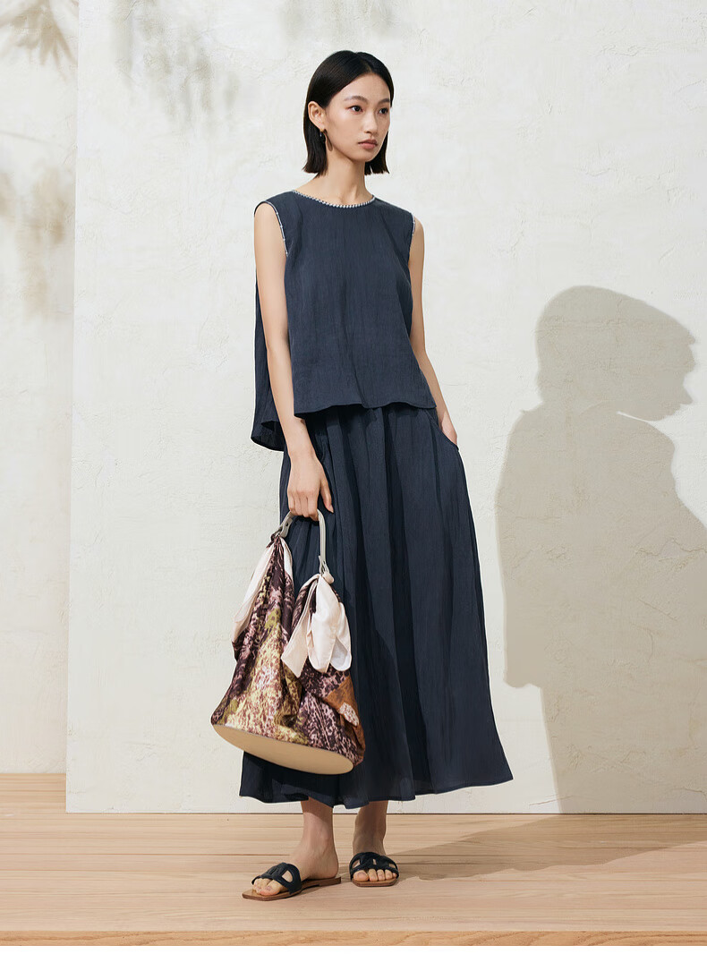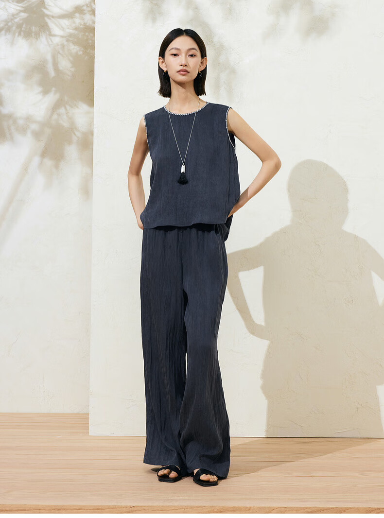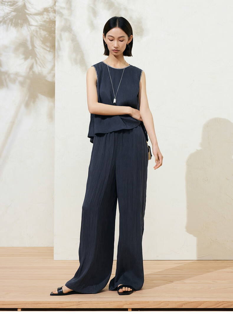 SUSHE Lingjian ethnic style embroidered sleeveless top drape skirt loose straight pants suit women summer Cenlan-top M