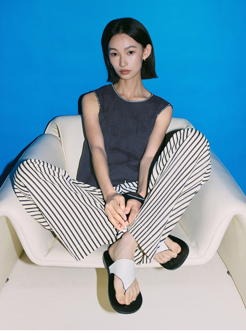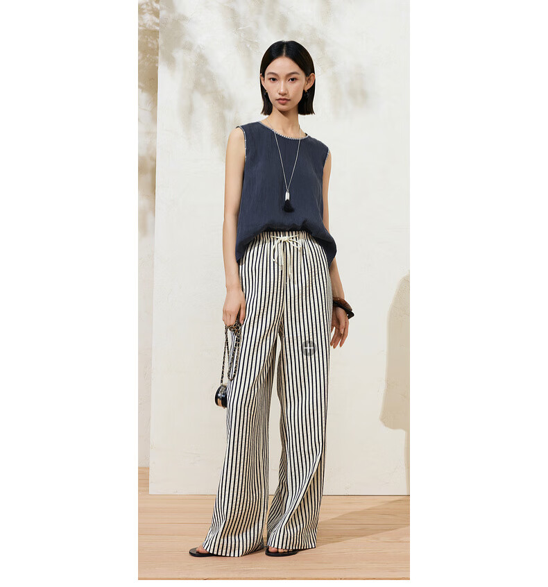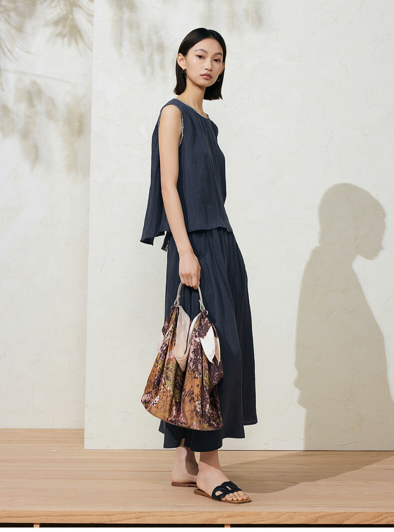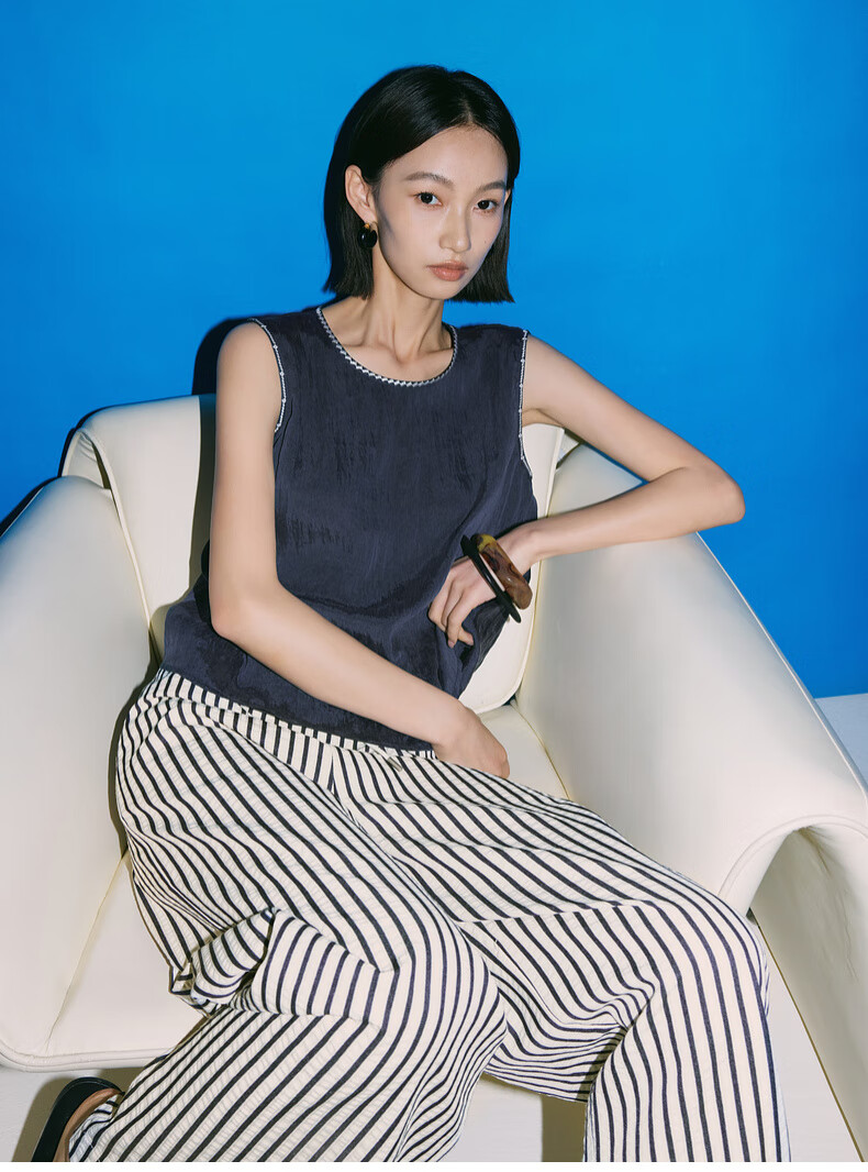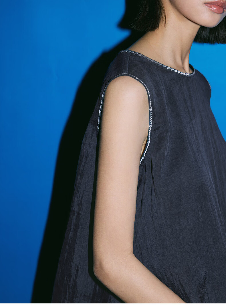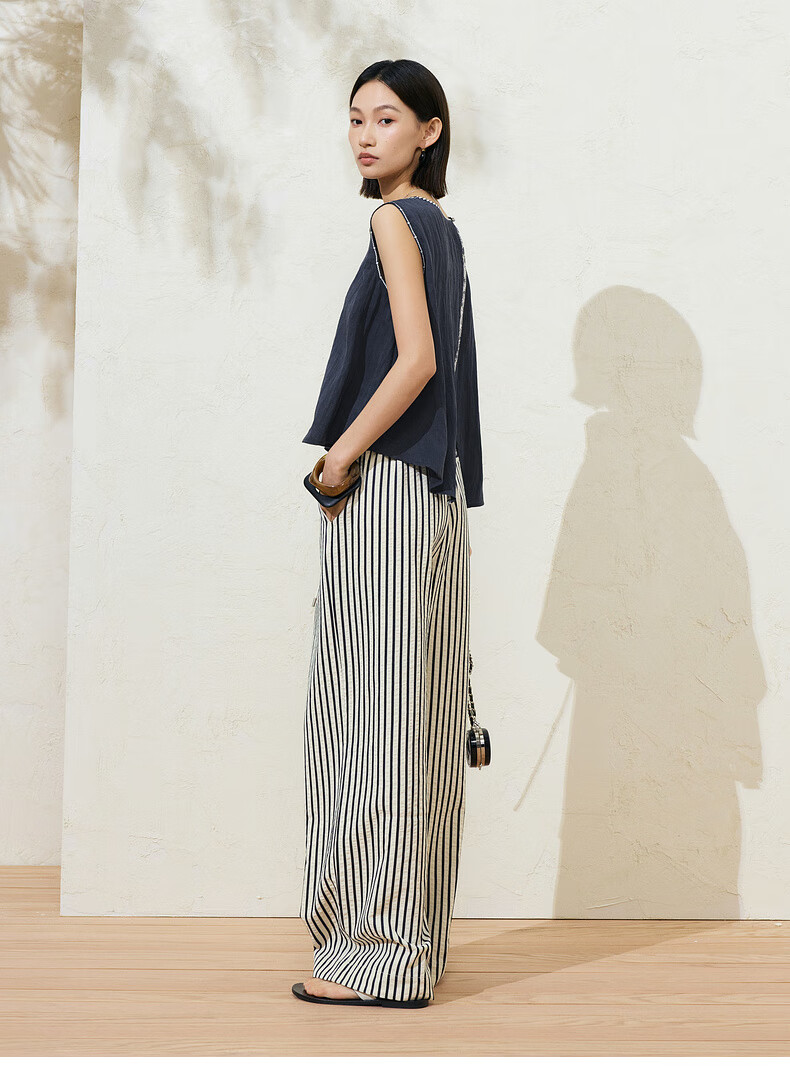 SUSHE Lingjian ethnic style embroidered sleeveless top drape skirt loose straight pants suit women summer Cenlan-top M