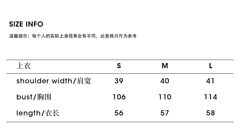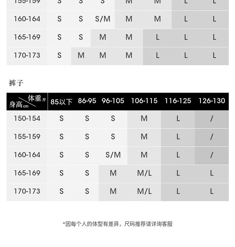 China (cm) 160-165/84-86 165-170 / 88-90 167-172 / 92-96 168-173 / 98-102 170-176 / 106-110