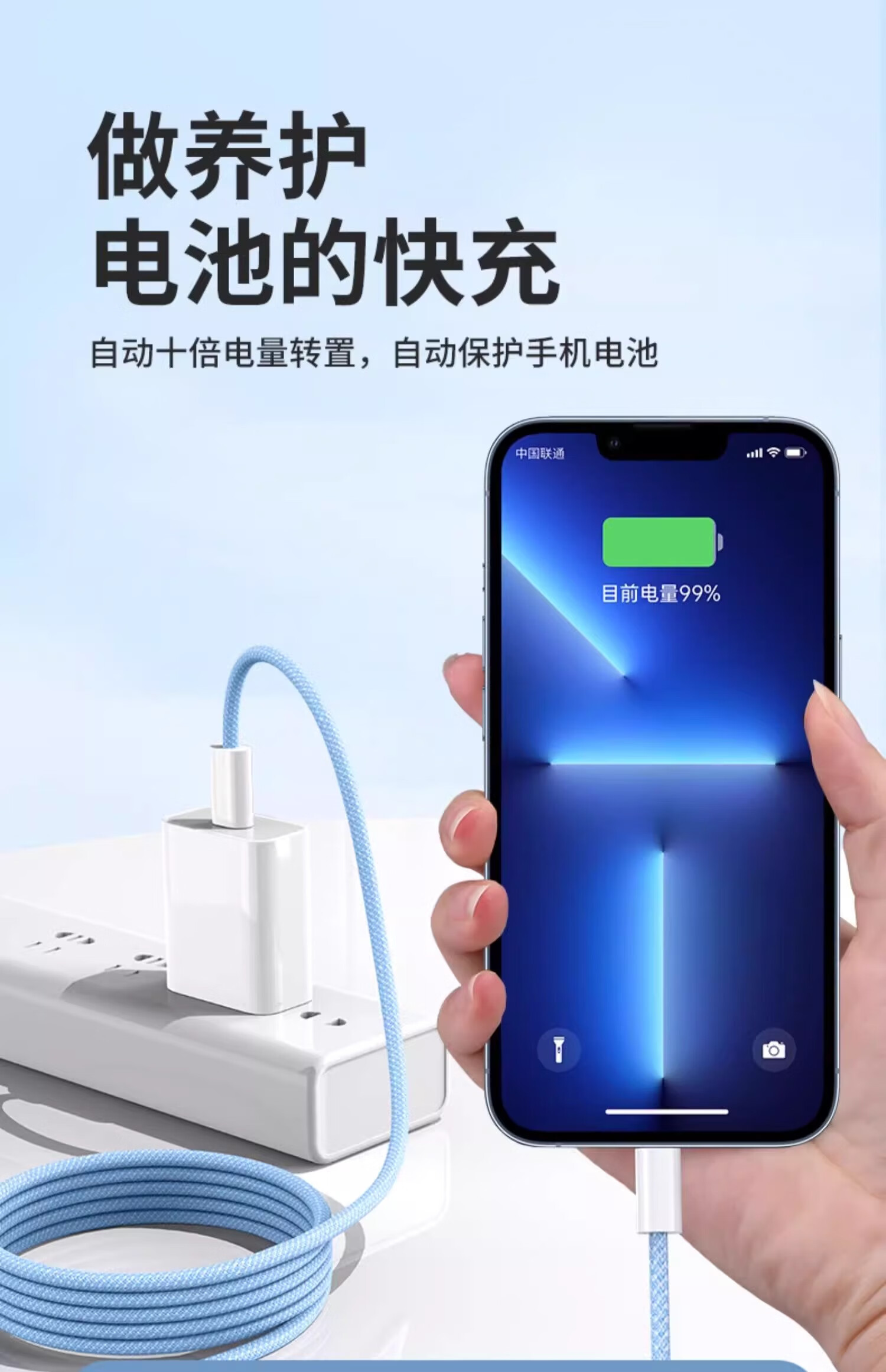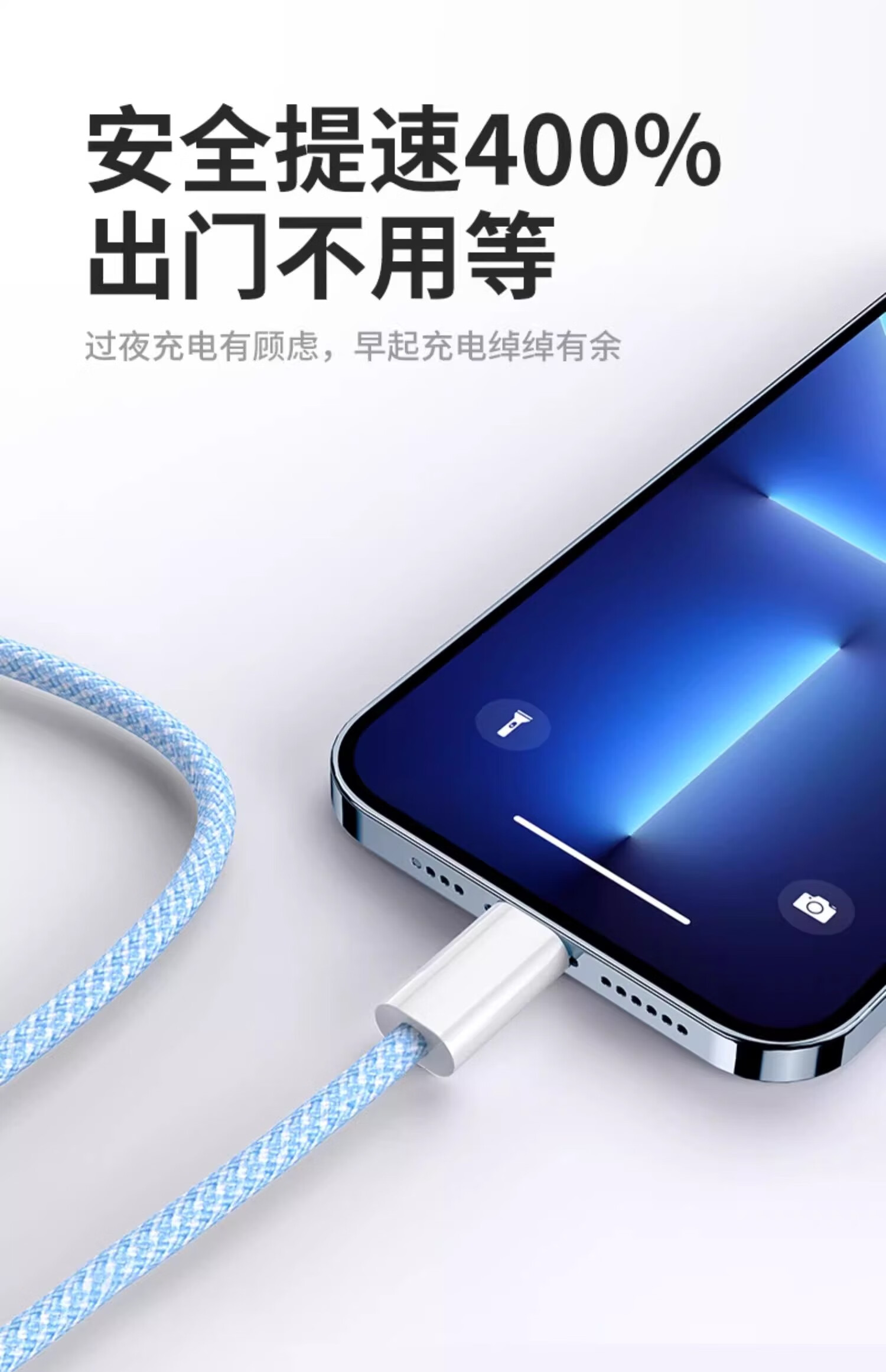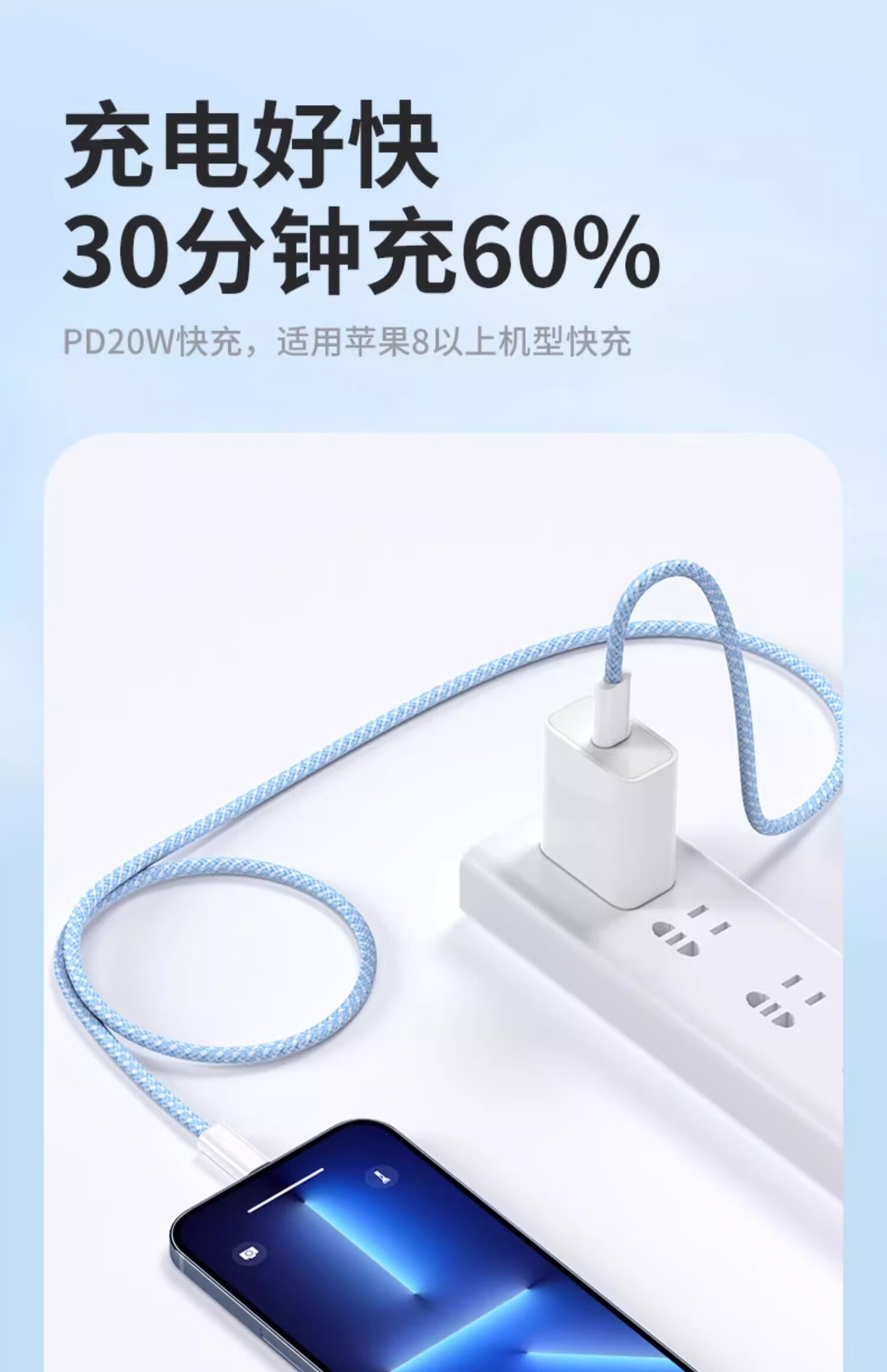 Apple data cable PD20W braided fast charging cable suitable for iphone14promax/14/13/12/11/8p all series mobile phone and tablet data cable extension 2 meters Tafik starry sky gray USB certified 40 minutes full charge one pack 1.5m