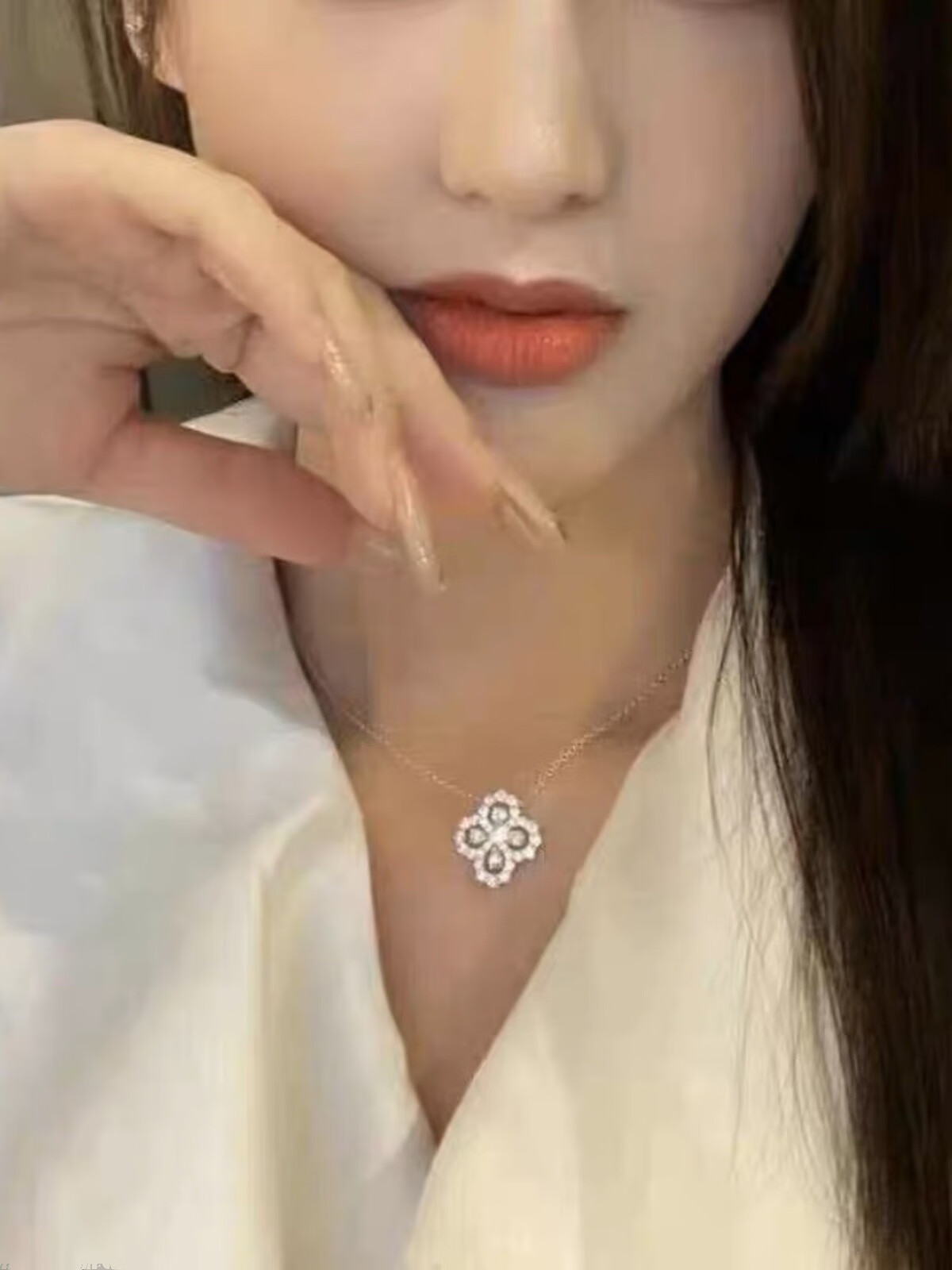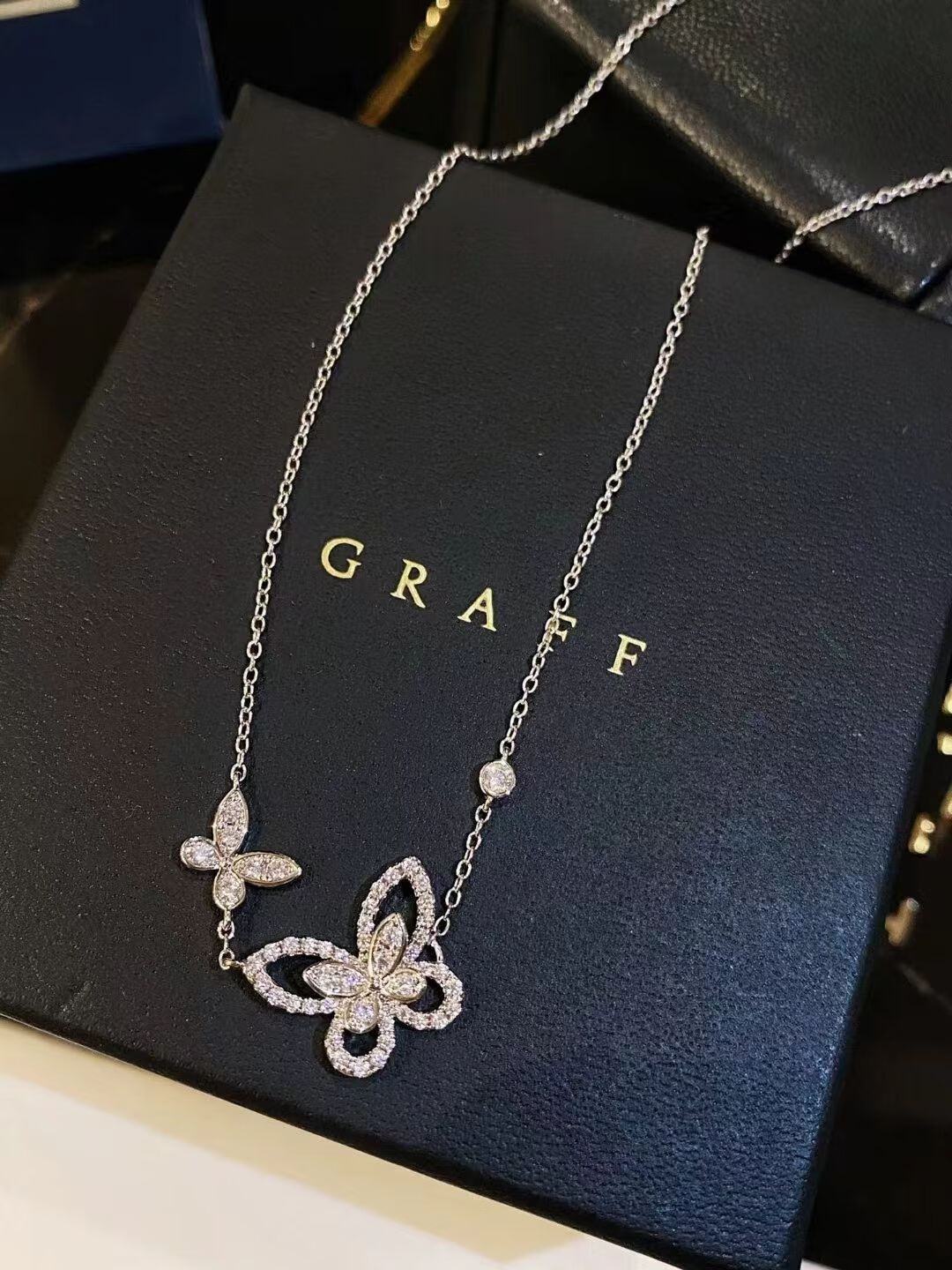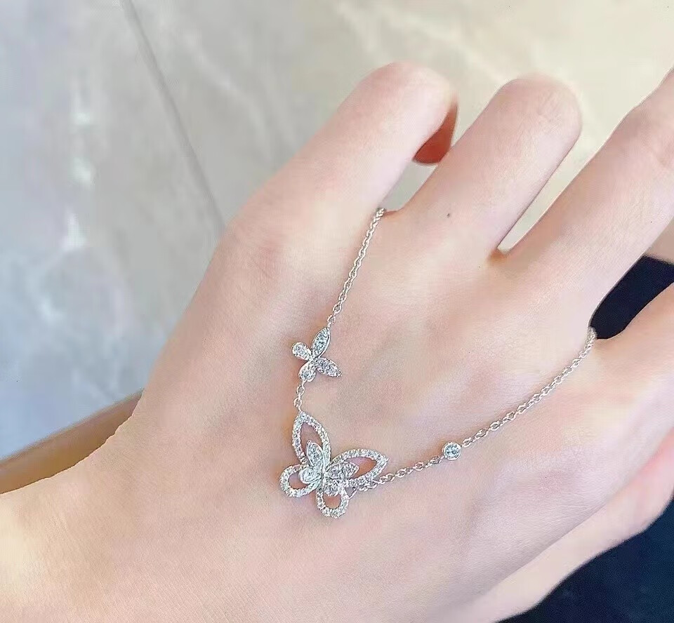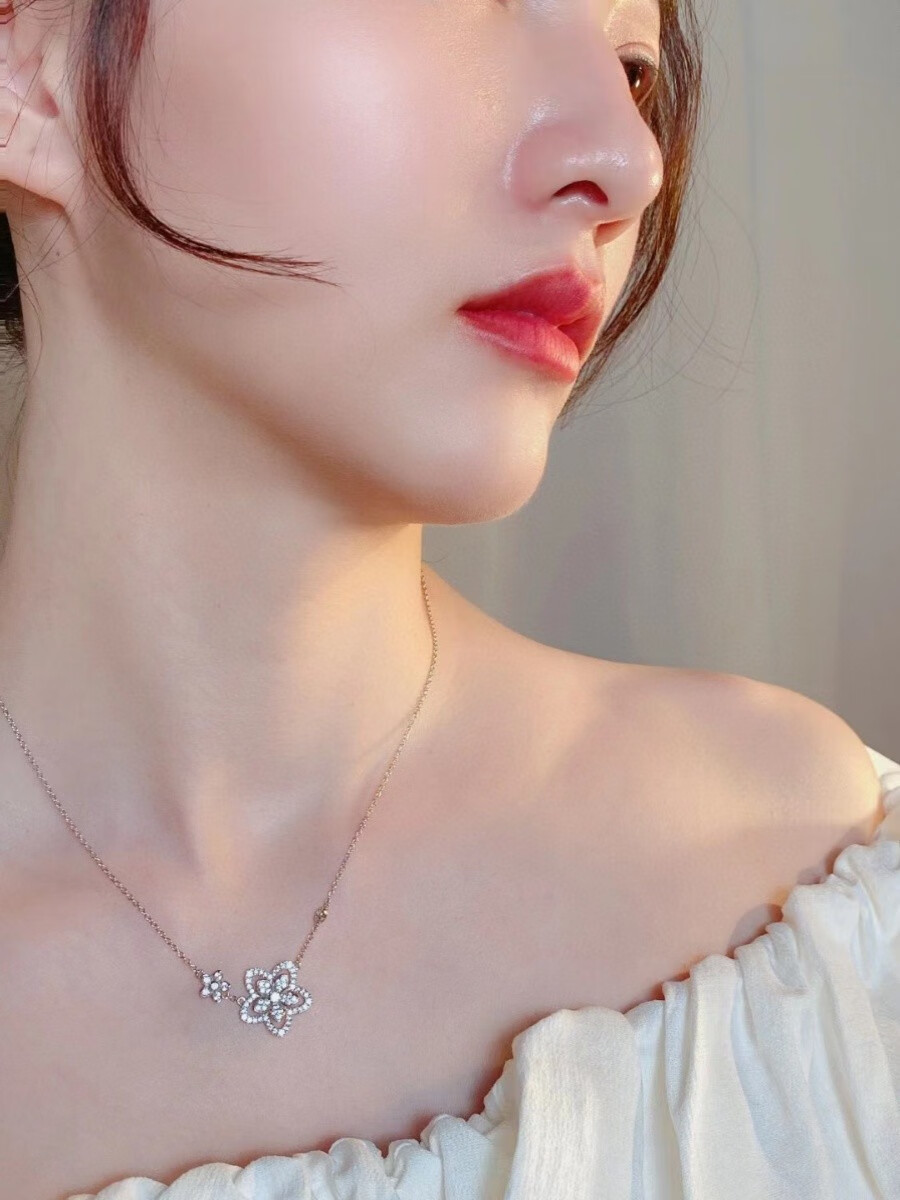 Kawamori hw butterfly necklace 18K gold platinum real diamond Loop water drop full diamond pendant phantom clavicle chain female gift four-leaf clover