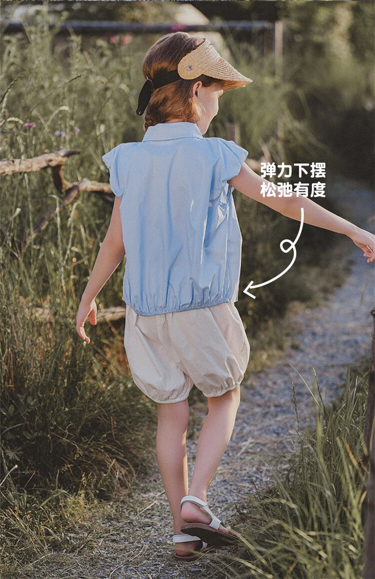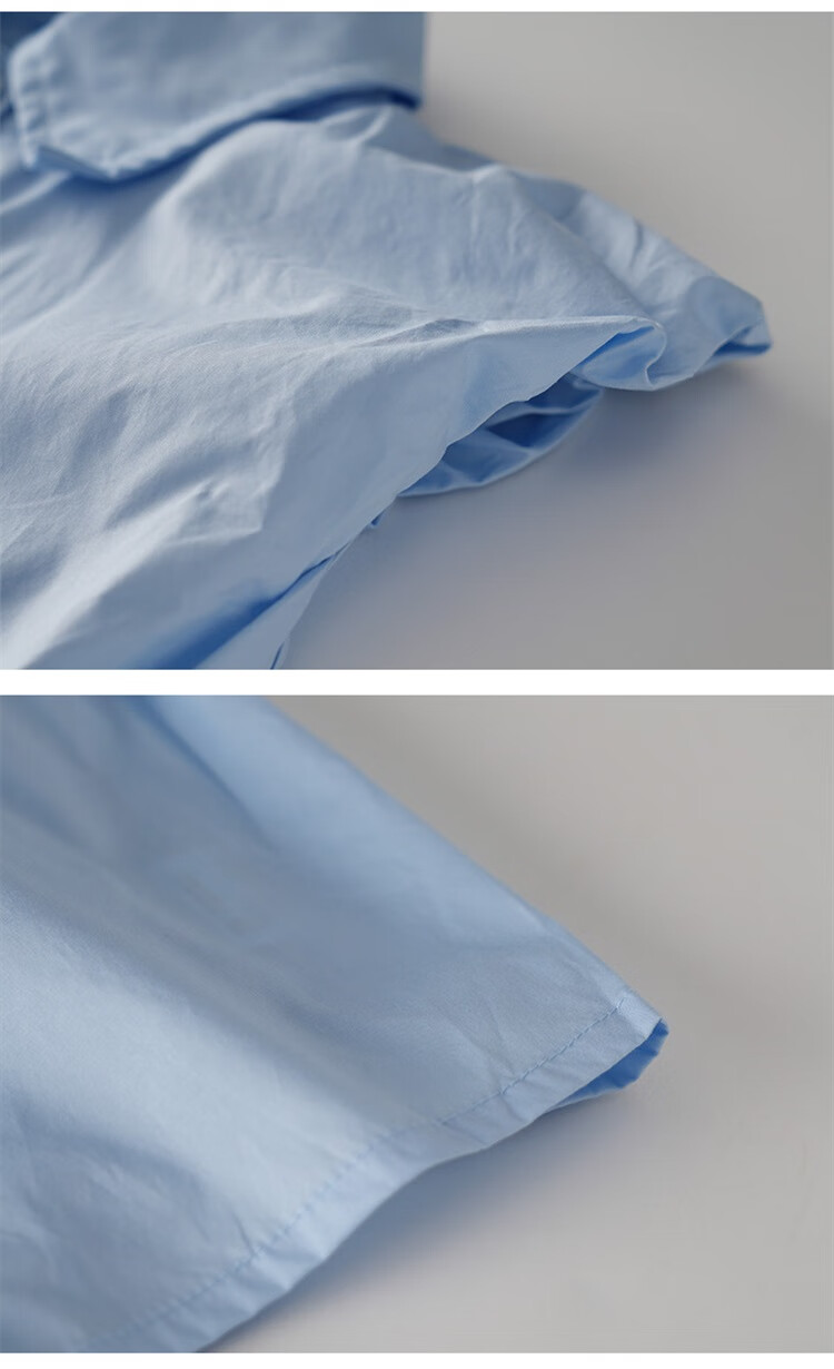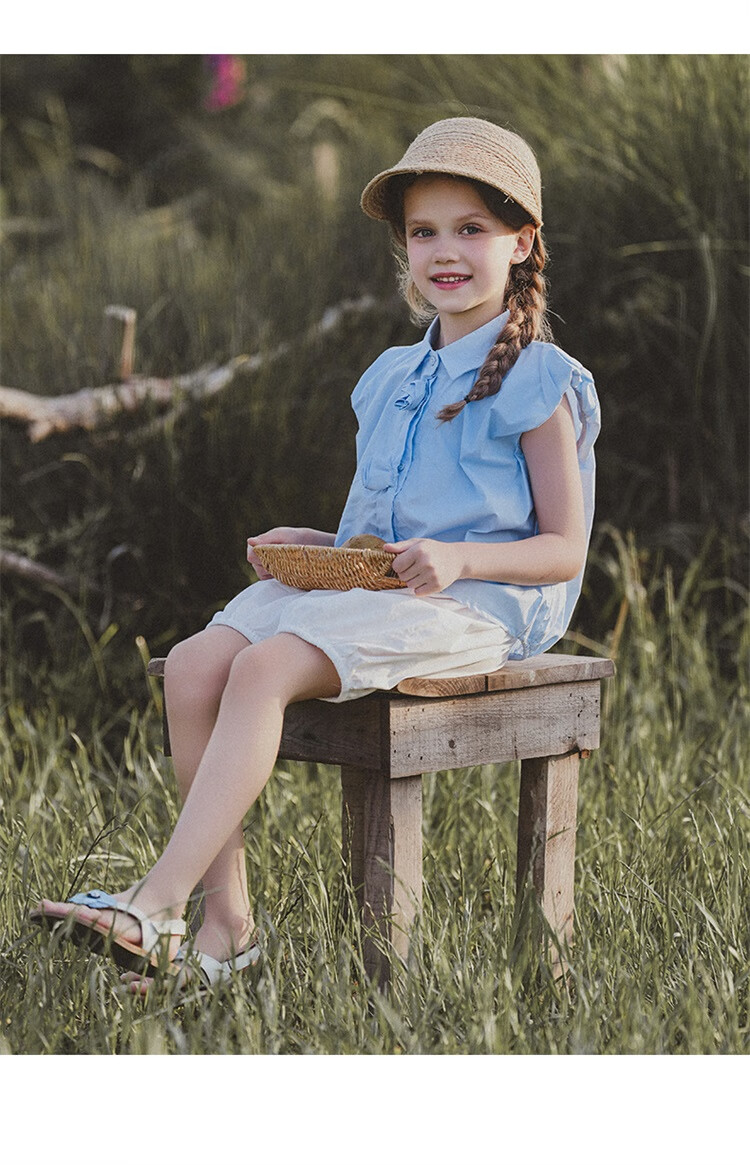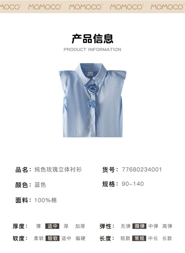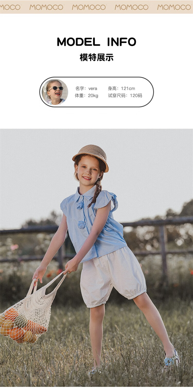 Mami Maca (MOMOCO) girls summer cotton shirt summer new breathable solid color rose three-dimensional shirt blue 110