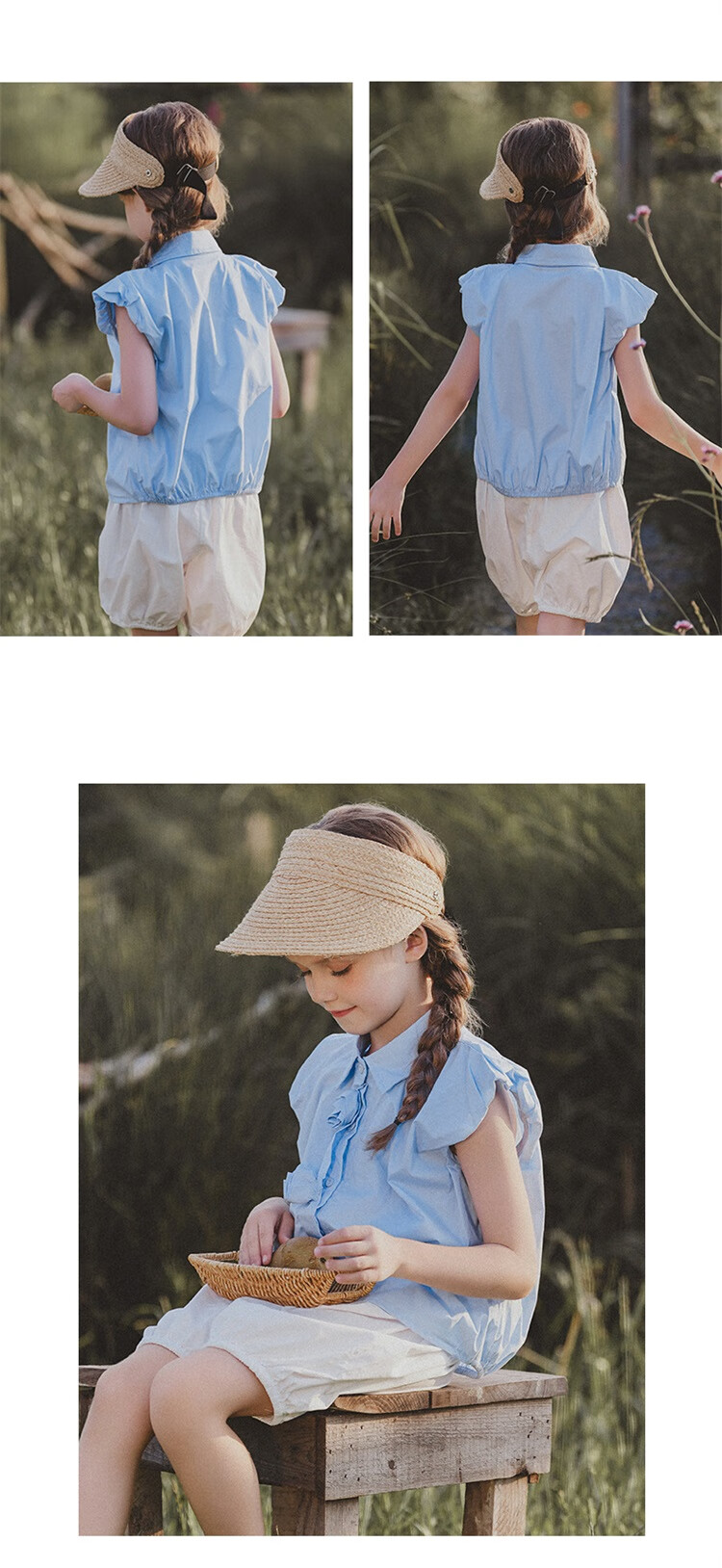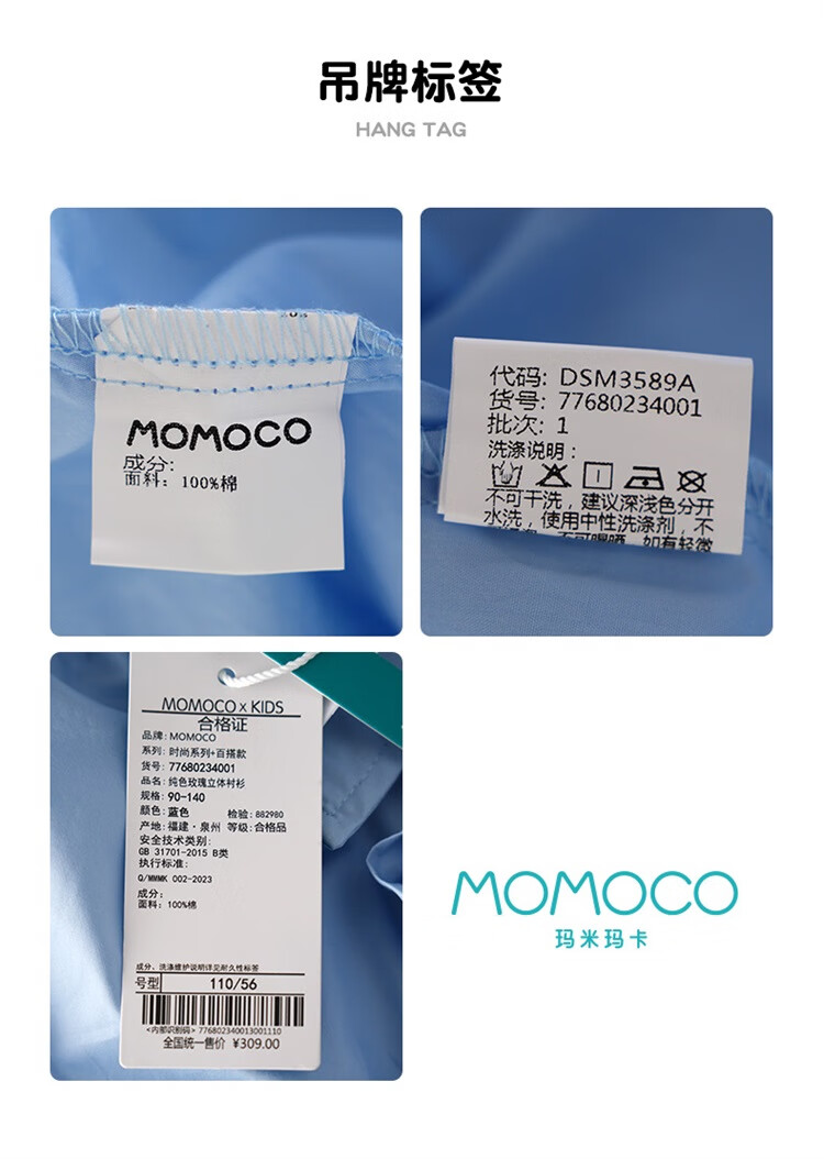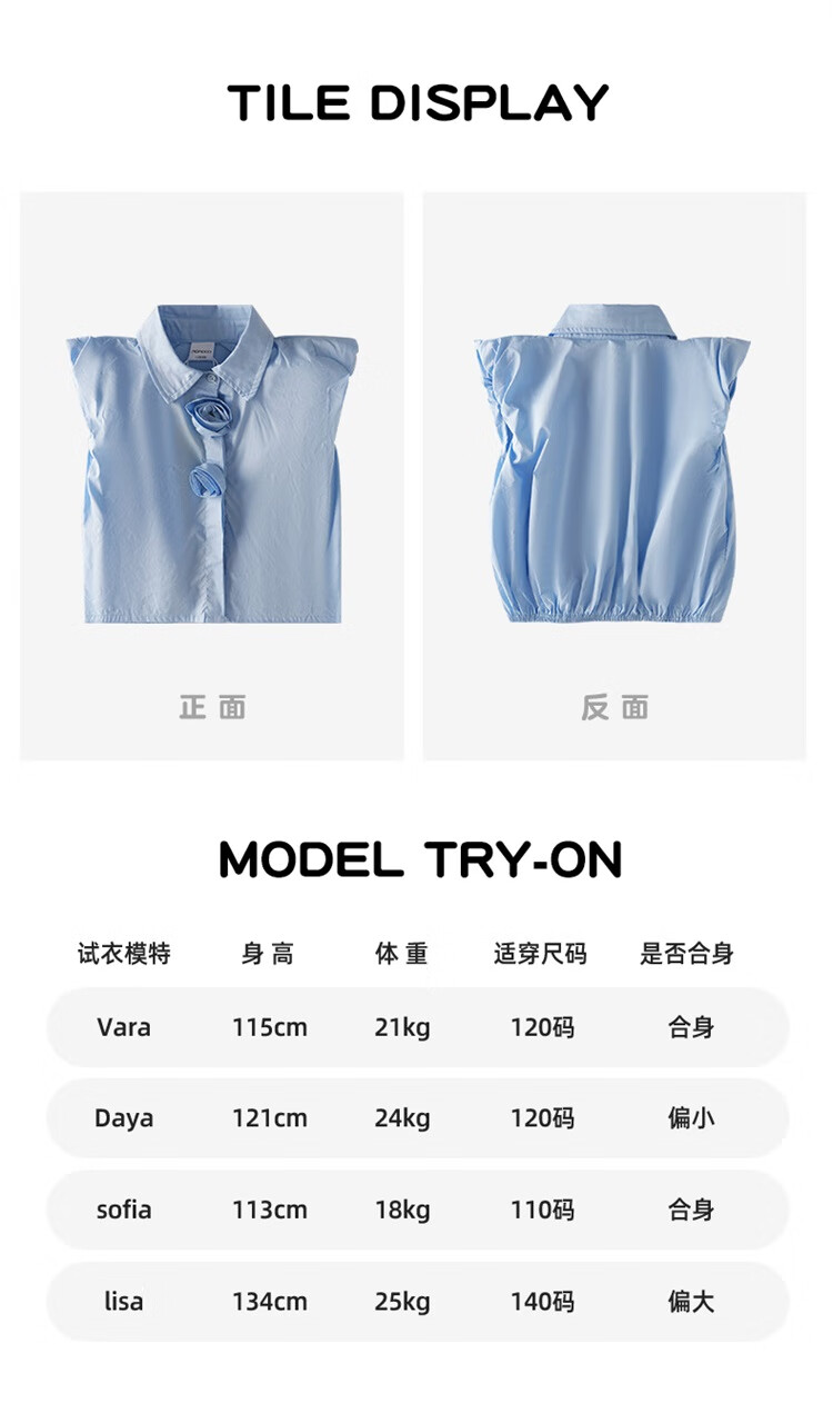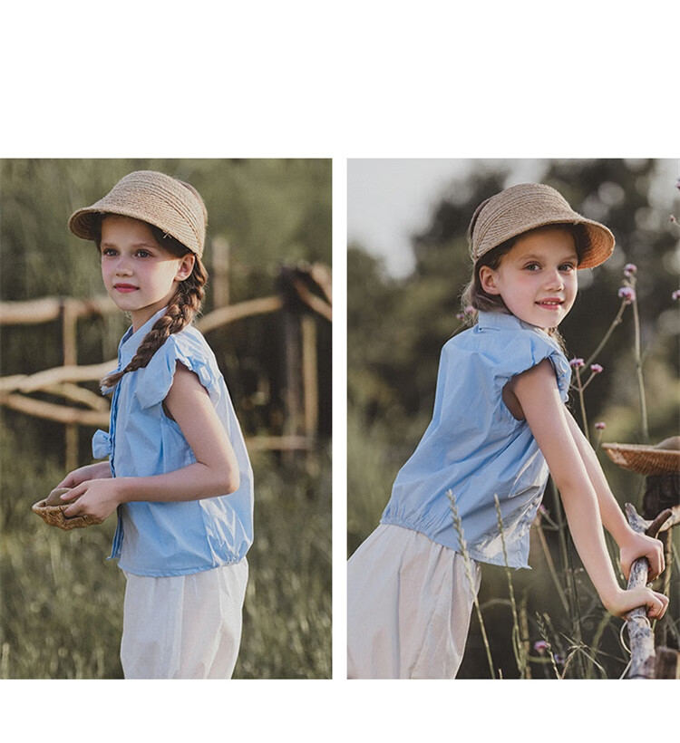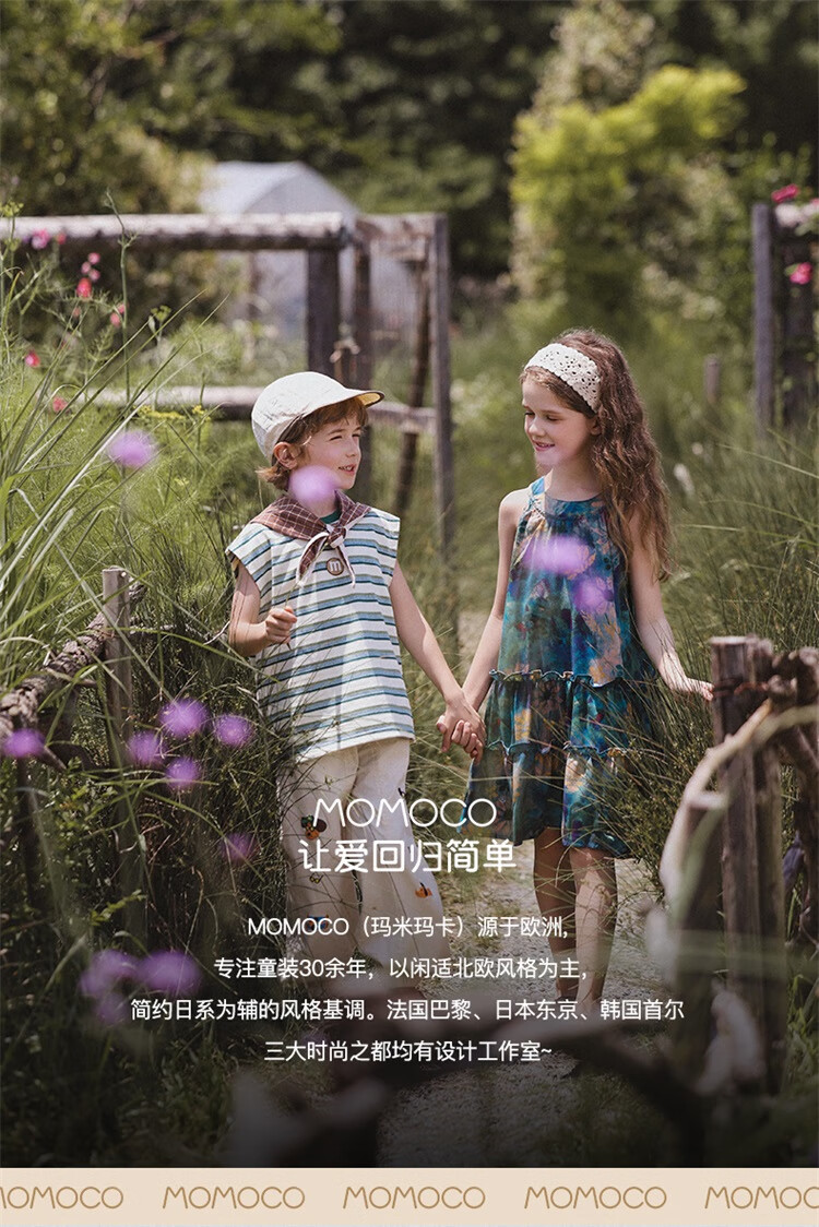 Mami Maca (MOMOCO) girls summer cotton shirt summer new breathable solid color rose three-dimensional shirt blue 110