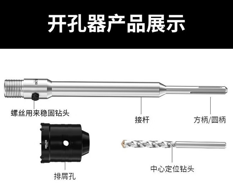 Diaohuang turns the head to drill holes through the wall. The wall hole drill drill bit air-conditioning electric hammer concrete impact drill brick wall in seconds to penetrate the reinforced concrete post 330mm long square handle set 30mm (six-point pipe)