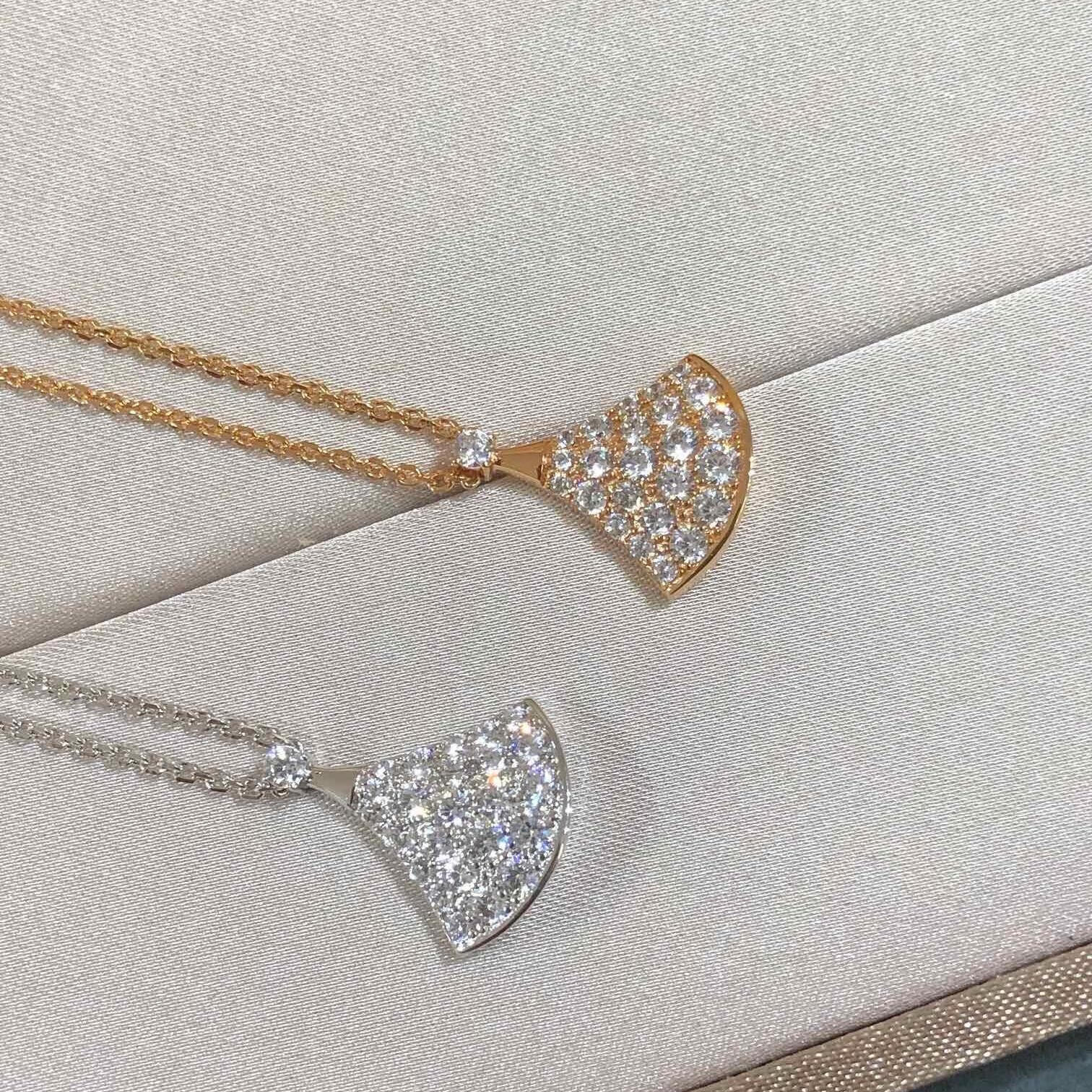 Chuansen light luxury 18k gold full diamond small fan necklace for women with diamond diva fan pendant white gold rose gold clavicle chain 18K gold rose gold