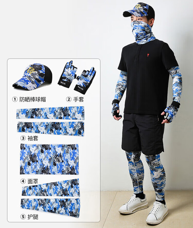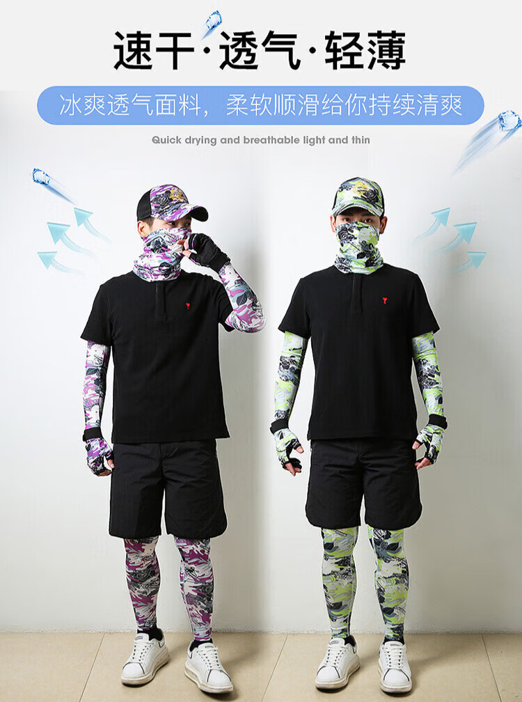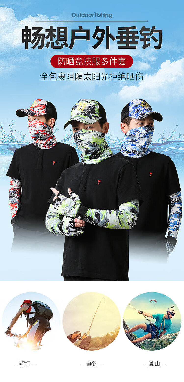 He Jiagong fishing sun protection four-piece set, sun protection hat three-piece set, ice silk sleeves, protective mask, Luya men's summer equipment, ice silk green four-piece set