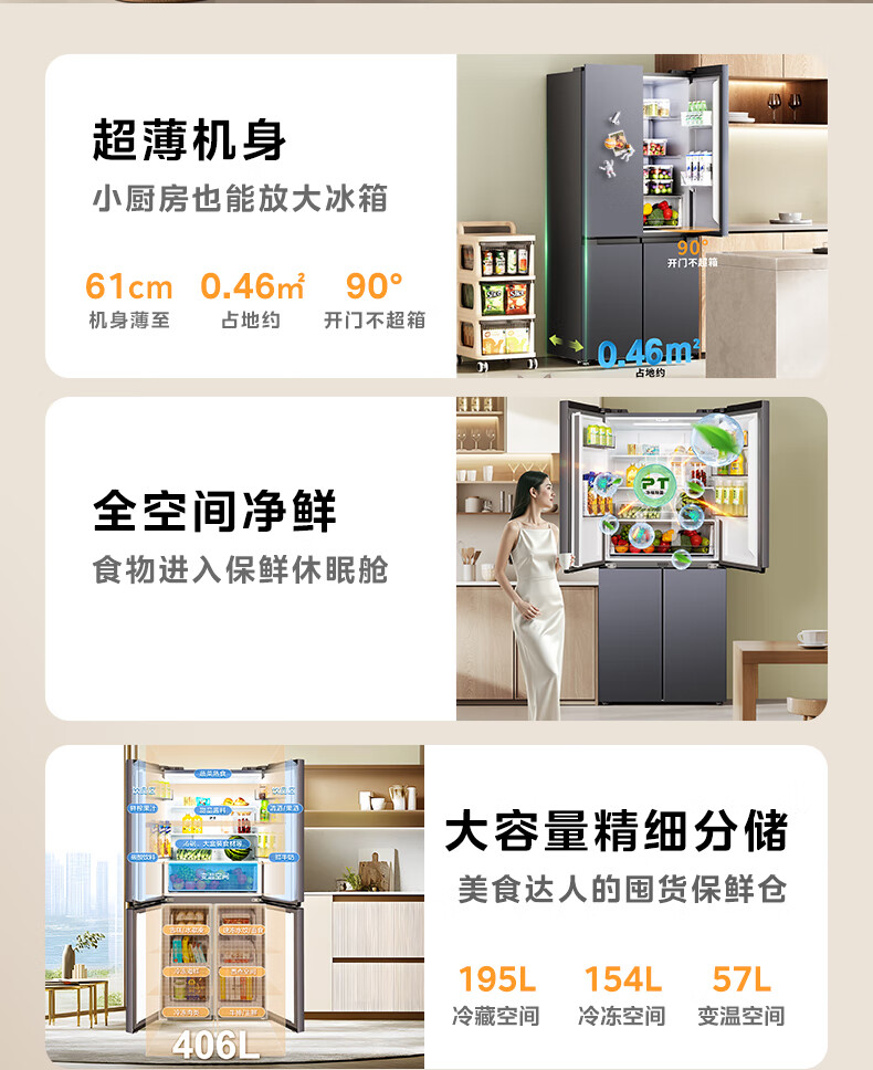 Hualing Refrigerator Midea produces 426 cross-door double-door four-door ultra-thin first-class energy efficiency dual-frequency air-cooled frost-free refrigerator HR-426WSP HR-426WSP