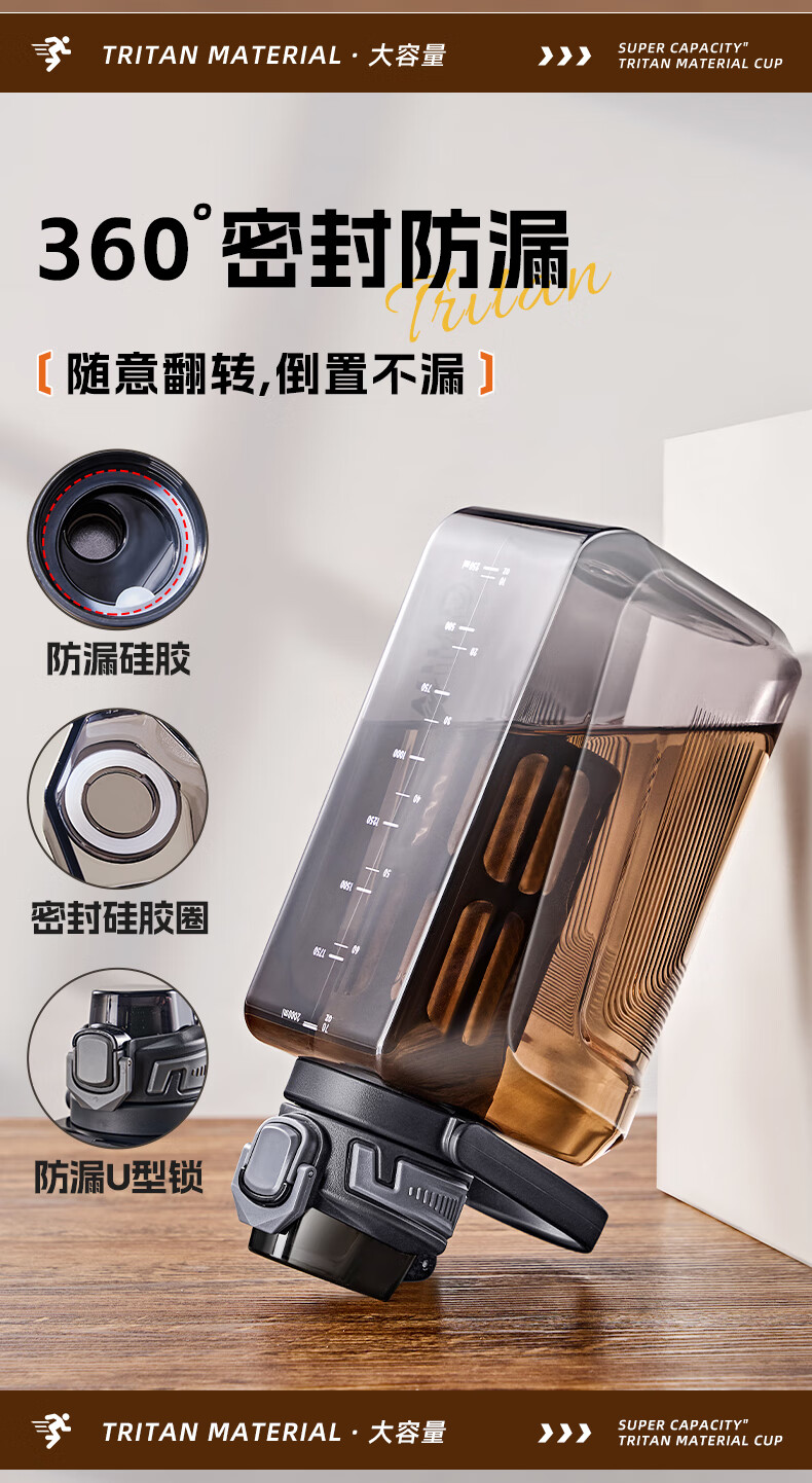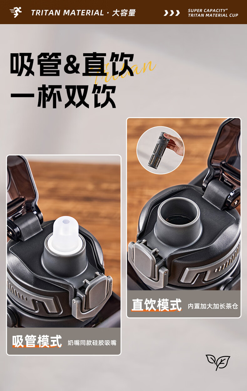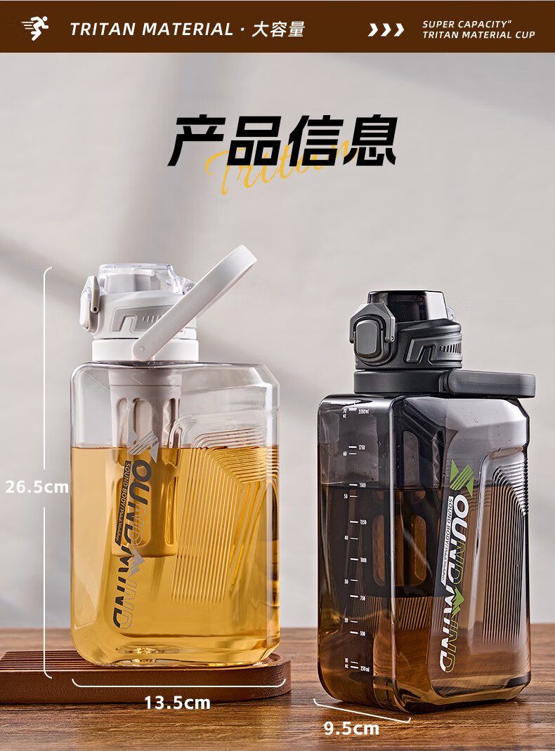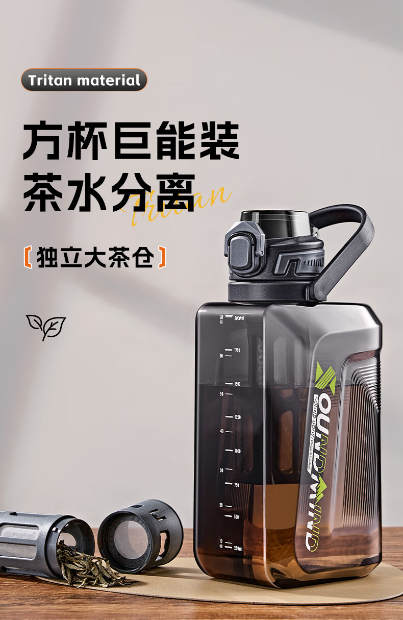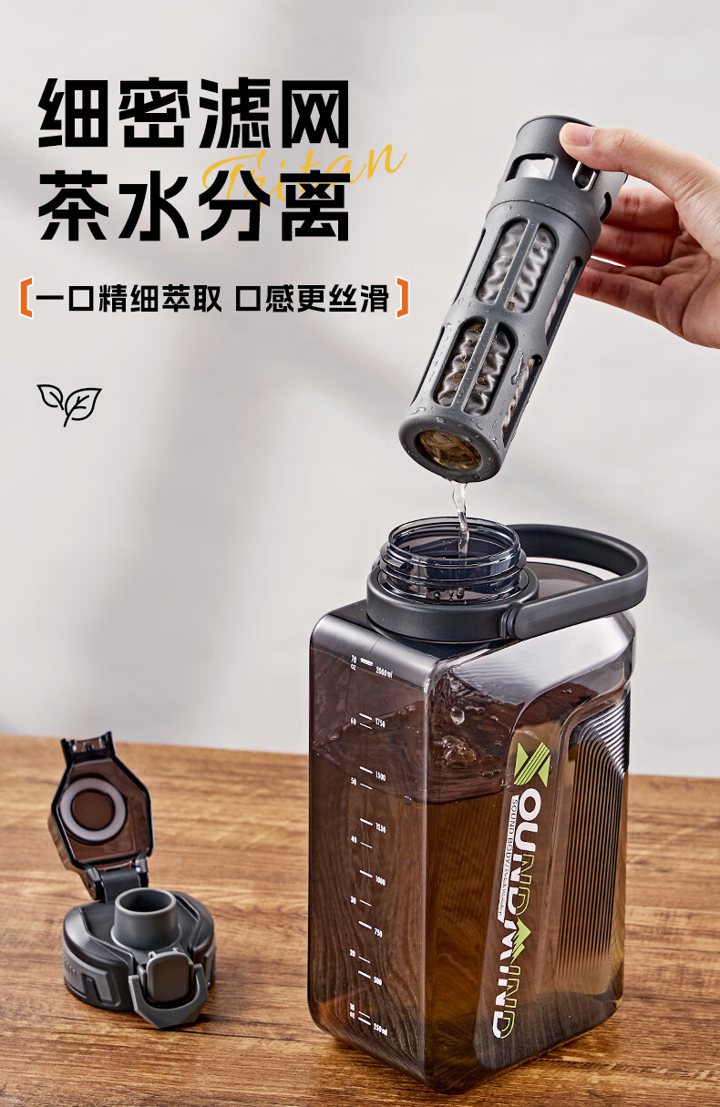 Private high-quality large-capacity water cup for men, tritan tea water separation, cold brew tea cup, cold brew sports kettle summer (extended tea bin + double drink + with scale) black 2100ml