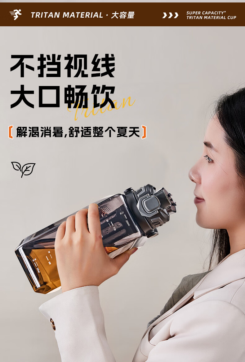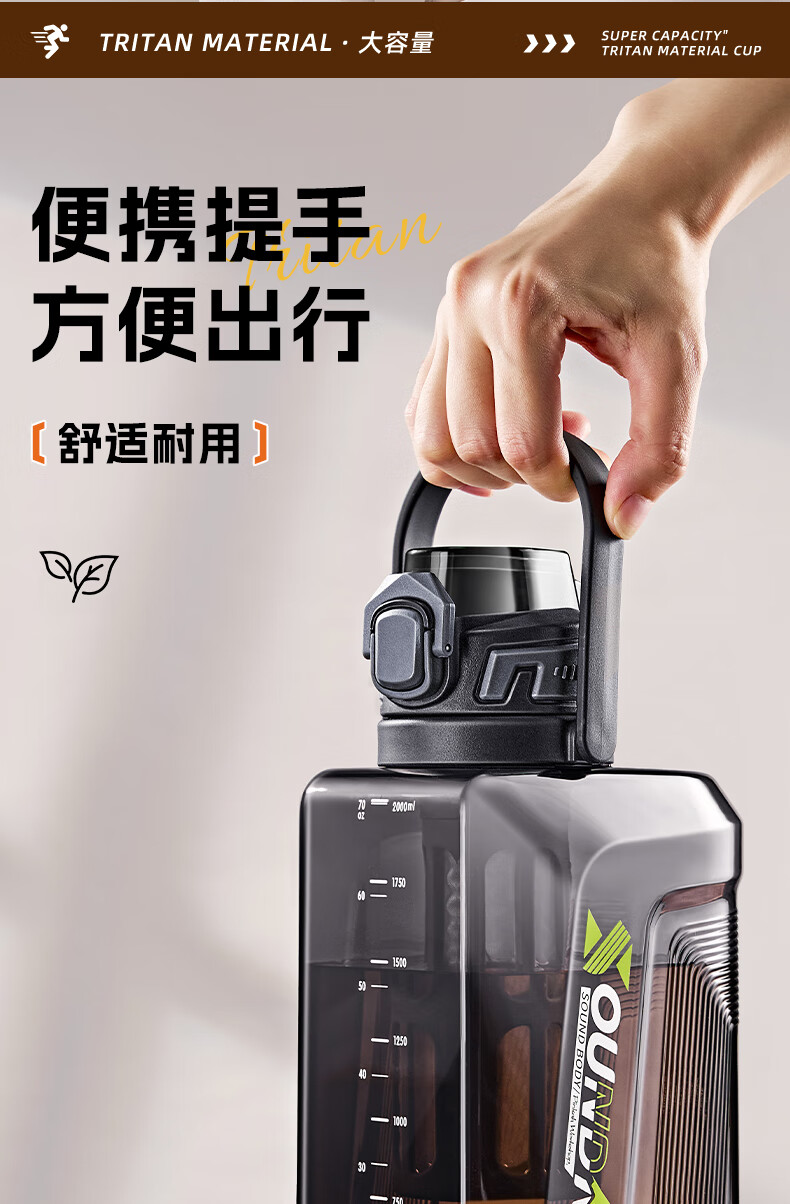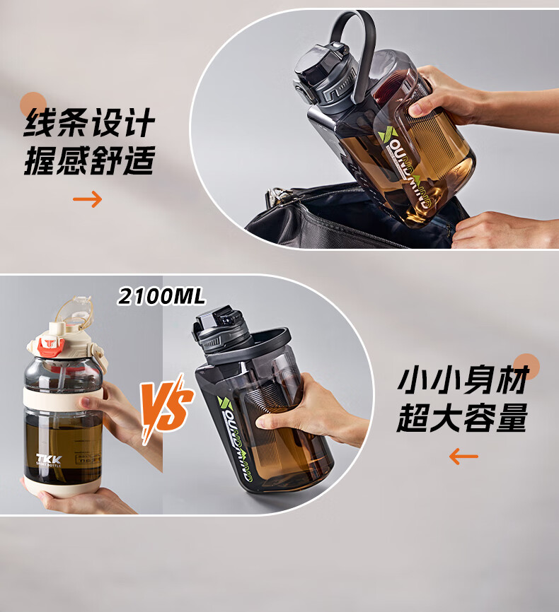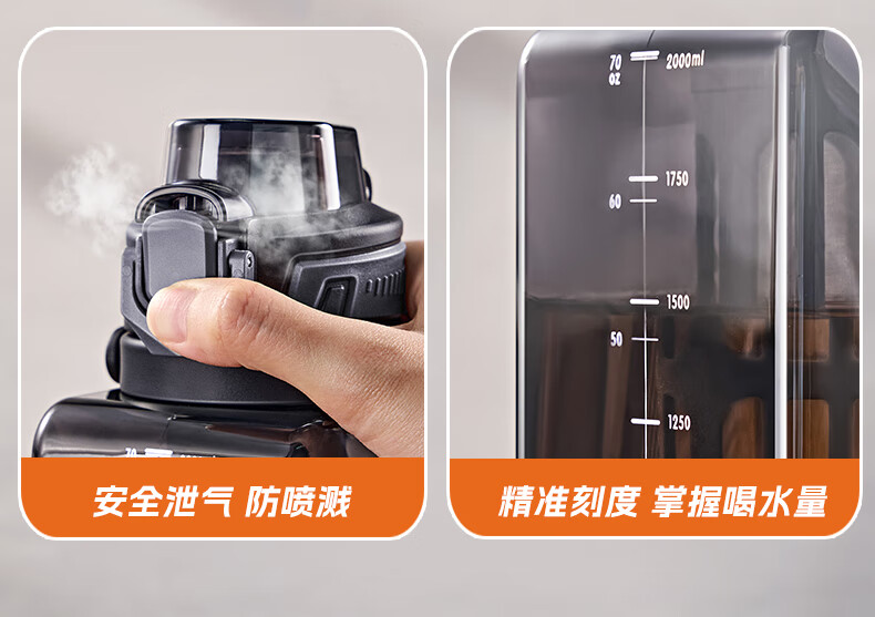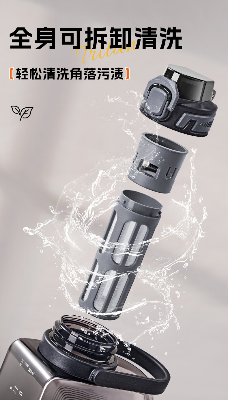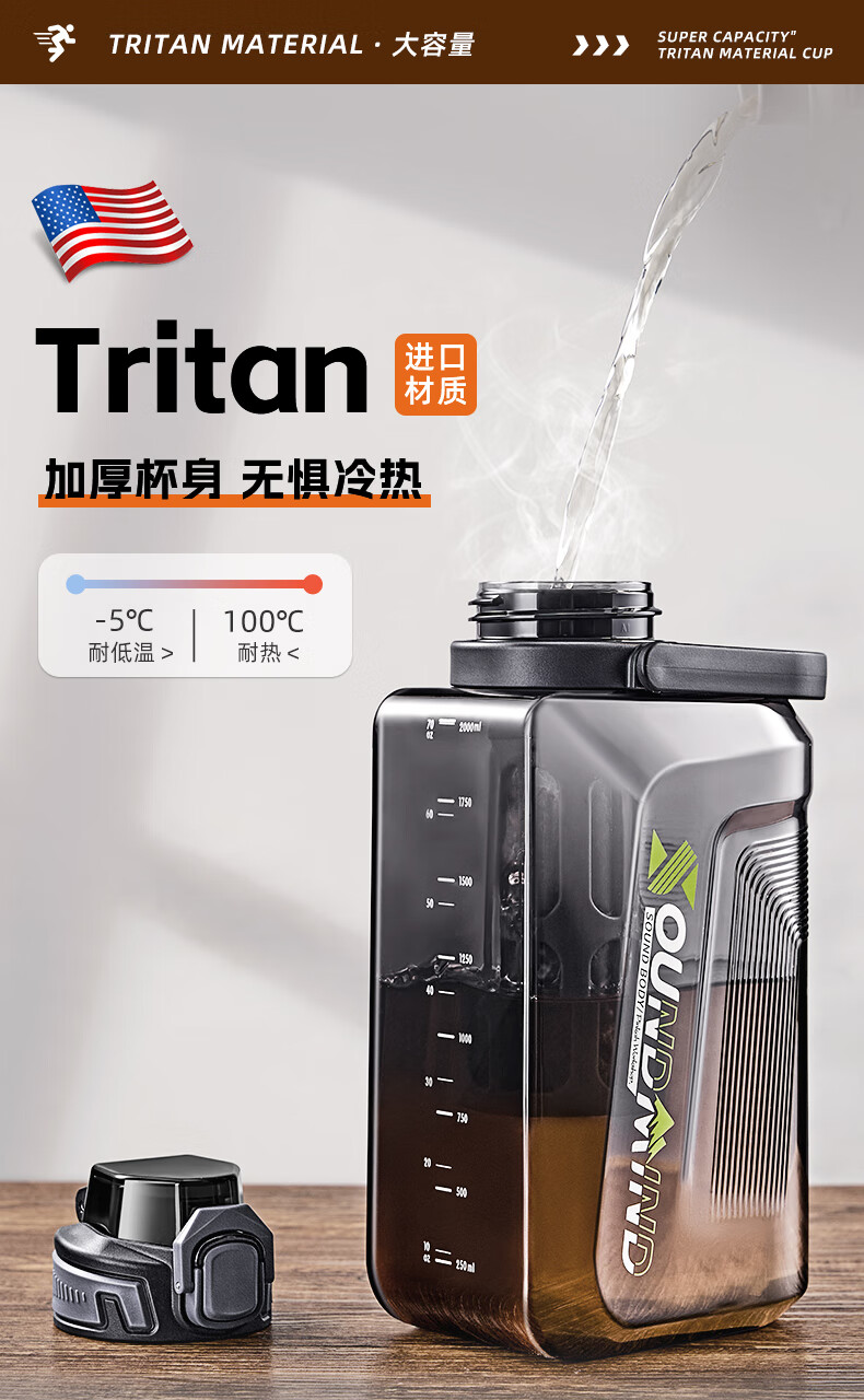 Private high-quality large-capacity water cup for men, tritan tea water separation, cold brew tea cup, cold brew sports kettle summer (extended tea bin + double drink + with scale) black 2100ml