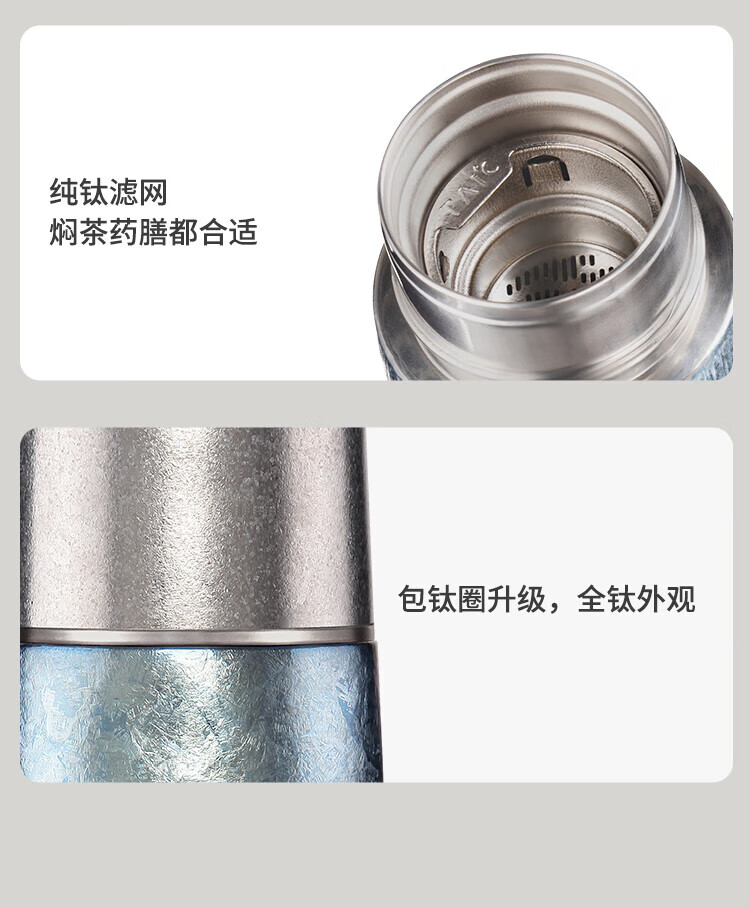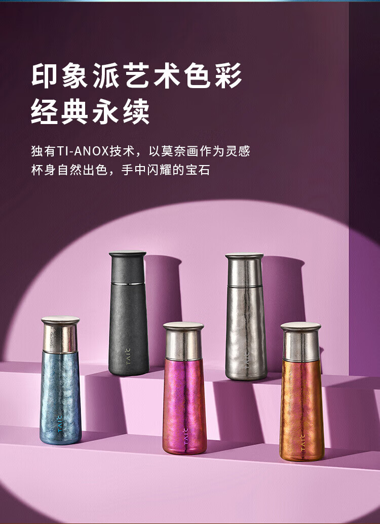 TAIC Taico titanium cup pure titanium thermos cup PRO large capacity thermal insulation and cold water cup titanium tea cup business gift box Dream Purple 420ml with filter (new style)