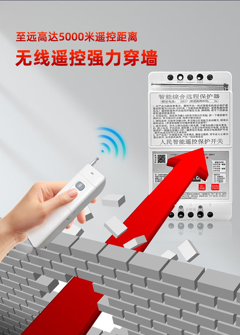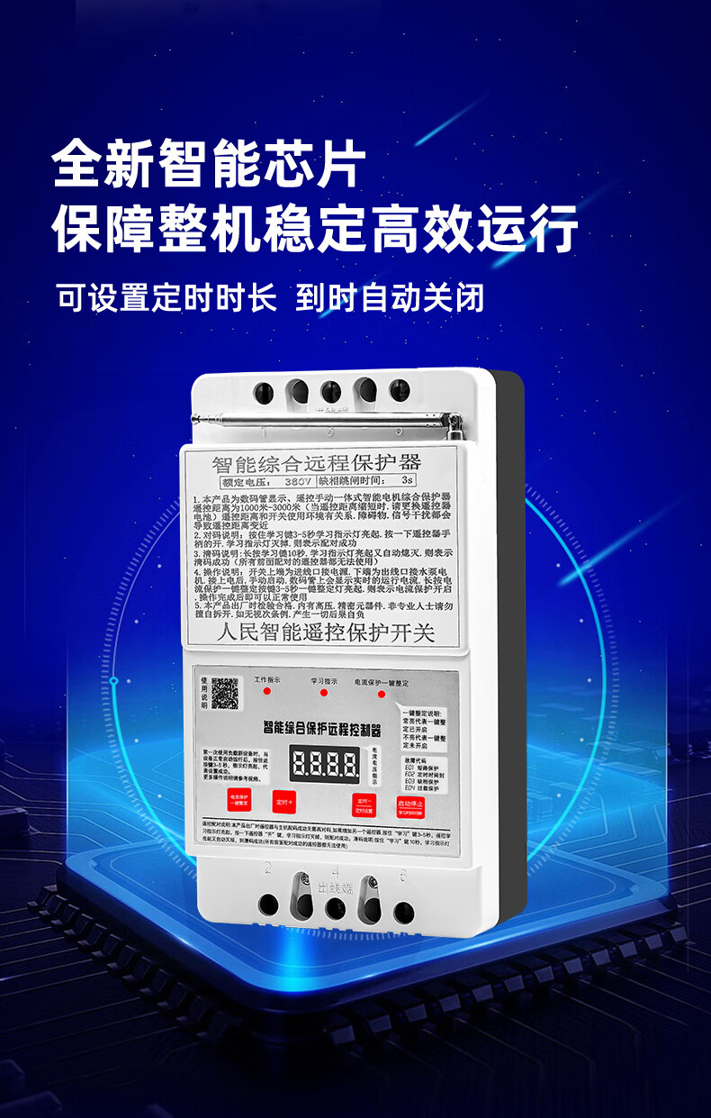 Pumping remote control three-phase motor remote control switch phase loss and leakage phase protector 380v deep well pump pouring ground lightning protection digital display 380v single remote control 5 kilometers 30kw