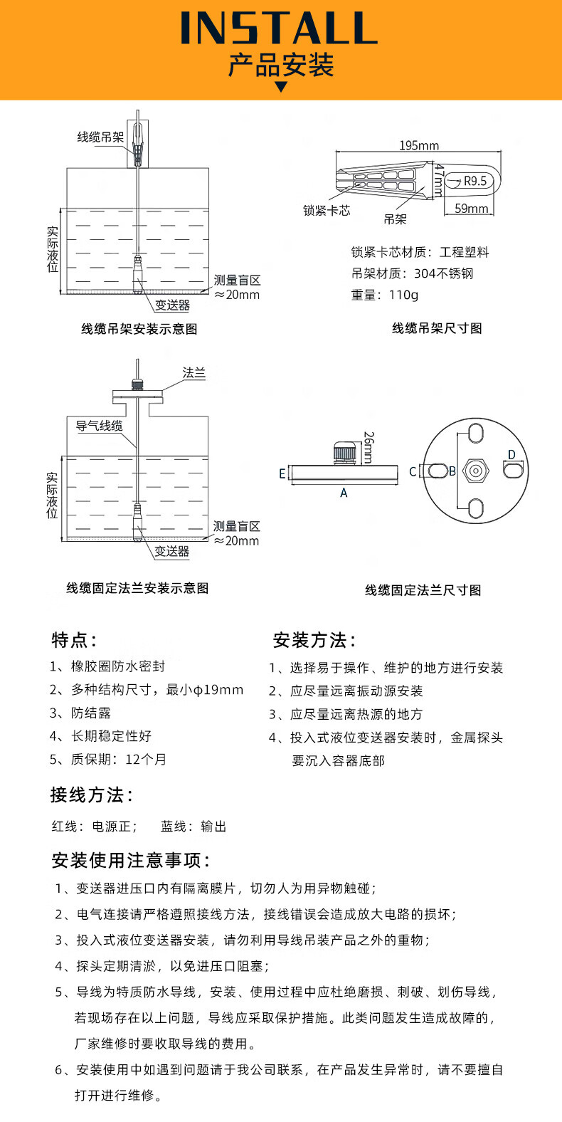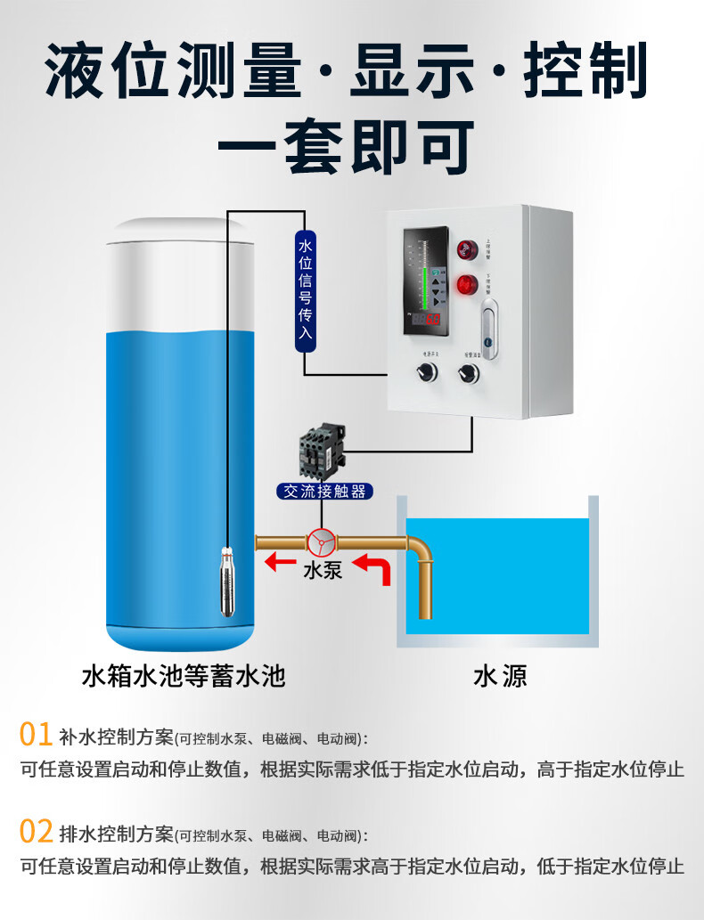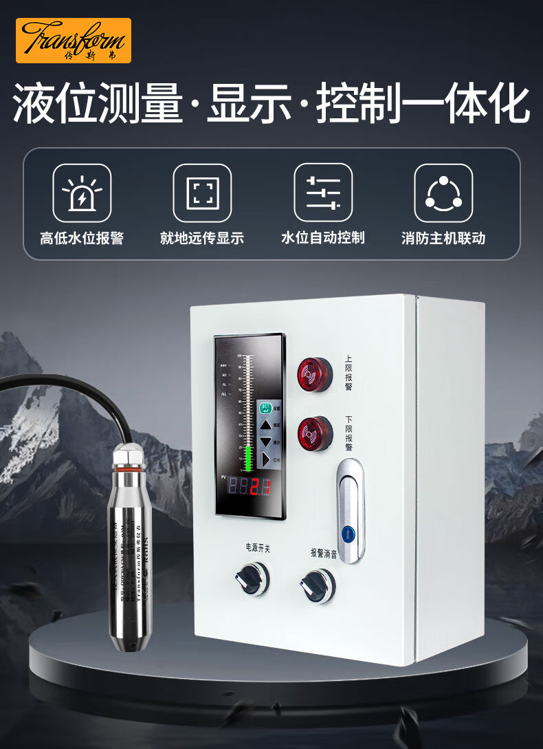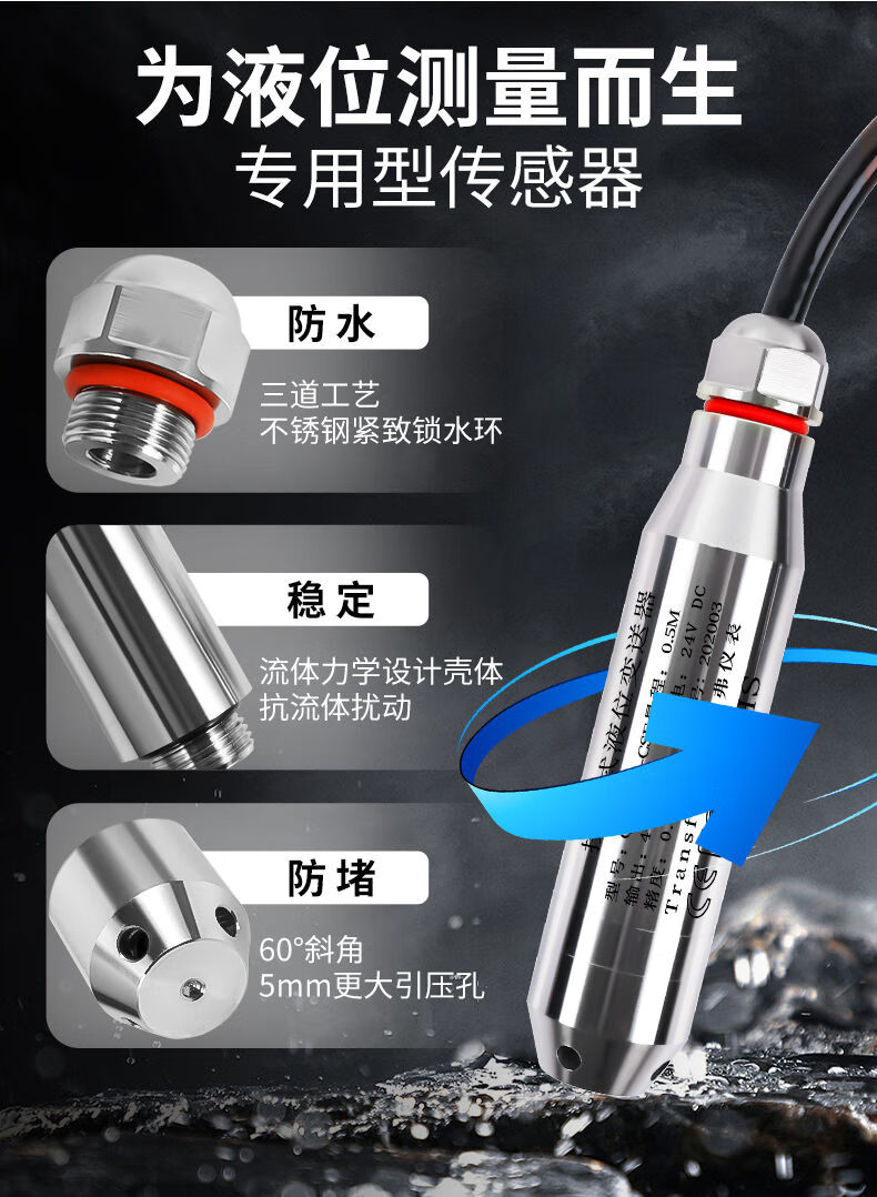 Liquid level water level controller fire water tank pool alarm display wireless level gauge sensor transmitter 19mm fine sensor (default 1 meter)
