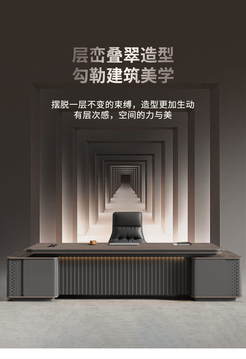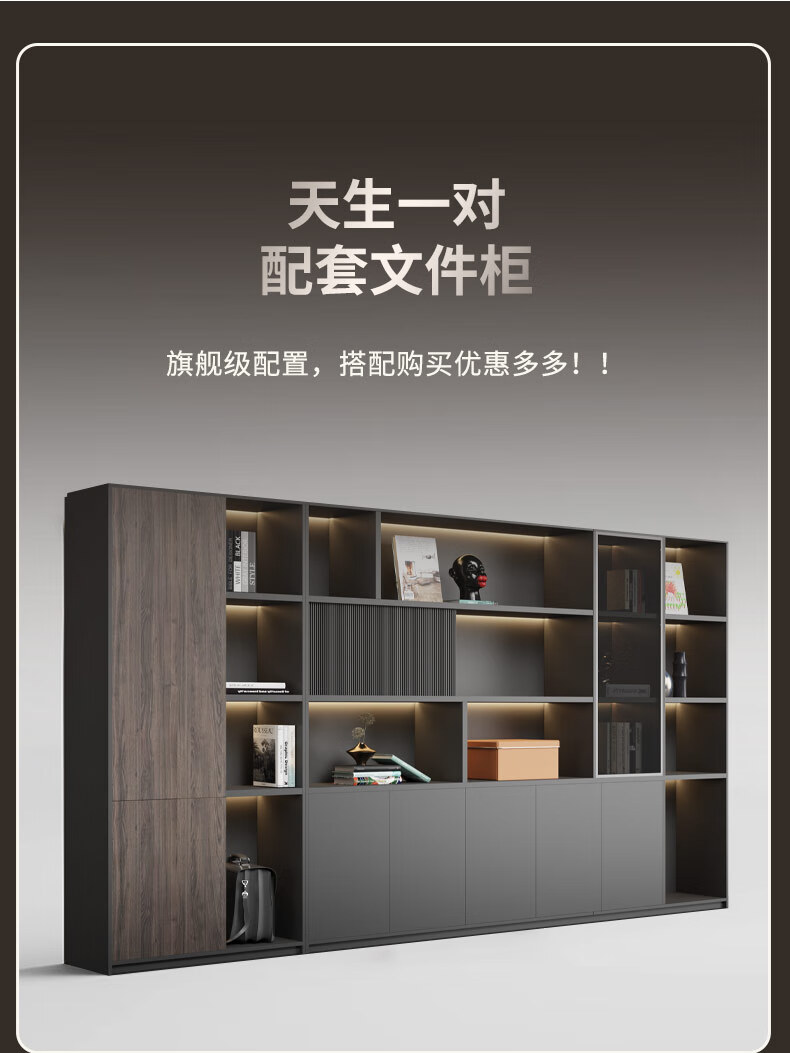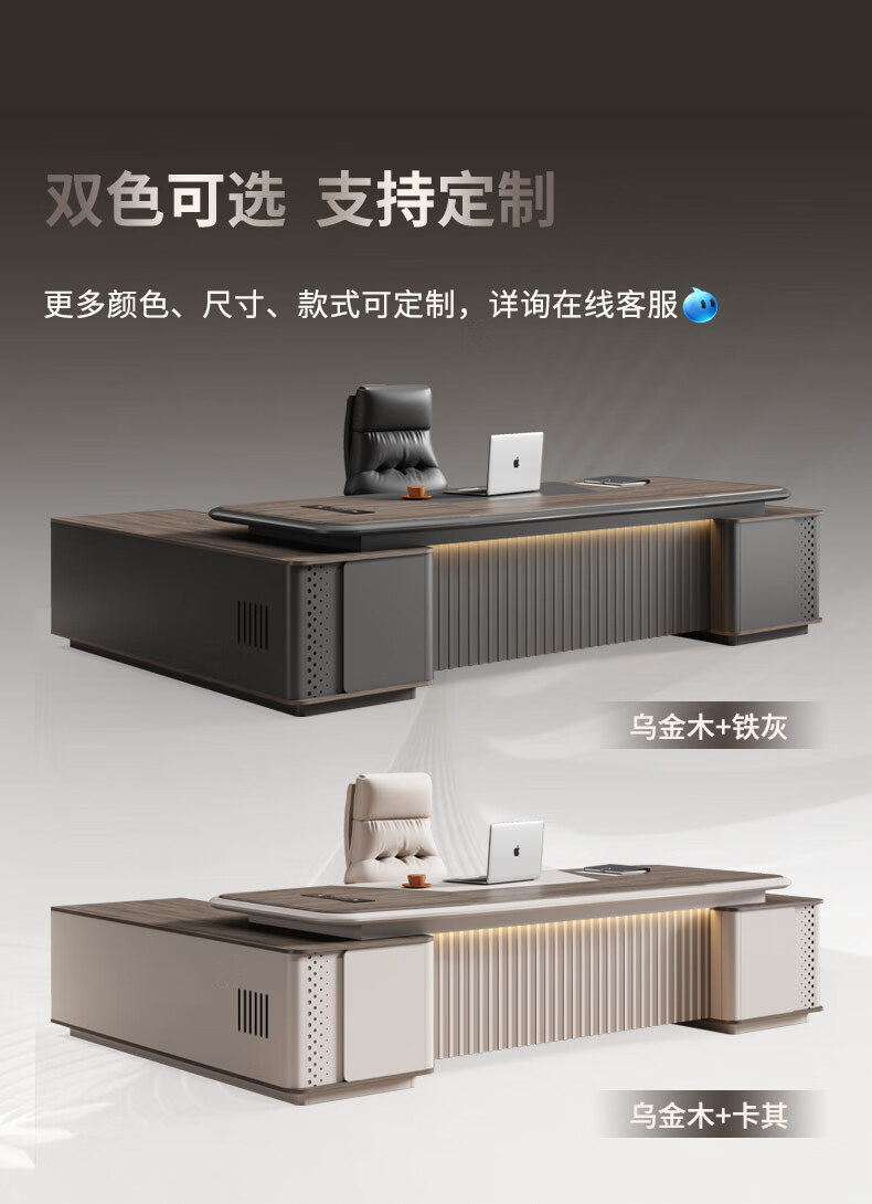 Boss office desk and chair combination, light luxury and high-end sense, young president executive desk, simple and modern executive 2.2-meter luxury double cabinet boss table (including light strip)