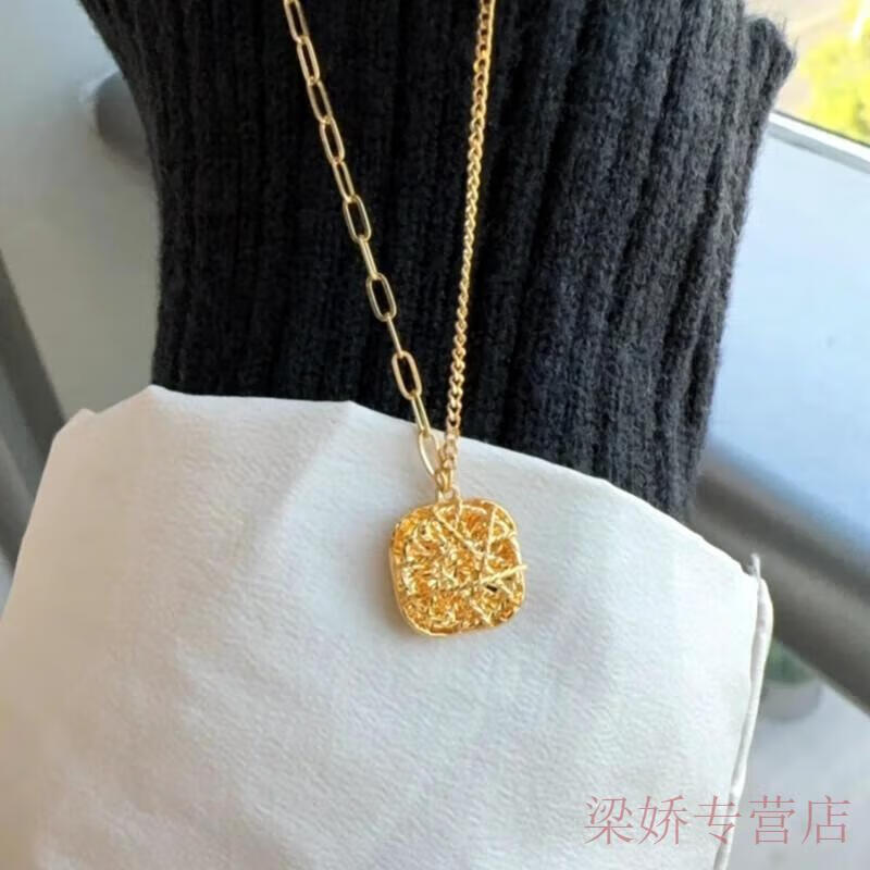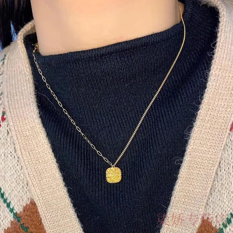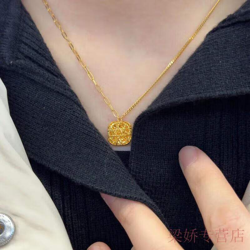 DOMEN Old Phoenix Gold 9999 pure gold brushed small sugar cube pendant gold flash necklace pure gold fashion clavicle chain 0