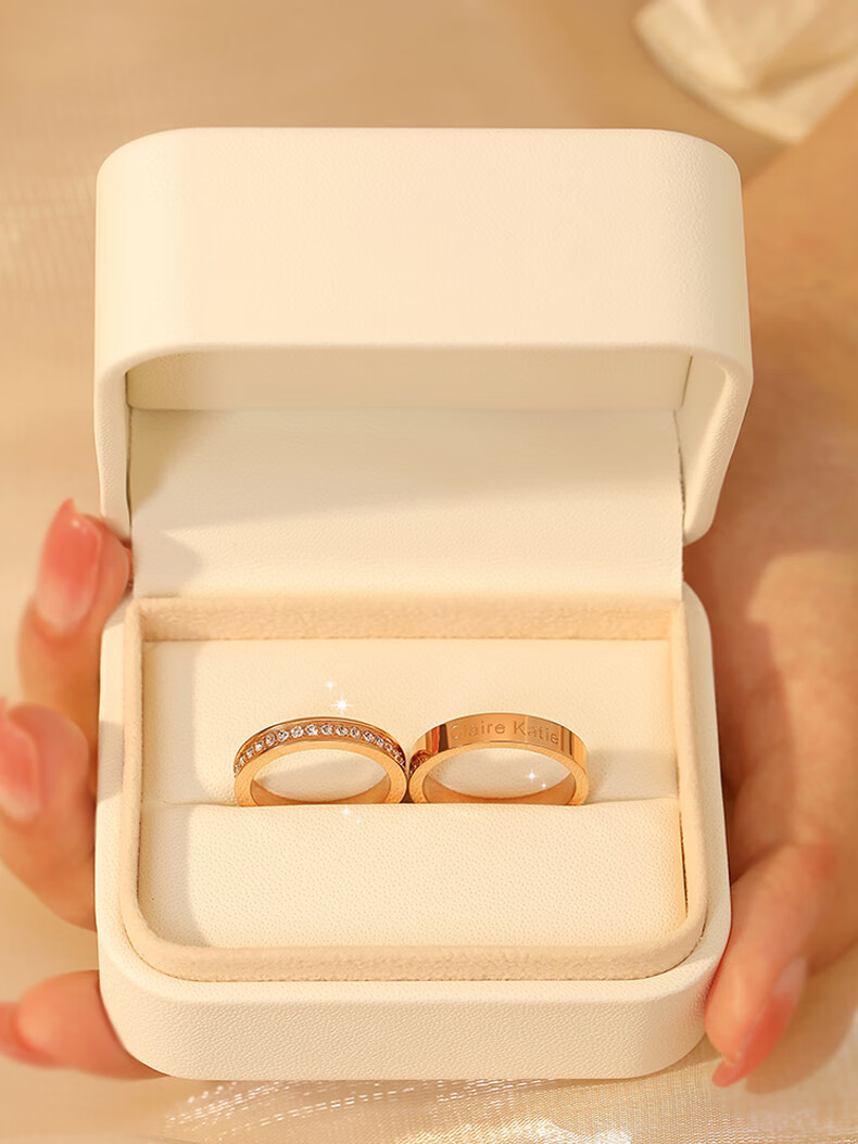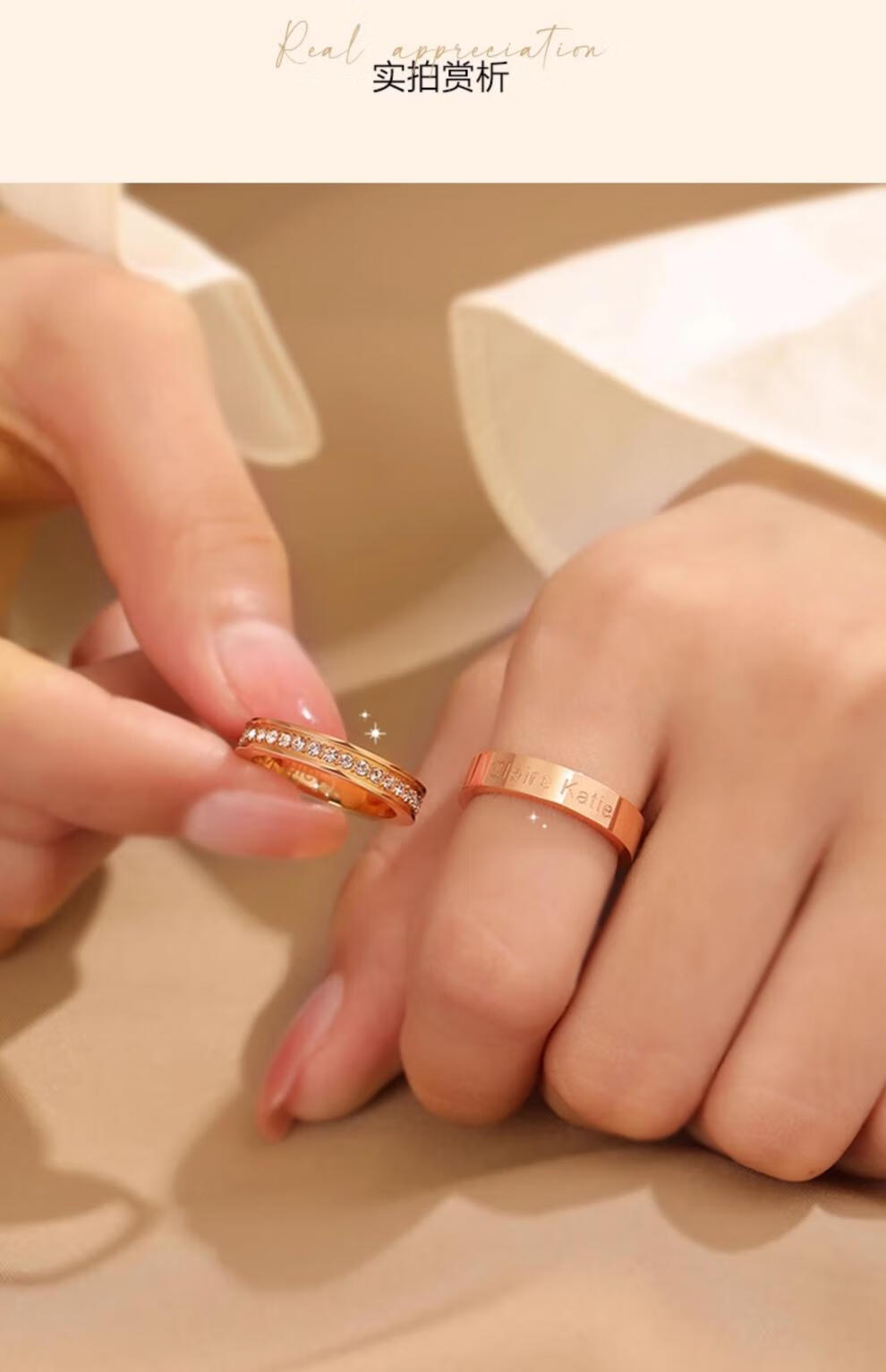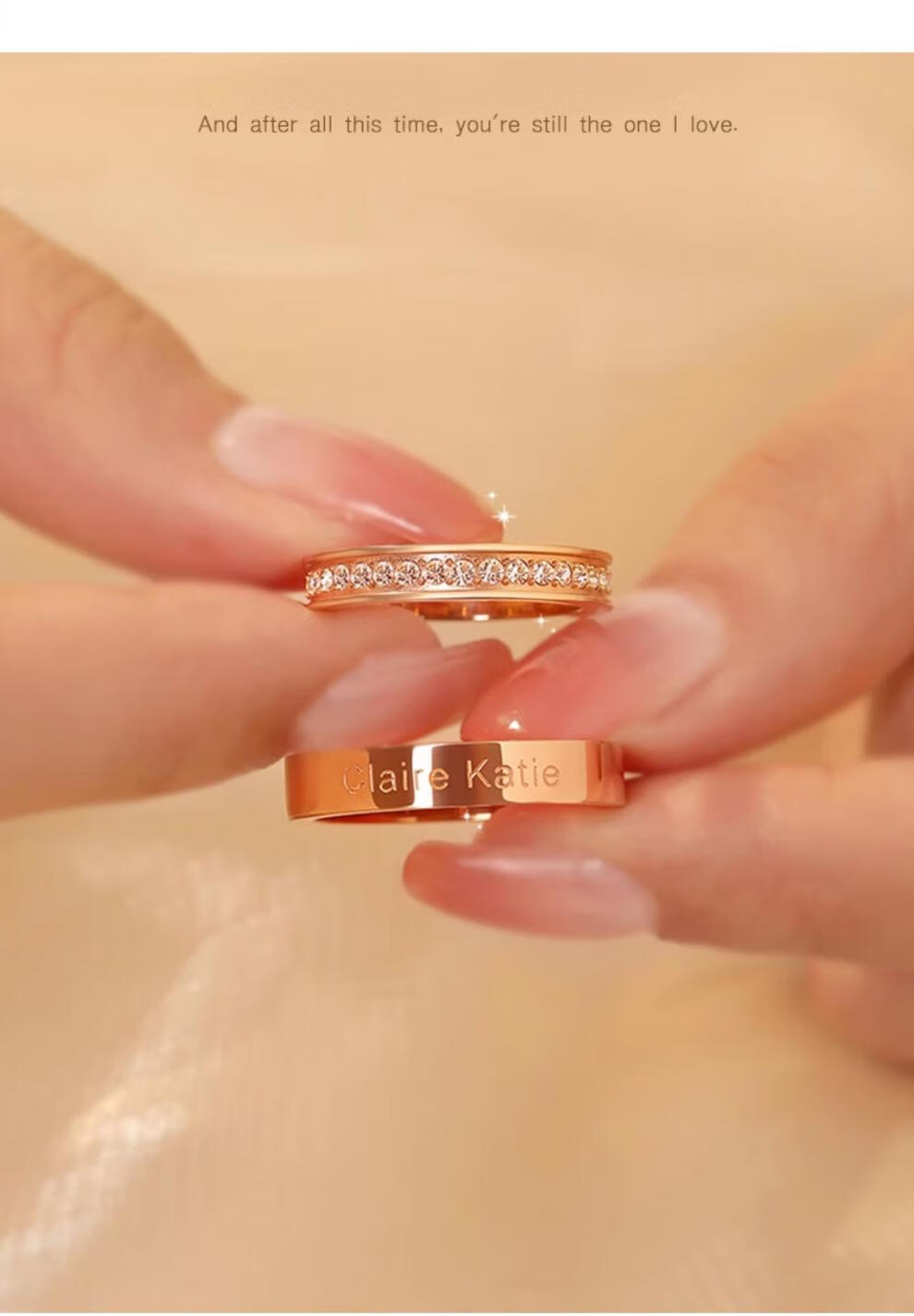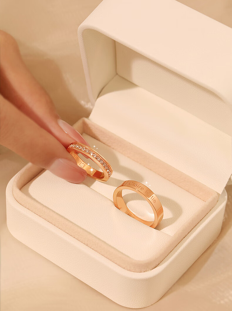Fat Donglai's same style gold ring covered with silver, baby's breath & plain ring, couple's ring set, exquisite gift box, baby's breath rose gold + plain ring