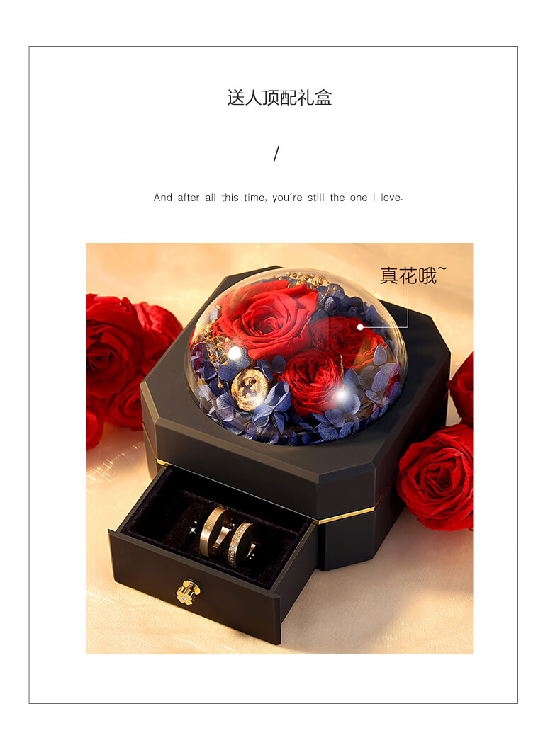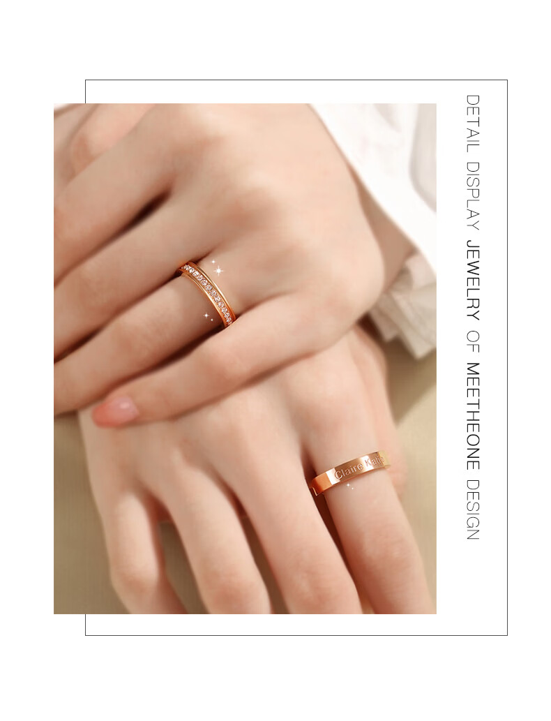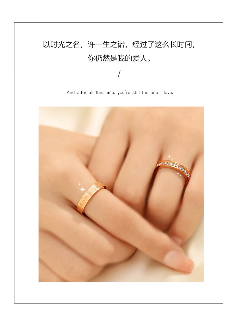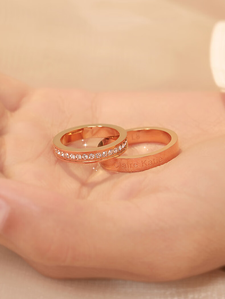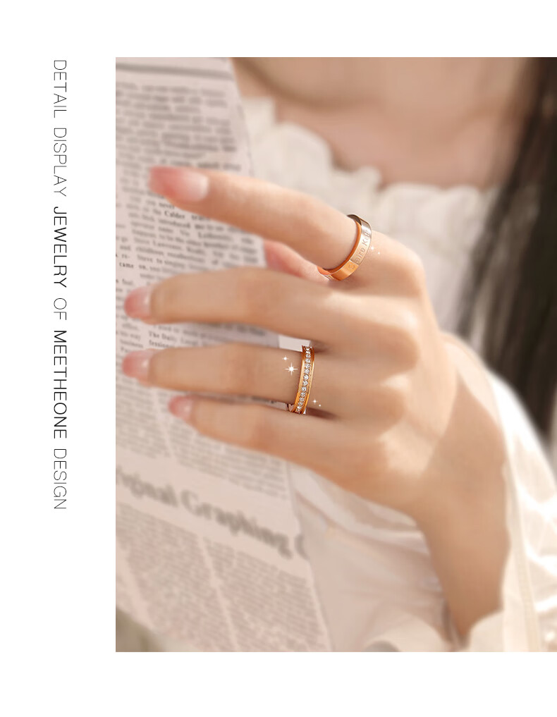 Fat Donglai's same style gold ring covered with silver, baby's breath & plain ring, couple's ring set, exquisite gift box, baby's breath rose gold + plain ring