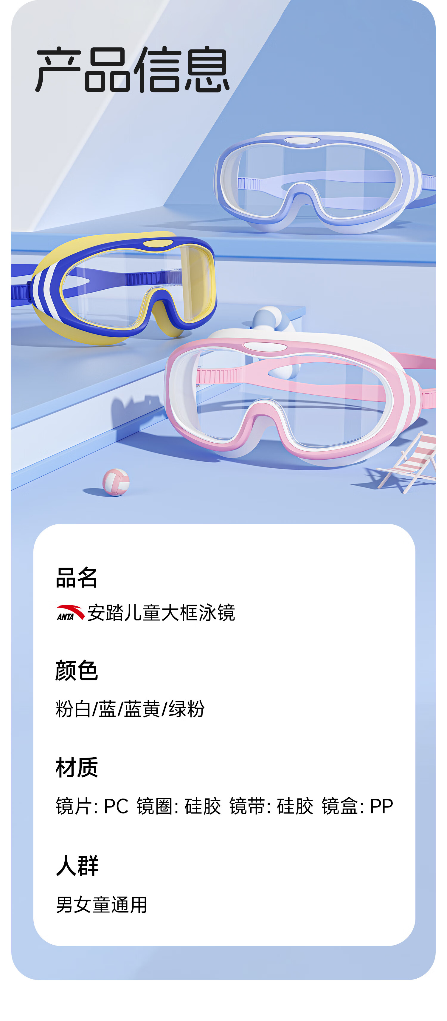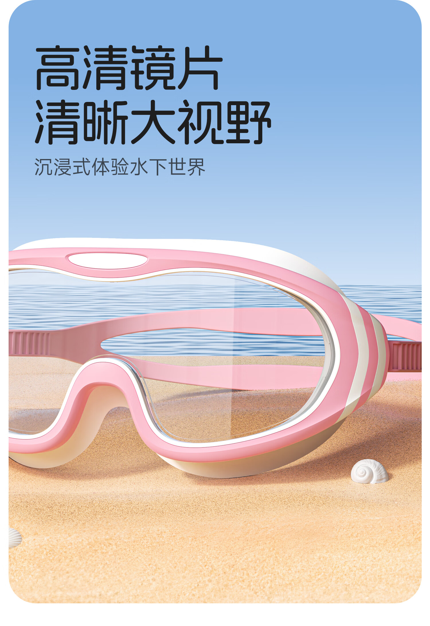 Anta children's large frame swimming goggles for boys and girls HD anti-fog and waterproof 3-6-12 years old baby swimming equipment pink and white large frame/HD/anti-fog 3-16 years old