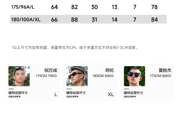 China (cm) 165 / 88-90 170 / 96-98 175 / 108-110 180 / 118-122 185 / 126-130