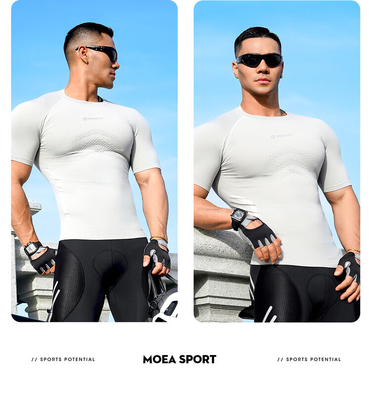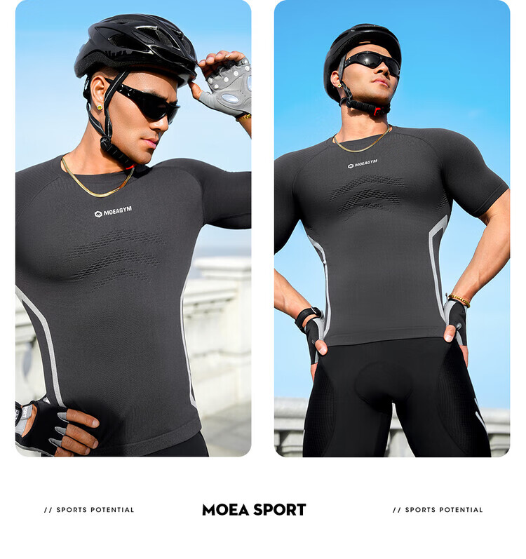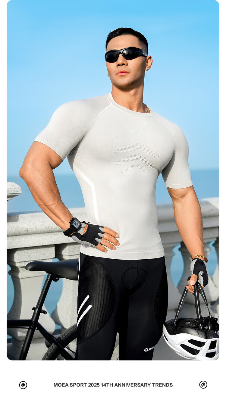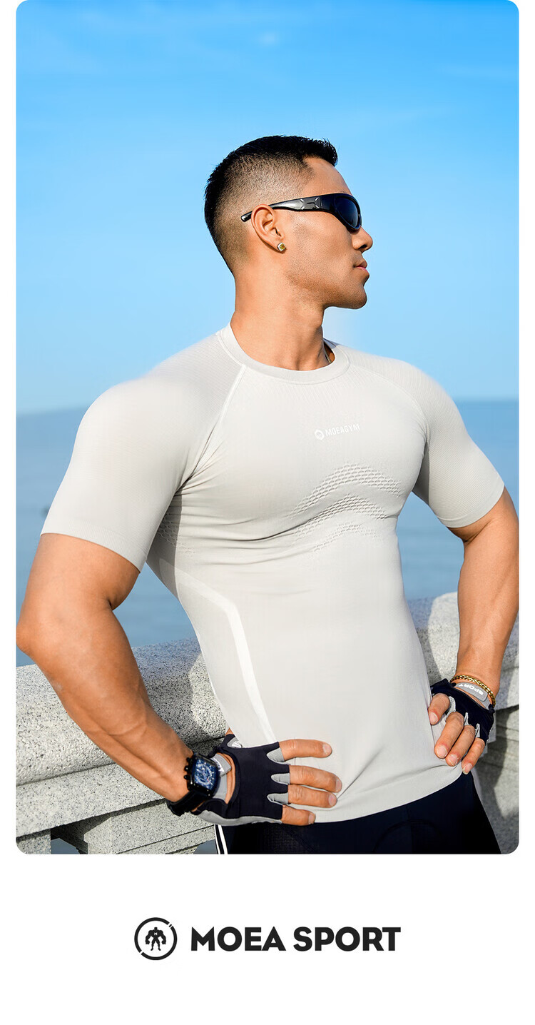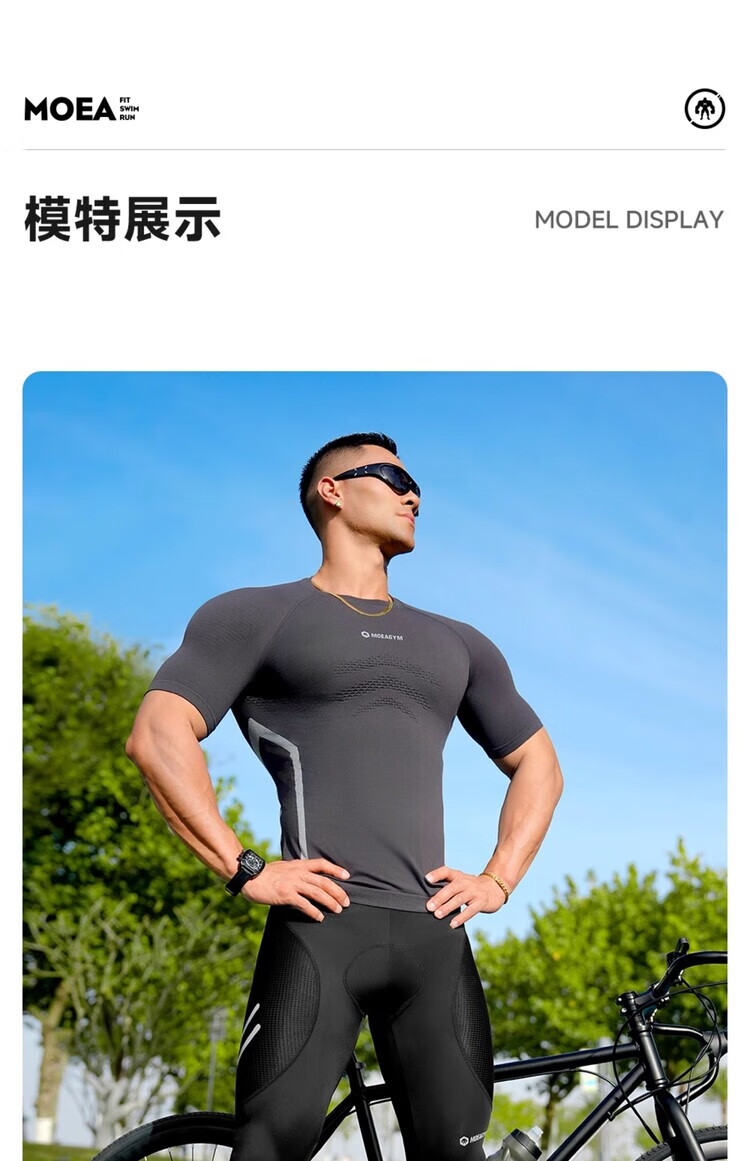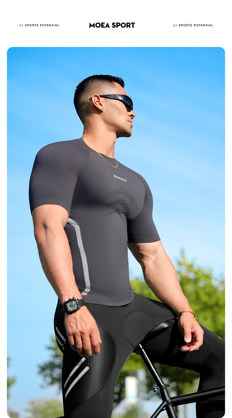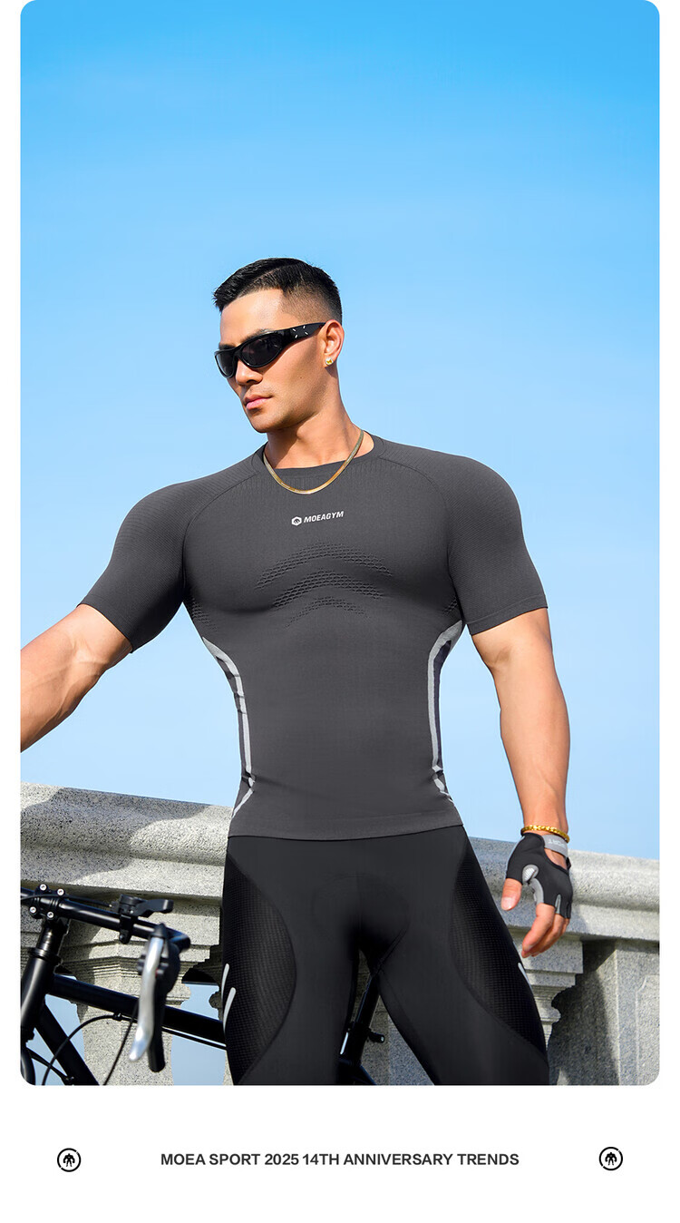 MOEA quick-drying fitness clothes for men 2025 summer sports short-sleeved running breathable tight T-shirt cycling clothes black L 175/96A/L tight fit