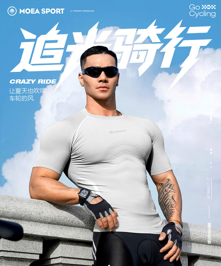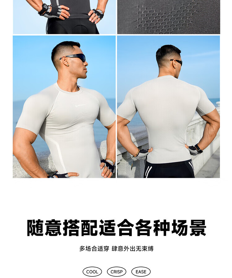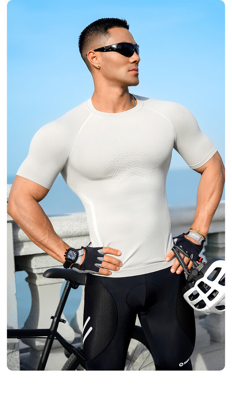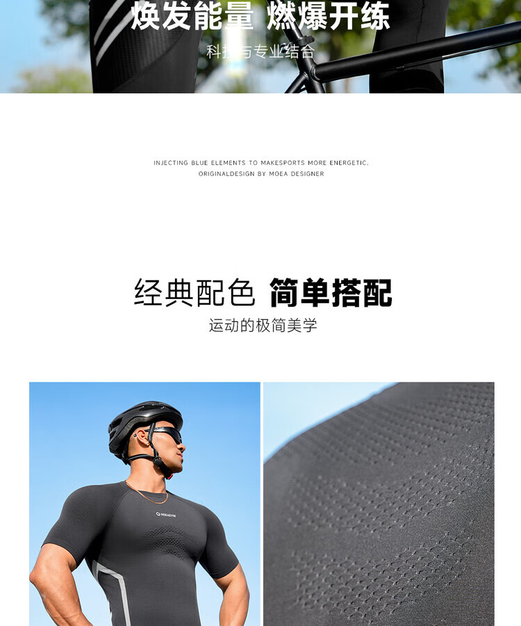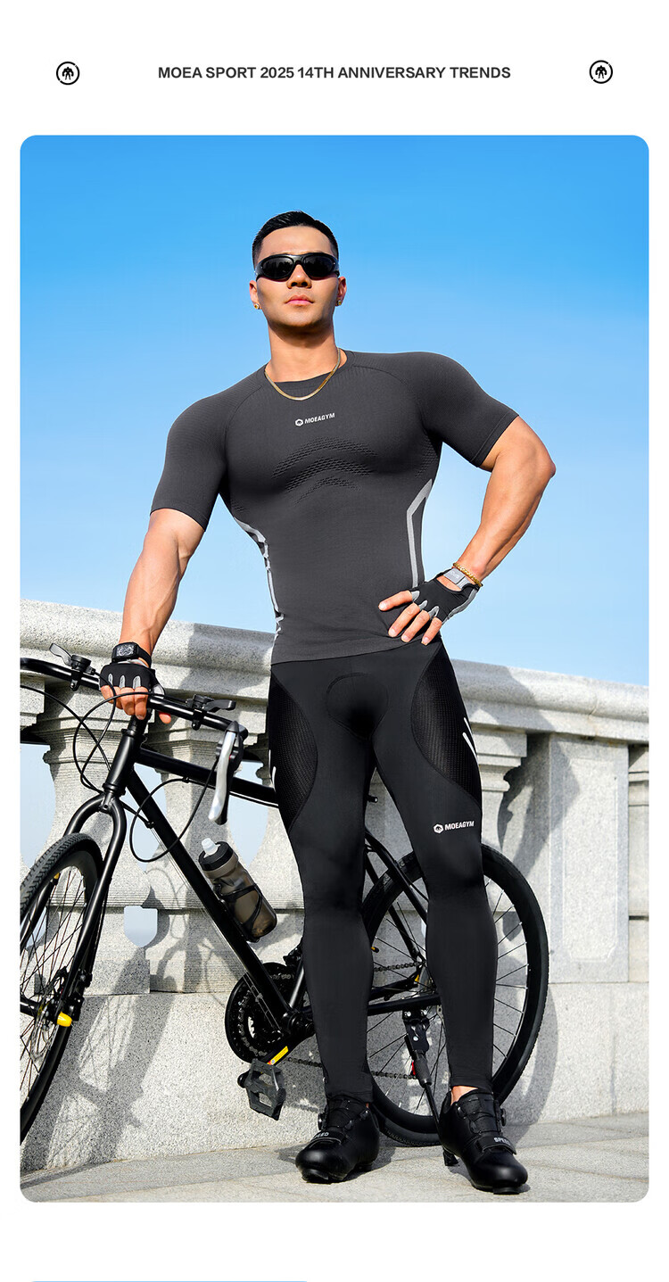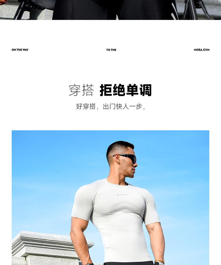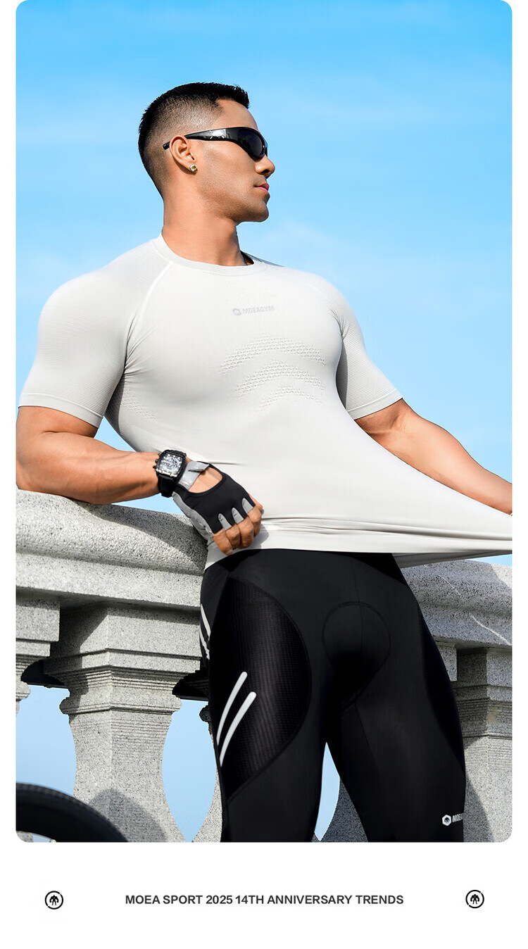 MOEA quick-drying fitness clothes for men 2025 summer sports short-sleeved running breathable tight T-shirt cycling clothes black L 175/96A/L tight fit