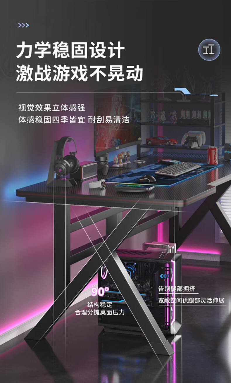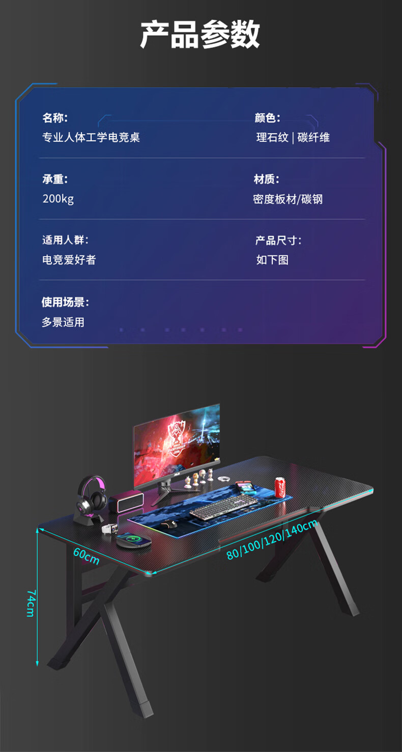 Computer desk desktop home e-sports game table office desk simple study desk simple white carbon fiber pattern single table-120*60