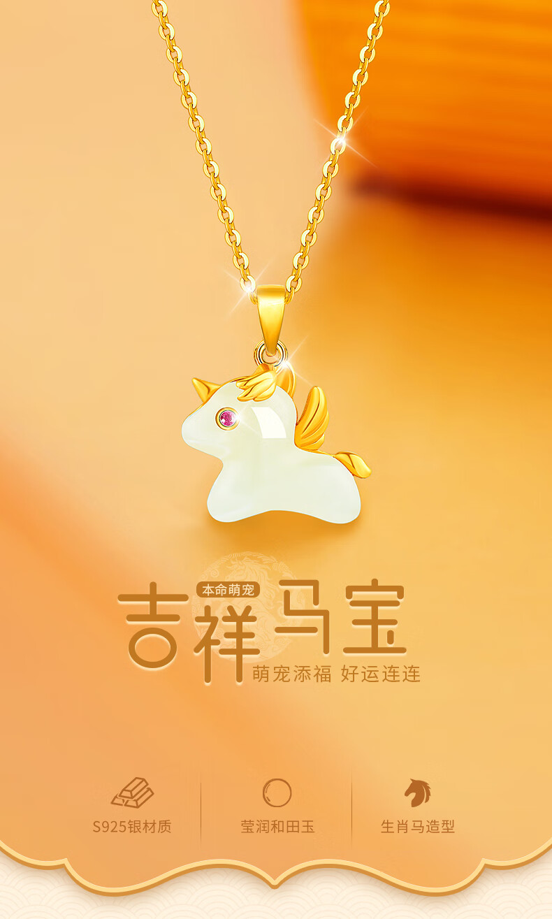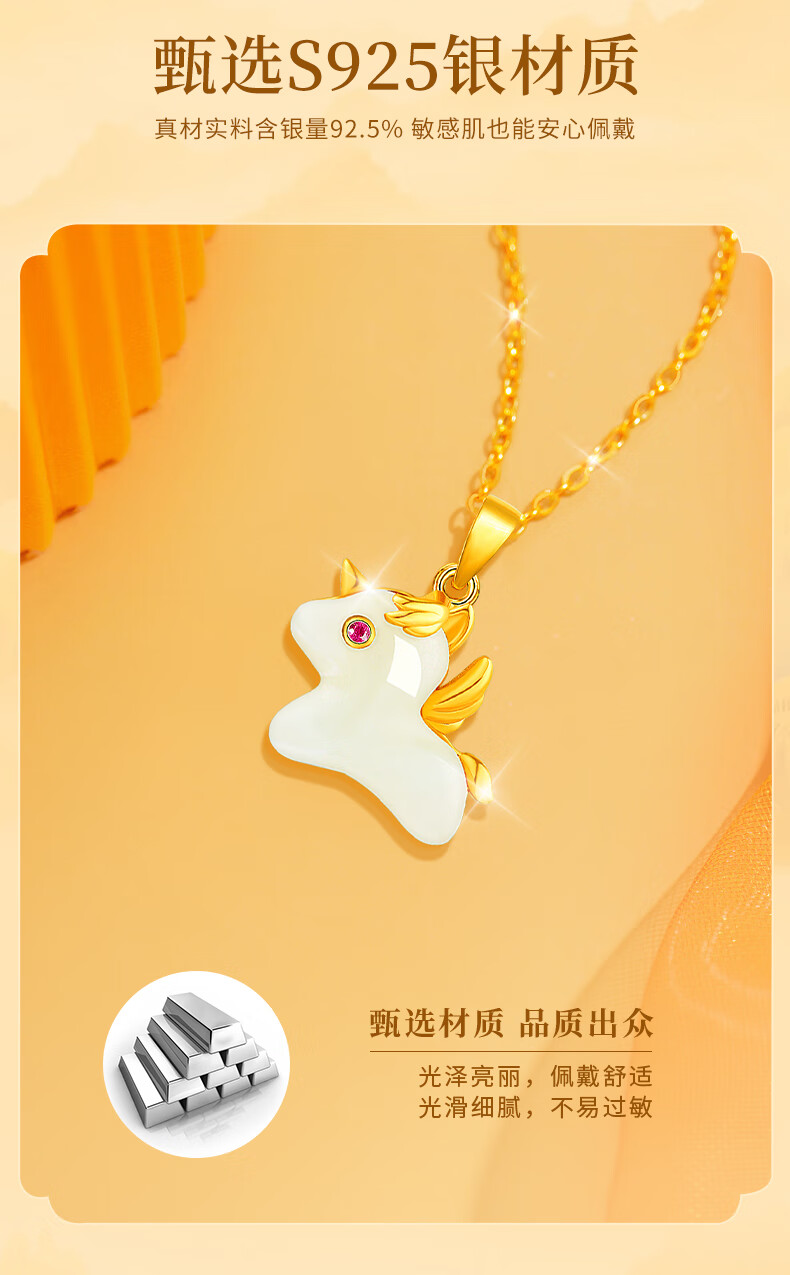 BOEAY Zodiac Hotan Jade Pendant Silver Necklace for Women 2025 New Light Luxury Niche Gift for Girlfriend 2026 Zodiac Year of the Horse Air Shipping Next Day Delivery/Love Gift Box Zodiac Sheep Hotan Jade Necklace