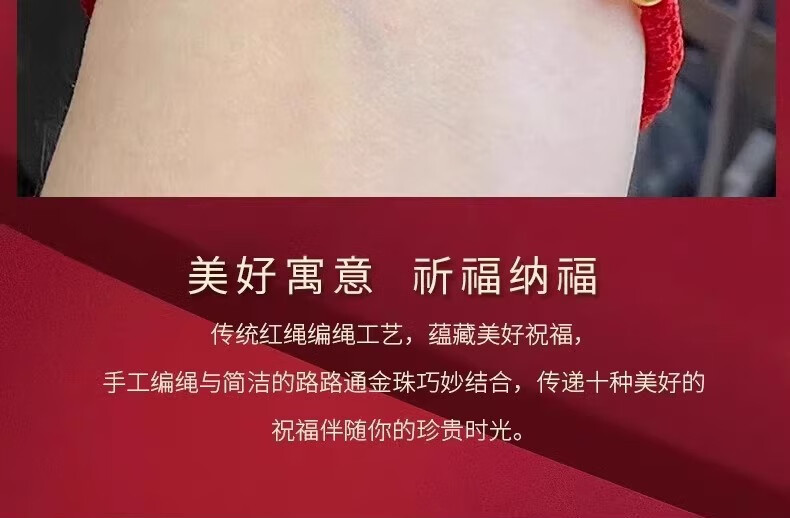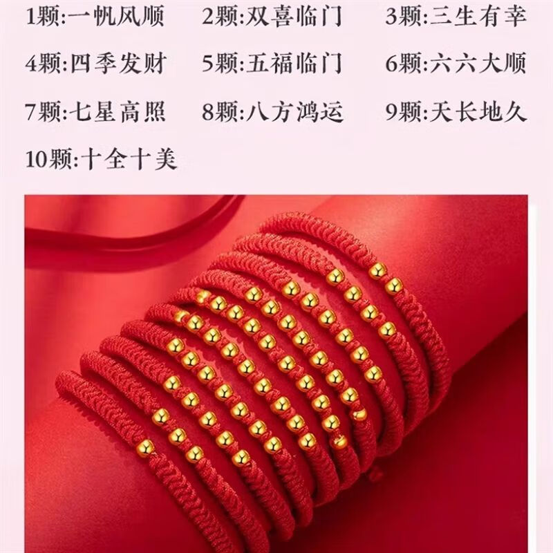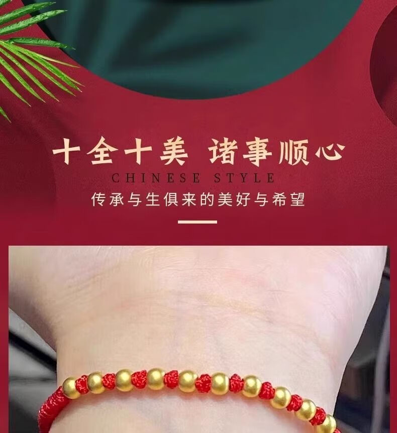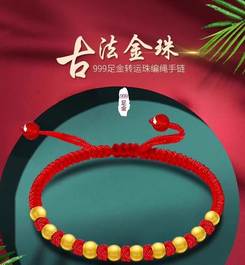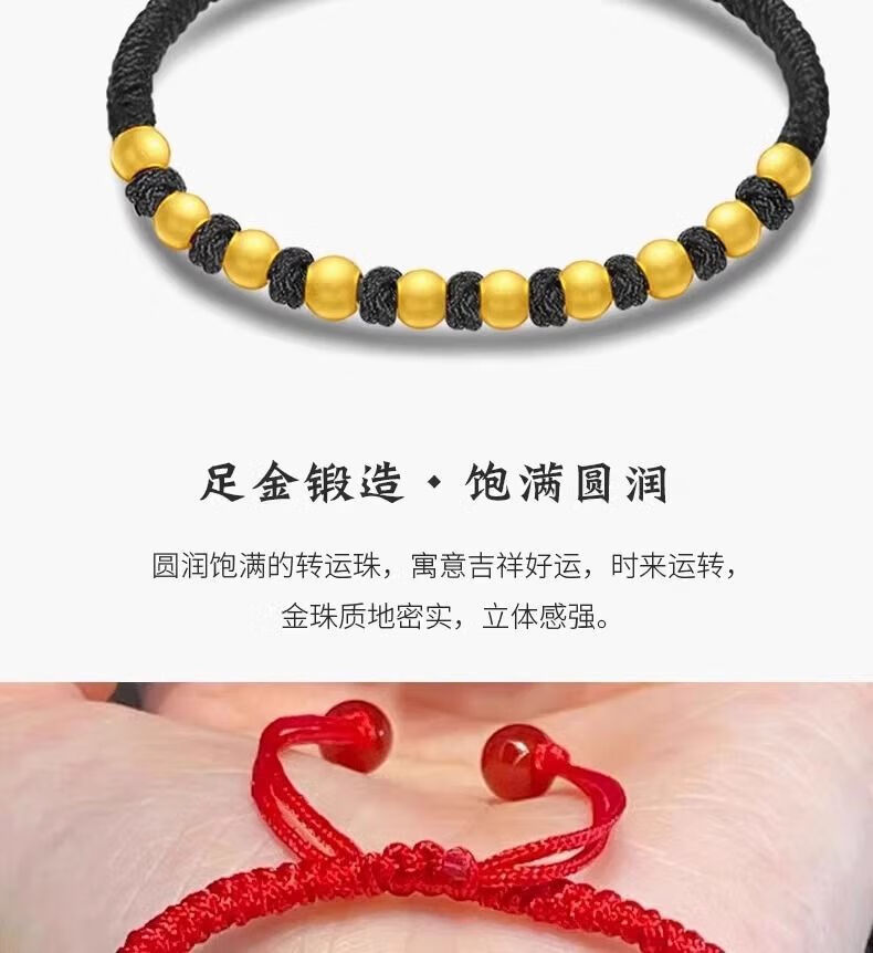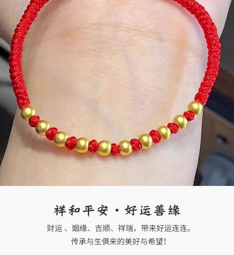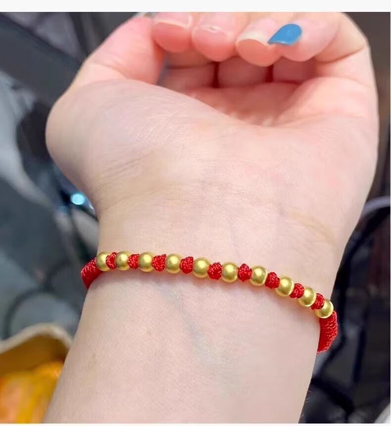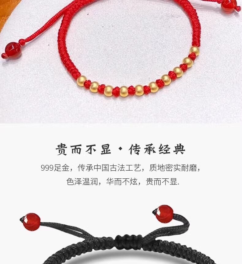BZK gold 9999 bracelet for women's birth year red rope braided pure gold beads pure gold transfer loose beads birthday gift perfect small gold beads - red bracelet 2.21g