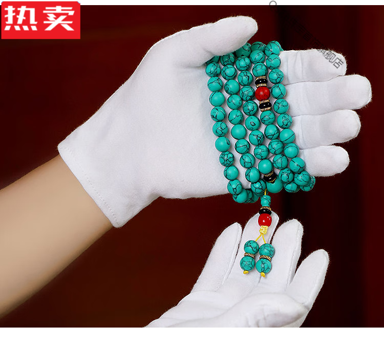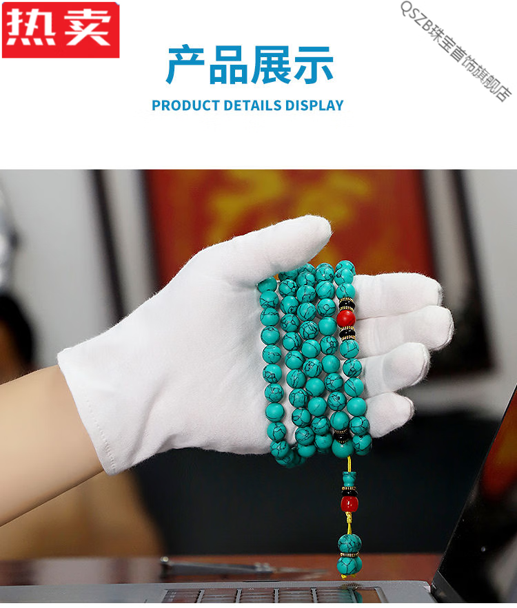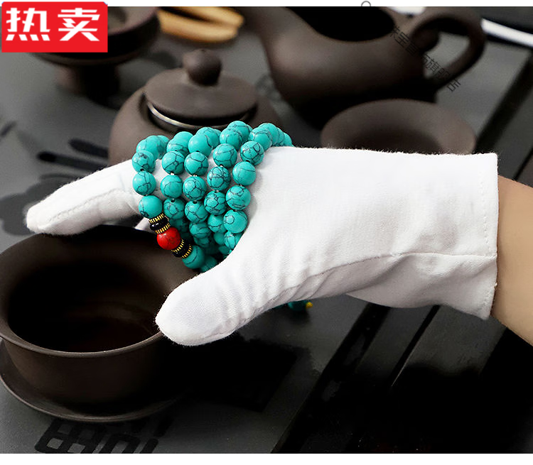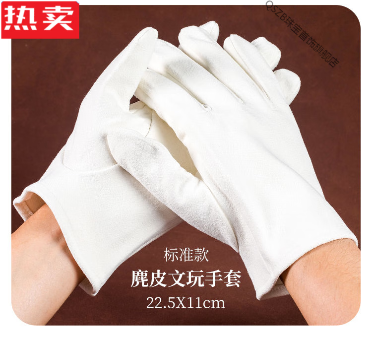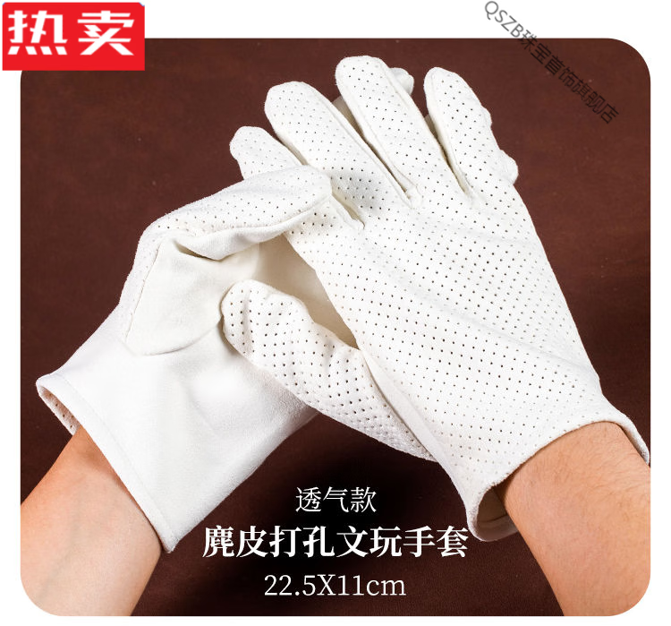 QSZB Hong Kong and Macao light luxury high-end quality plate turquoise special suede gloves cultural and polished patina genuine deerskin high-end high breathable style 1 pair of turquoise special suede gloves