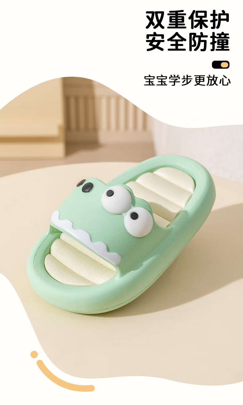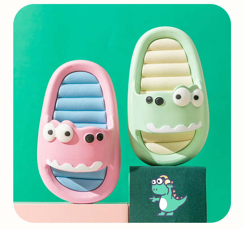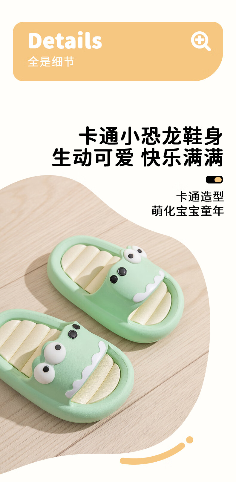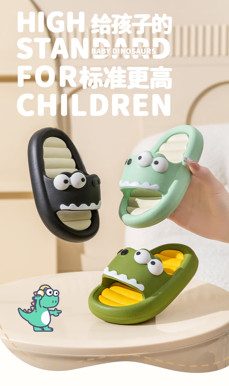 Dinosaur children's slippers for boys and older children 2025 new summer home household non-slip parent-child slippers for girls light green 18 cm inner length