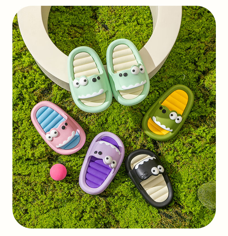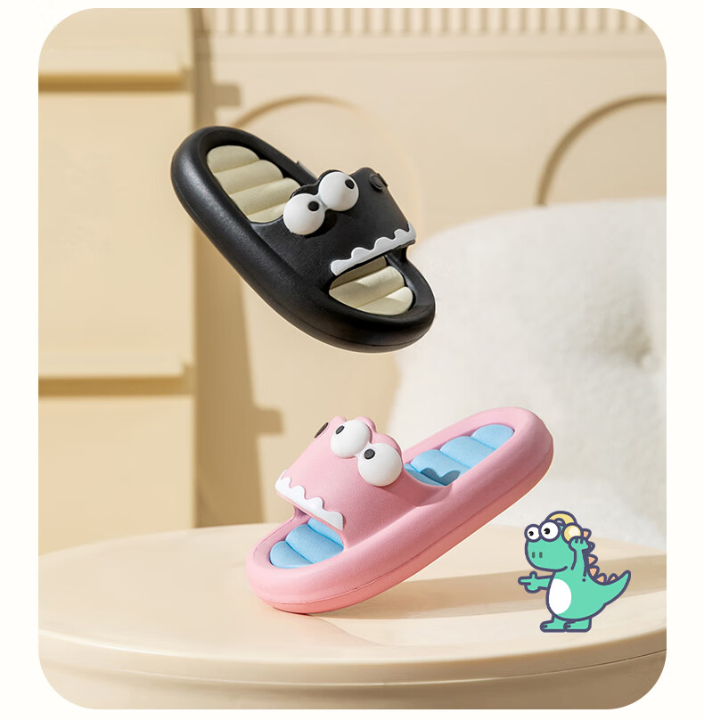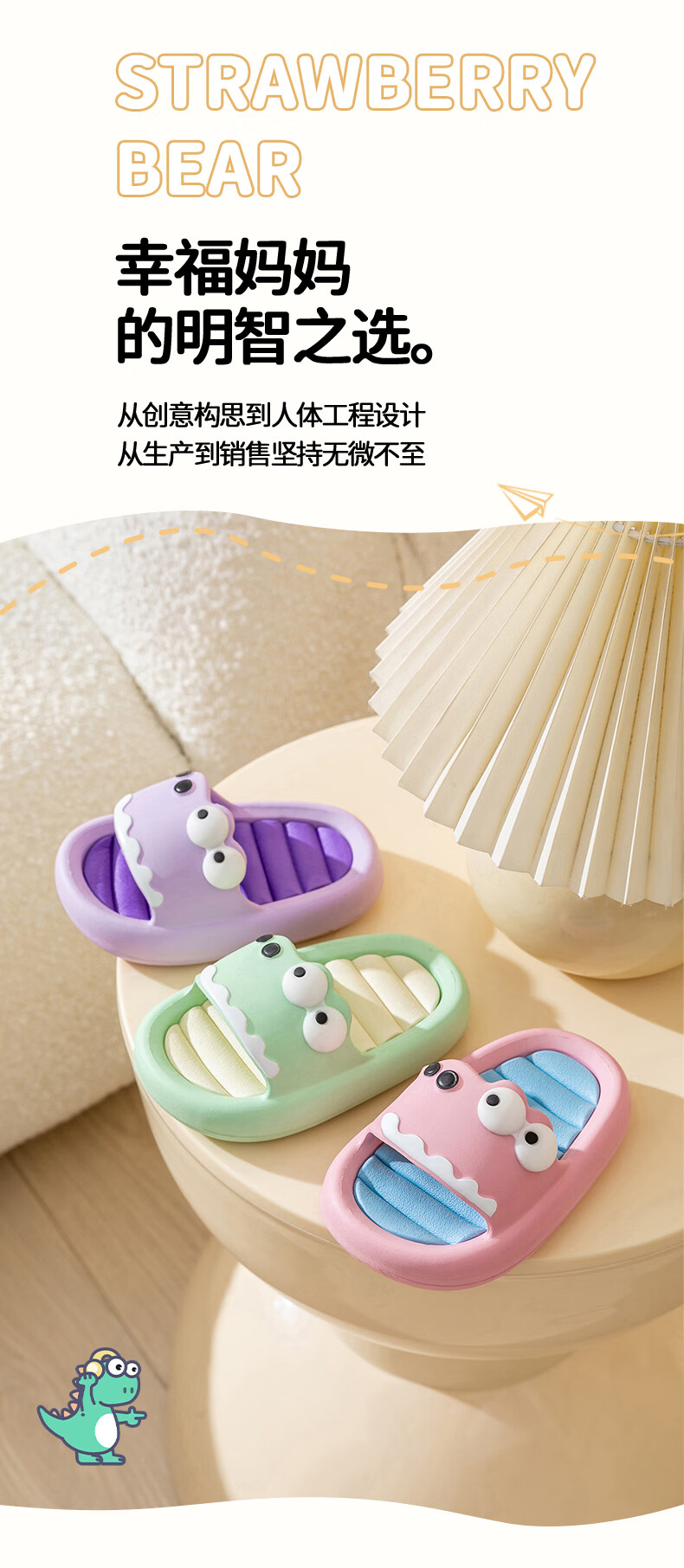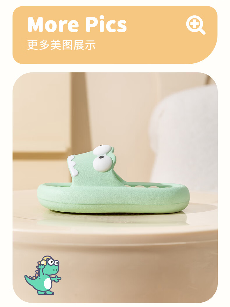 Dinosaur children's slippers for boys and older children 2025 new summer home household non-slip parent-child slippers for girls light green 18 cm inner length
