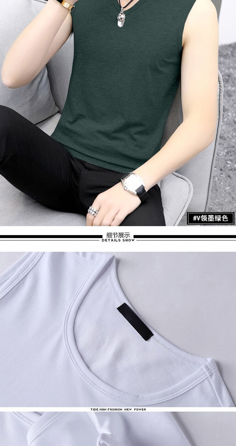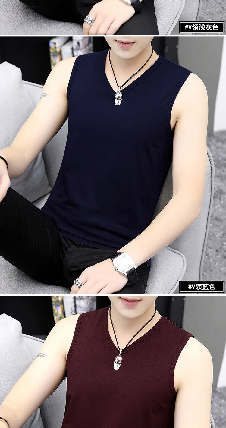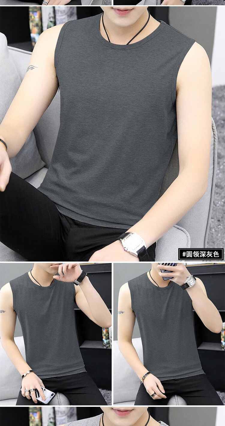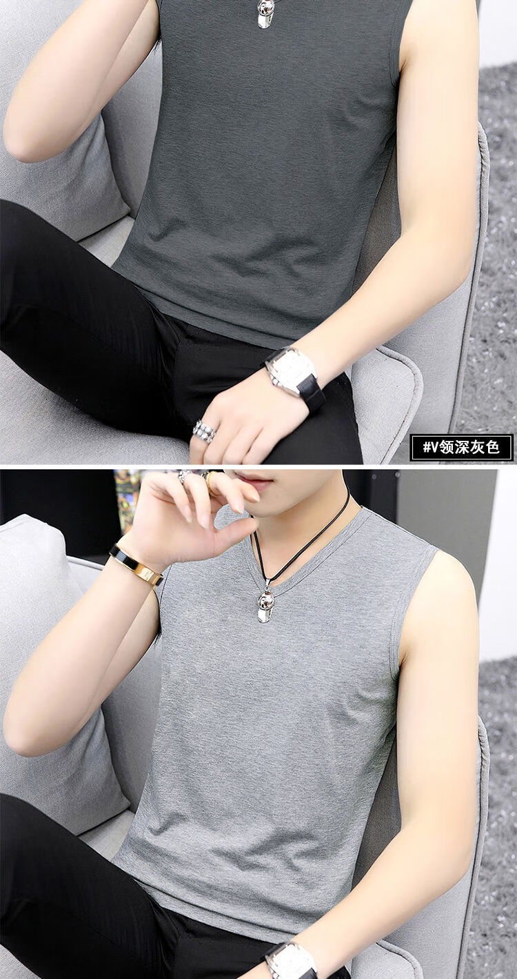 Men's round V-neck vest men's slim Korean style sleeveless vest casual sports breathable vest JS solid color sleeveless V-neck dark gray 3XL